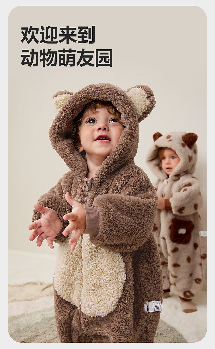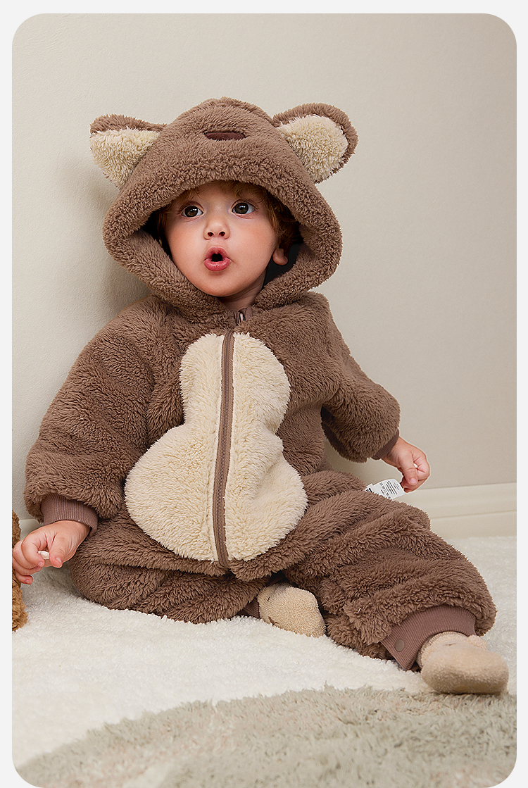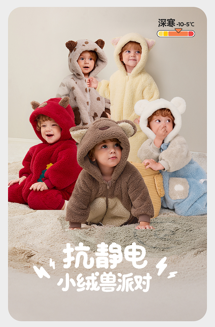【抗静电】迷你巴拉婴儿衣服宝宝保暖珊瑚绒萌趣造型连体衣爬服