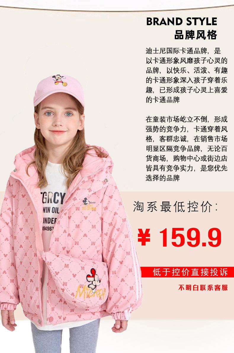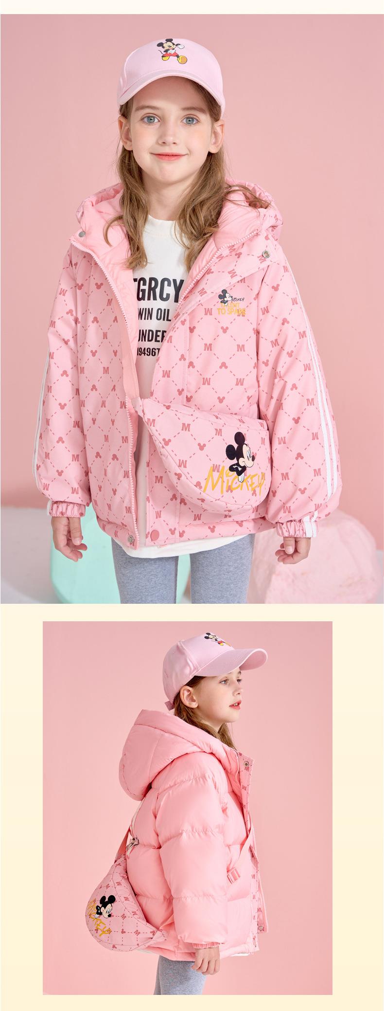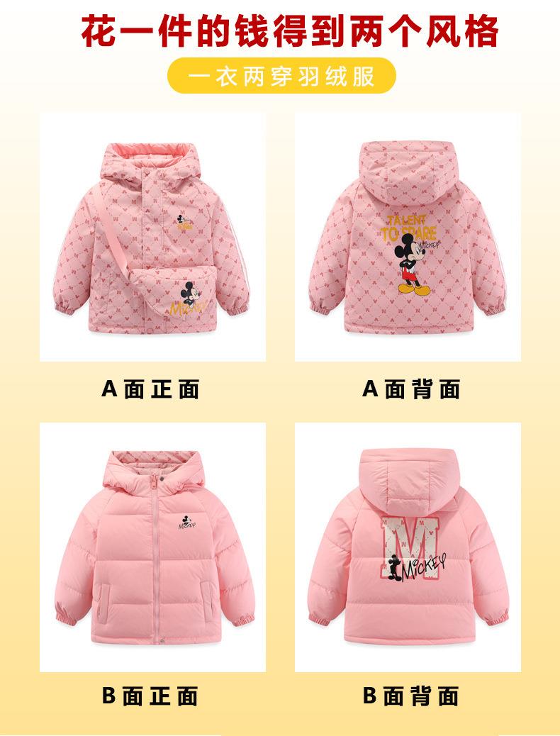 迪士尼儿童双面穿挎包羽绒服冬装2024新款儿童洋气保暖白鸭绒外套