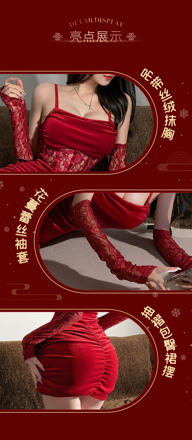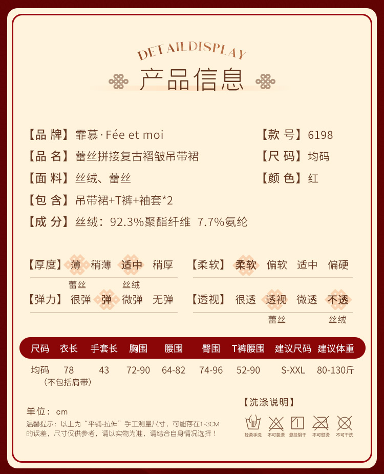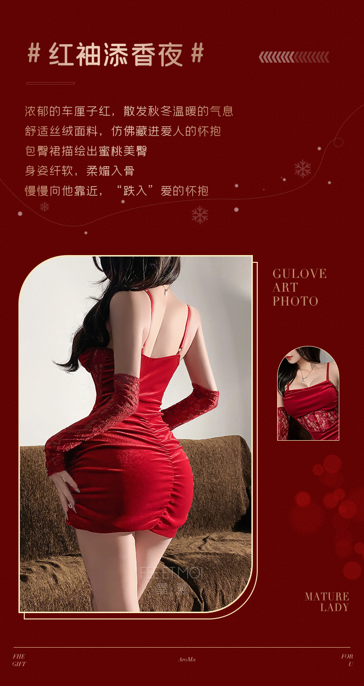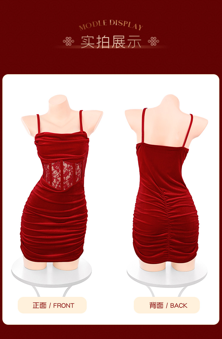 霏慕 蕾丝拼接复古褶皱吊带裙6198 情趣内衣女睡衣性感套装角色扮演制服诱惑短裙秘书服女仆战袍少妇