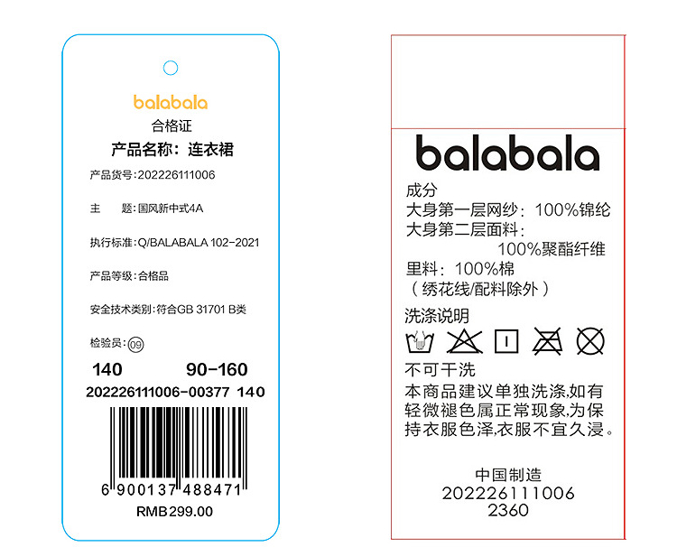 【商场同款】巴拉巴拉童装女童裙子儿童连衣裙2026新款夏国风刺绣