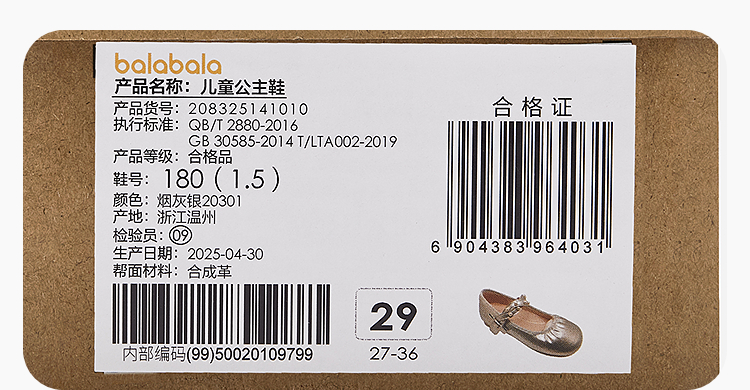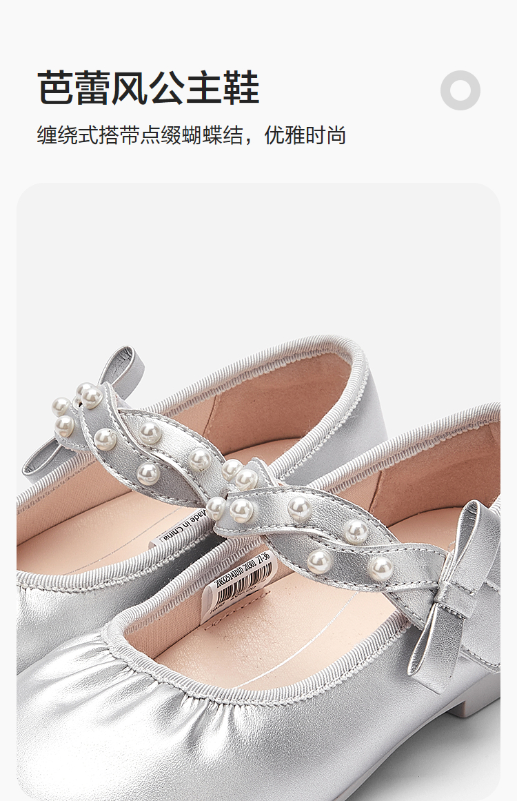 巴拉巴拉童鞋女童公主鞋2025新款春秋软底表演鞋芭蕾风鞋子蝴蝶结