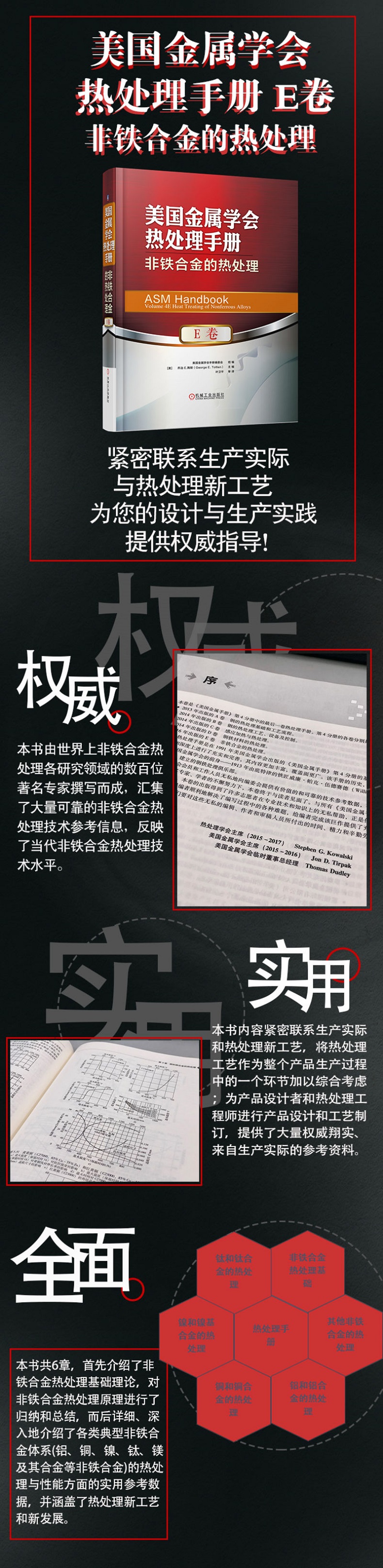 本书主要介绍了钢的热处理基础知识和工艺流程,详细讲解了钢的热处理原理和淬火、渗碳、渗氮等热处理工艺。本书将热处理工艺作为整个产品生产过程中的一个环节加以综合考虑,为产品设计者和热处理工程师进行产品设计和工艺制订,提供了大量实用翔实的参考资料。本书由世界上钢铁材料热处理各研究领域的专家撰写而成,反映了当代热处理工艺的技术水平,具有先进性、全面性和实用性。 |