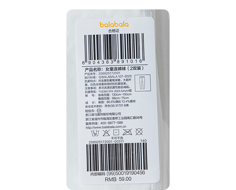 【商场同款】巴拉巴拉儿童连裤袜秋季款女童打底舞蹈袜抗菌两条装