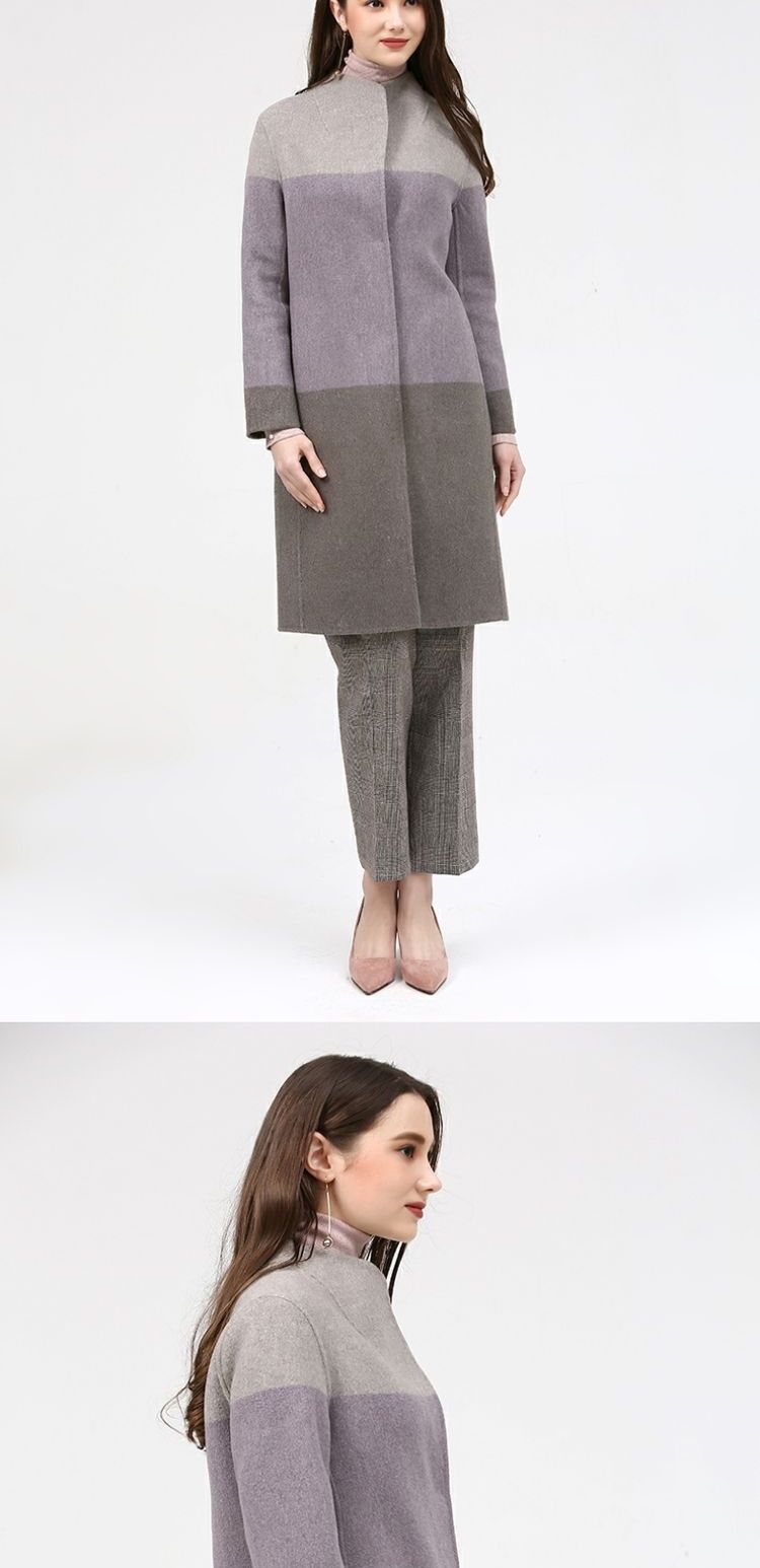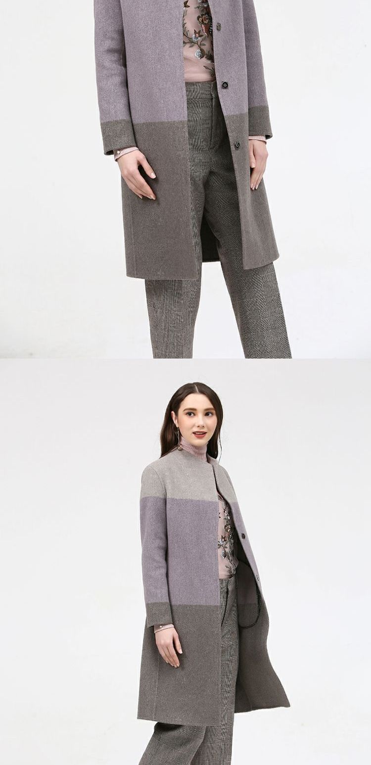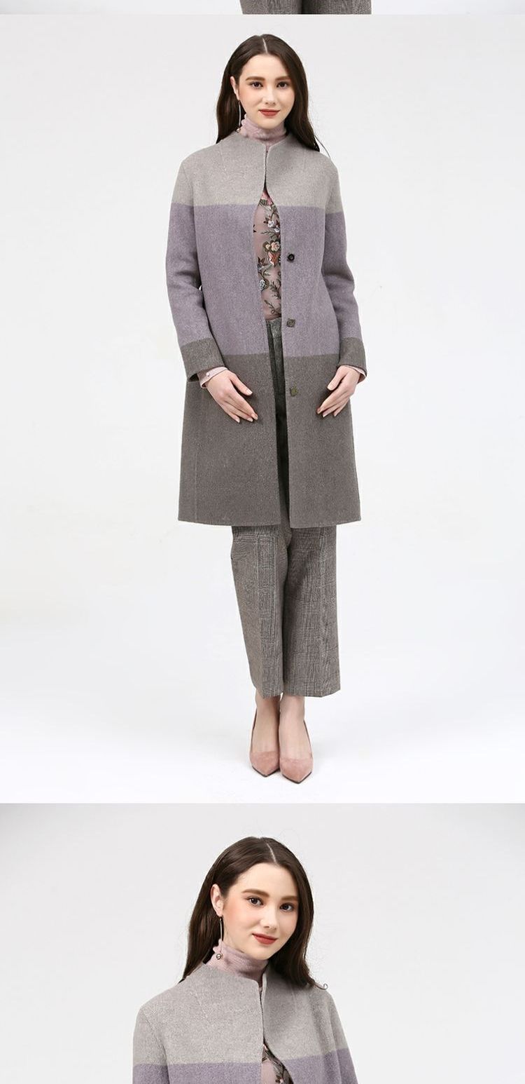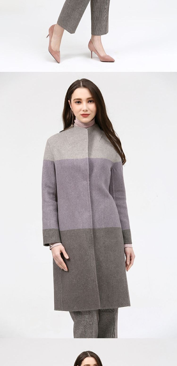 佐尔美冬季新品女士中长款拼色羊毛双面呢外套E74SM27