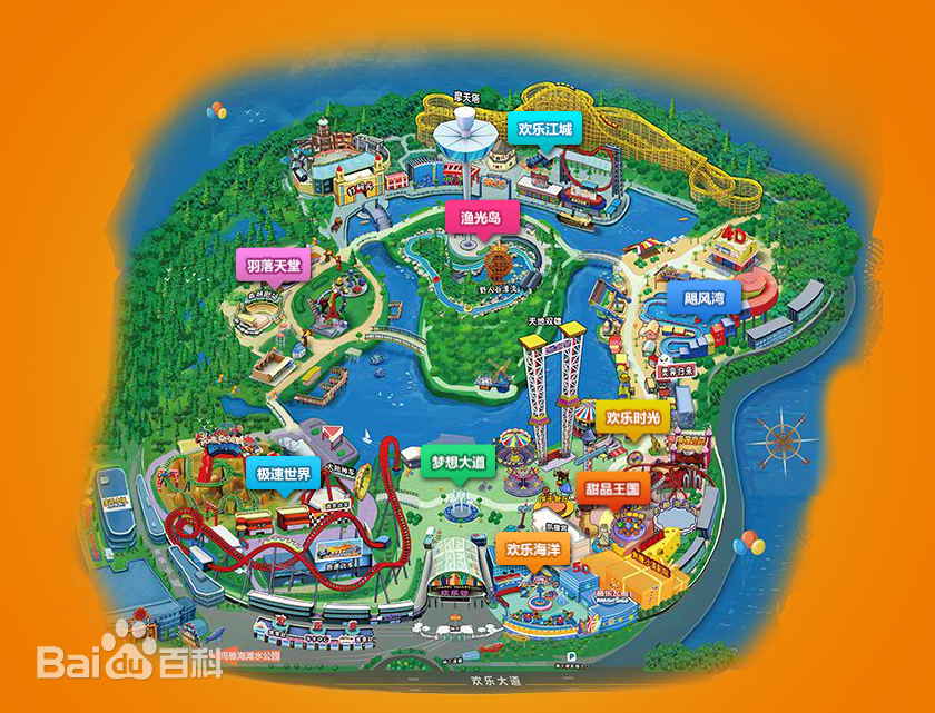 武汉欢乐谷占地约35万平方米,设置了100多项娱乐体验项目,包括30多项游乐体验设备、40多处生态人文景观、10多台文化演艺精品和20多项主题娱乐游戏。