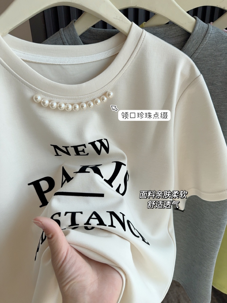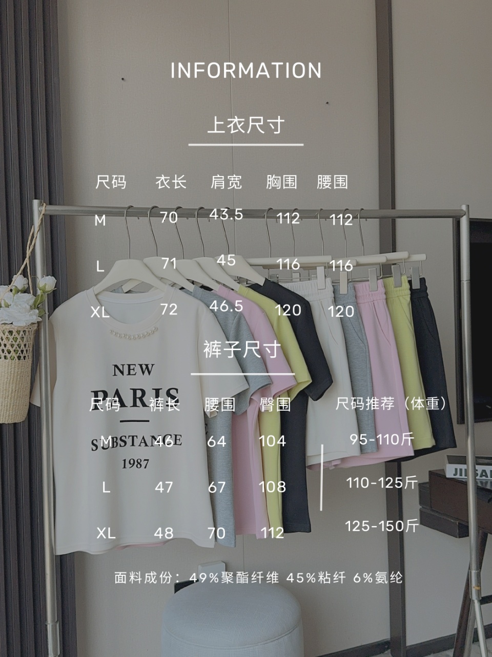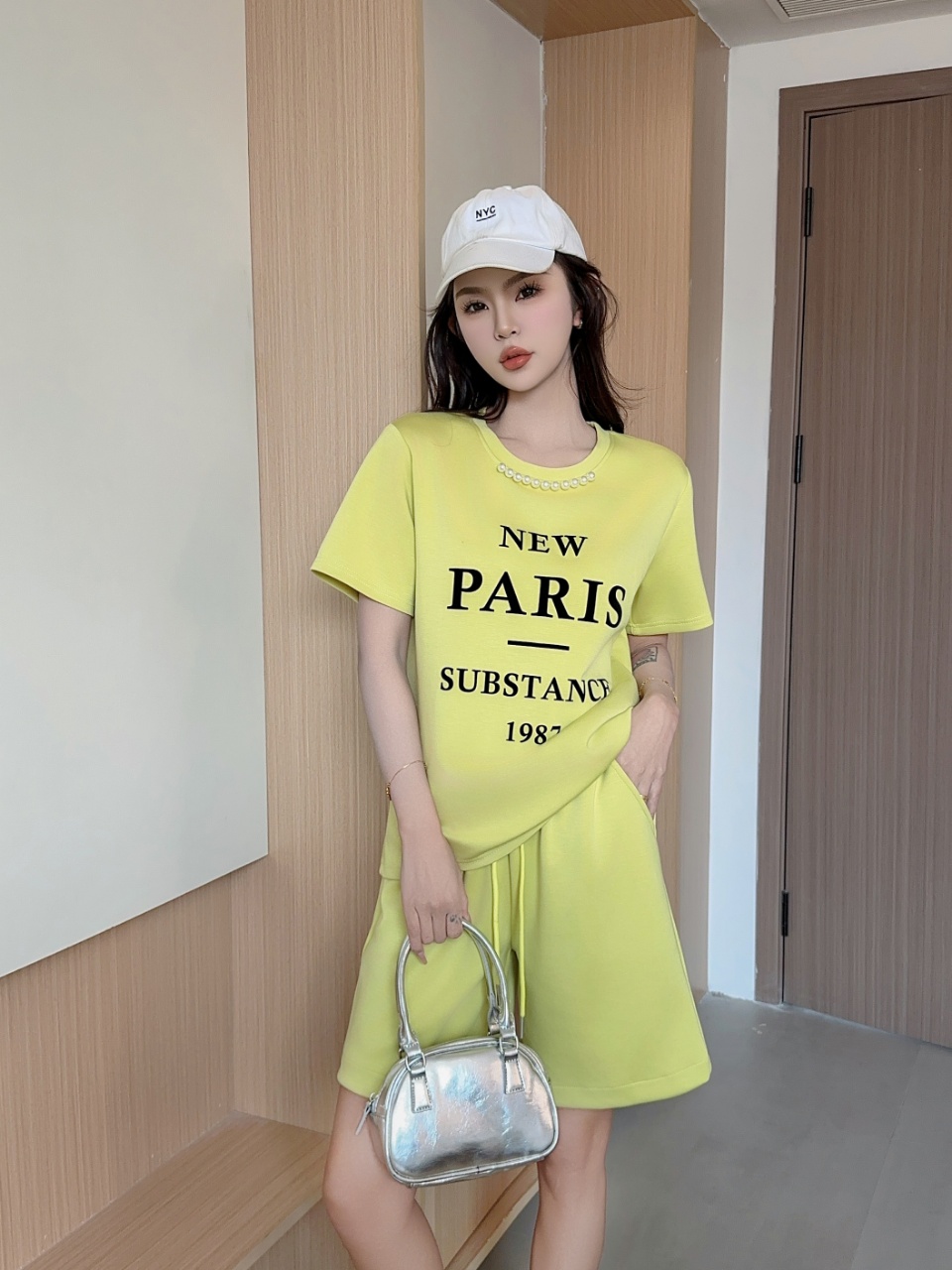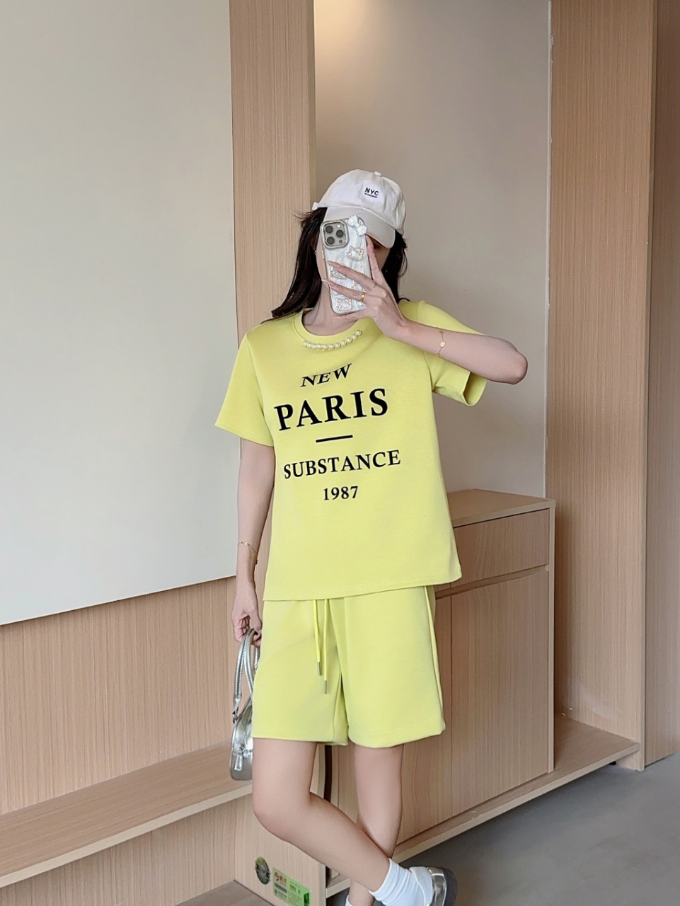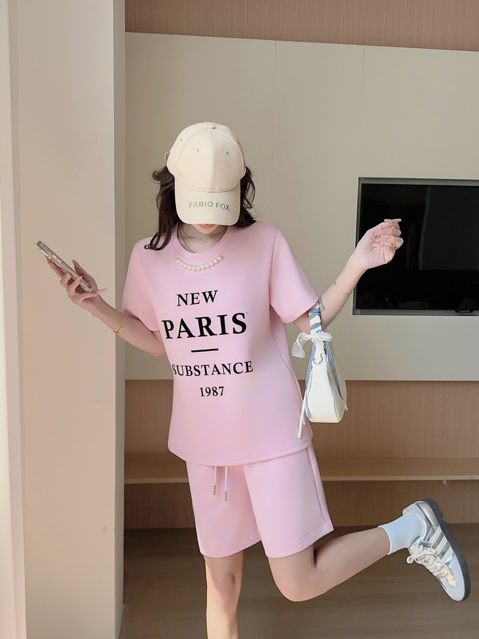【YW】无忧购“清仓大促”美式复古字母印花钉珠圆领短袖T+休闲短裤套装X2560(截单后3-5天发货)