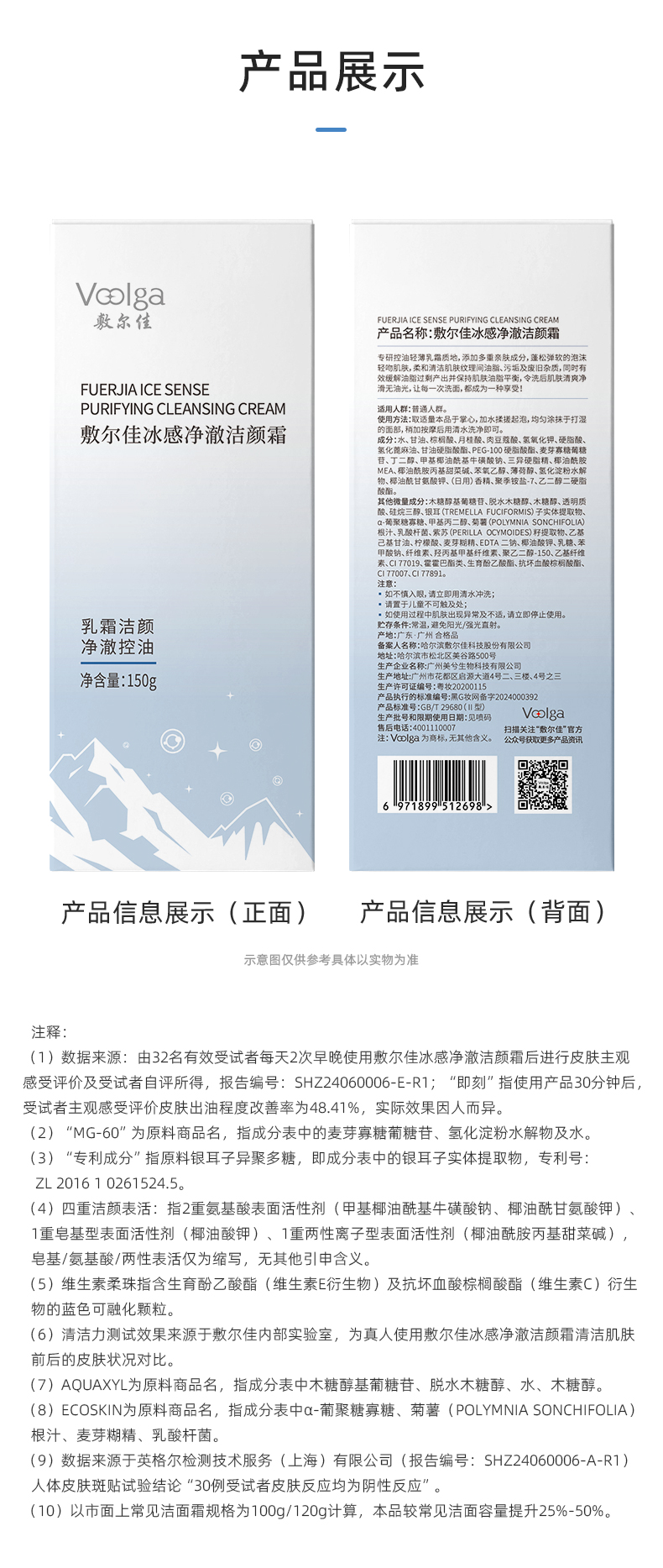 敷尔佳冰感净澈洁颜霜 30g/150g支