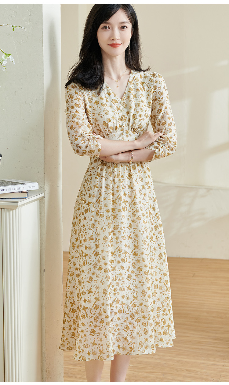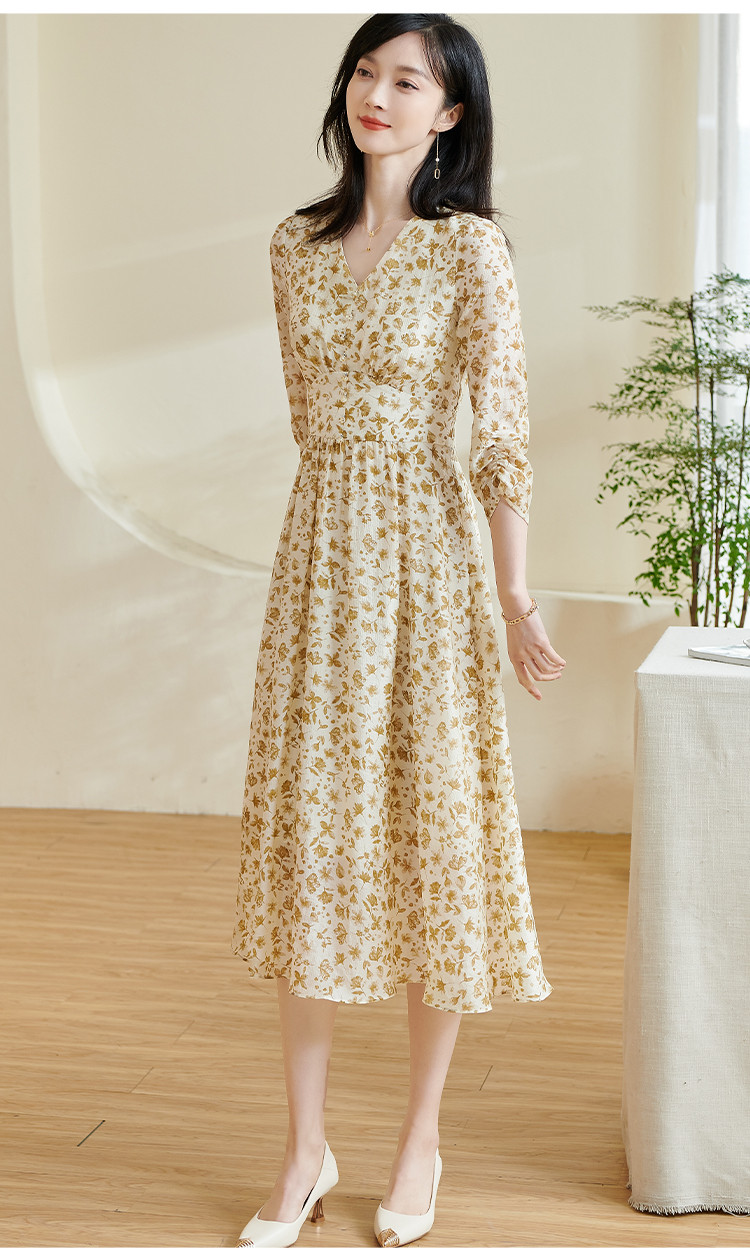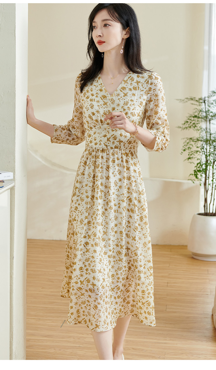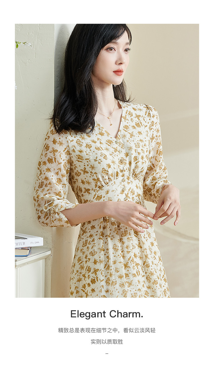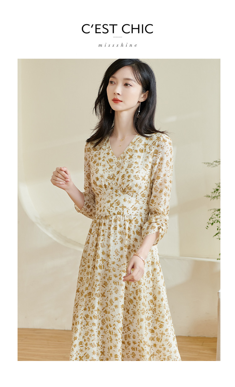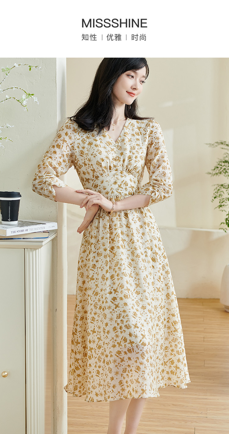剩S/M/XL/XXL 米思阳2026春季新款法式温柔风碎花连衣裙收腰重磅天丝裙子女0438