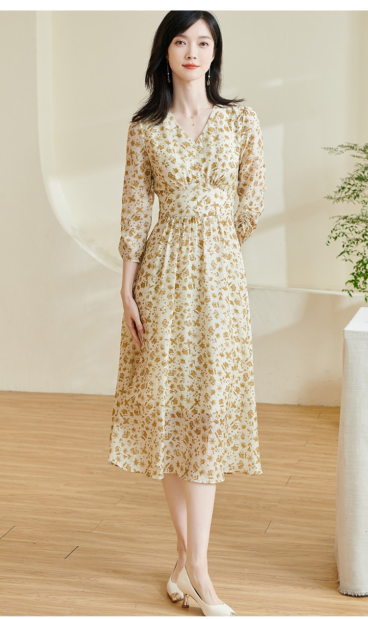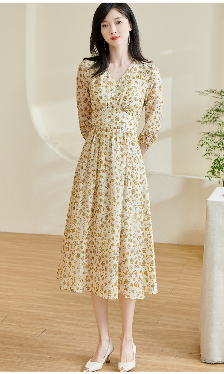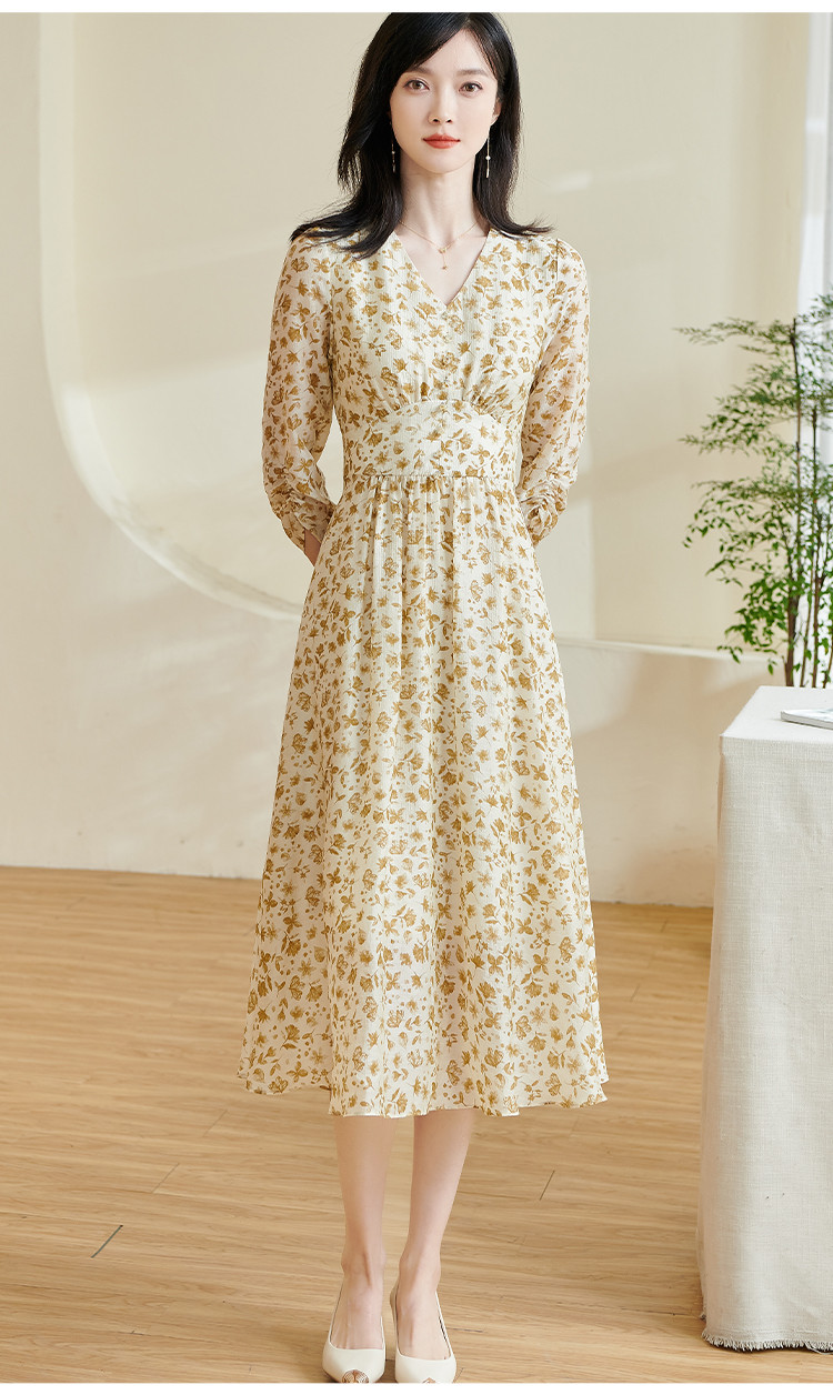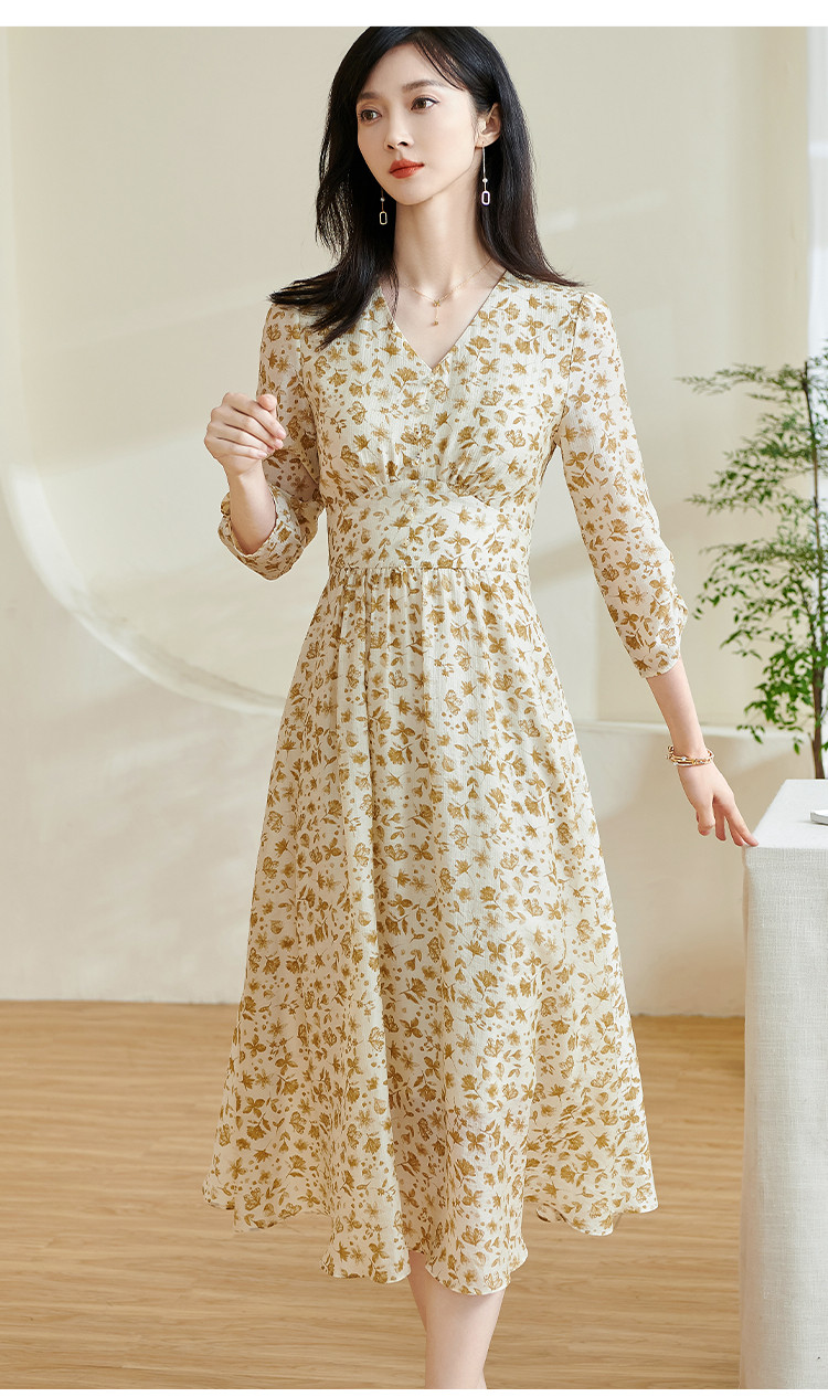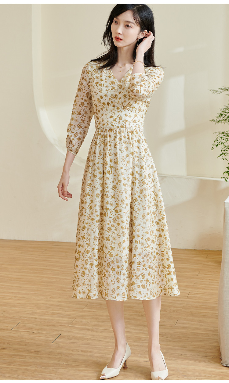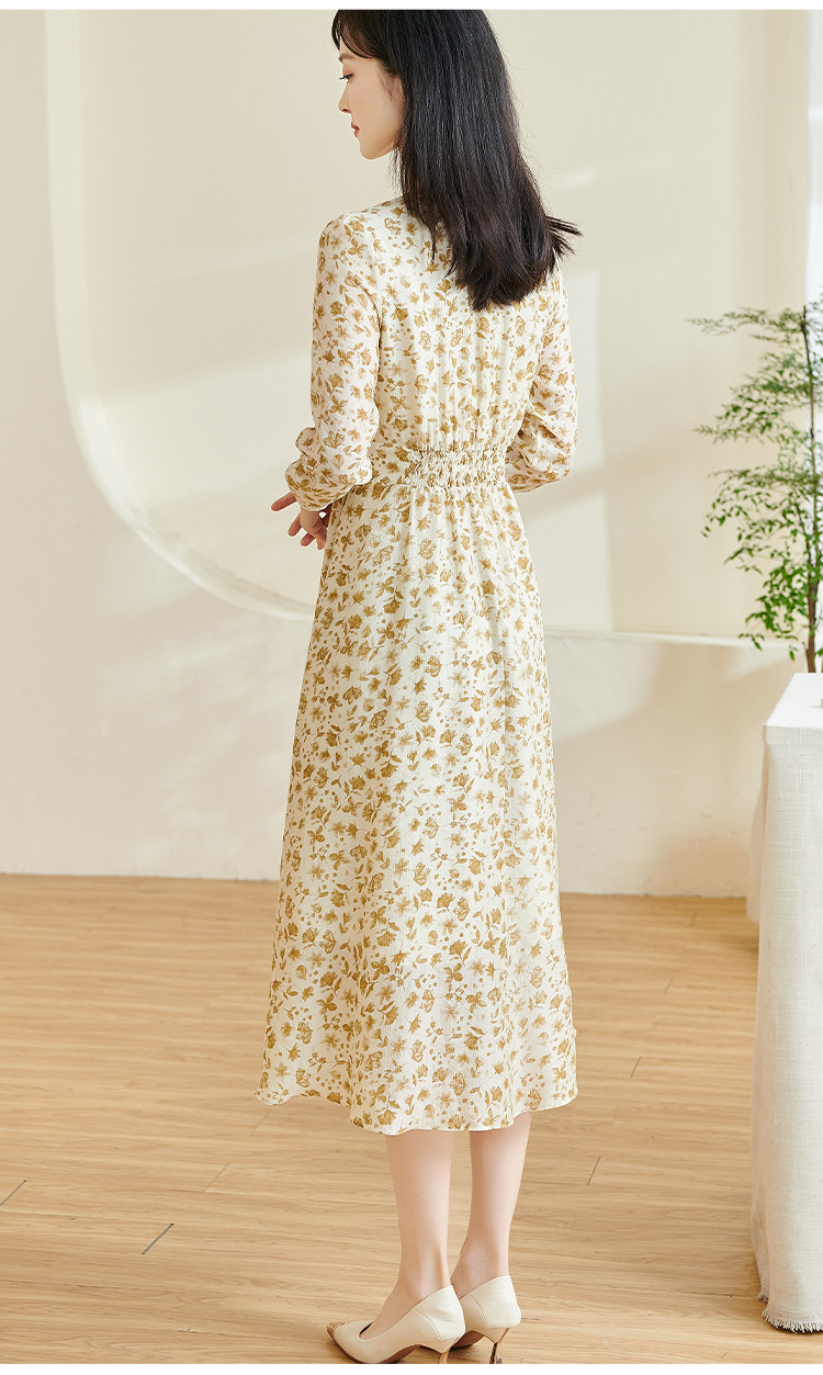 剩S/M/XL/XXL 米思阳2026春季新款法式温柔风碎花连衣裙收腰重磅天丝裙子女0438