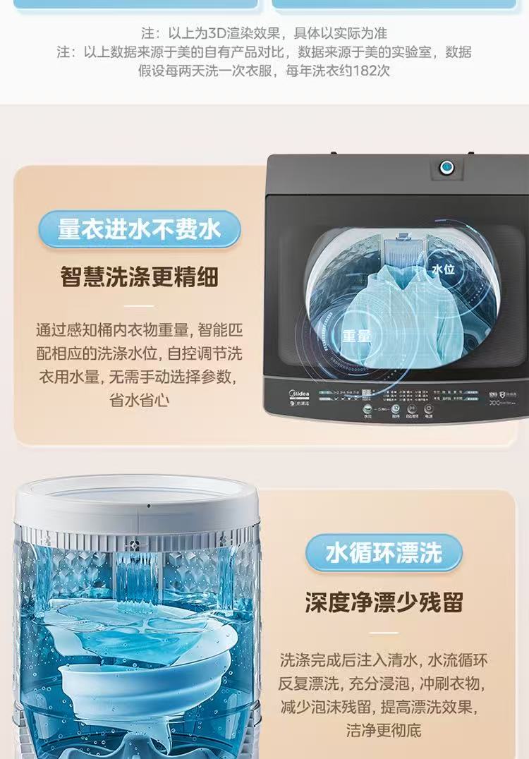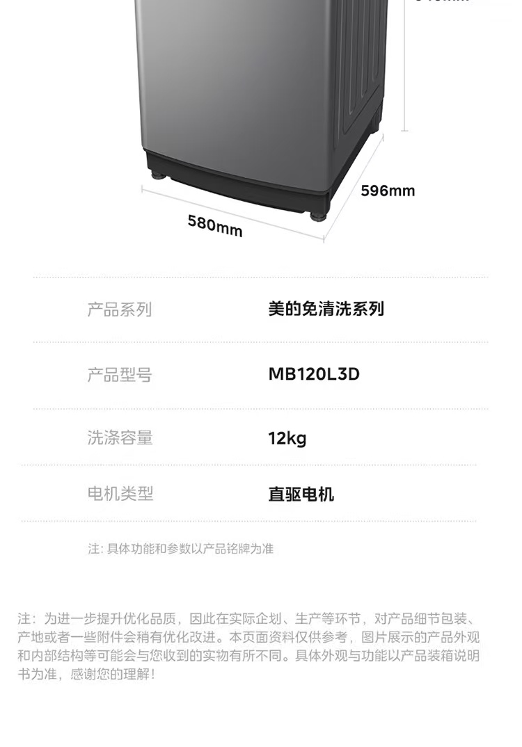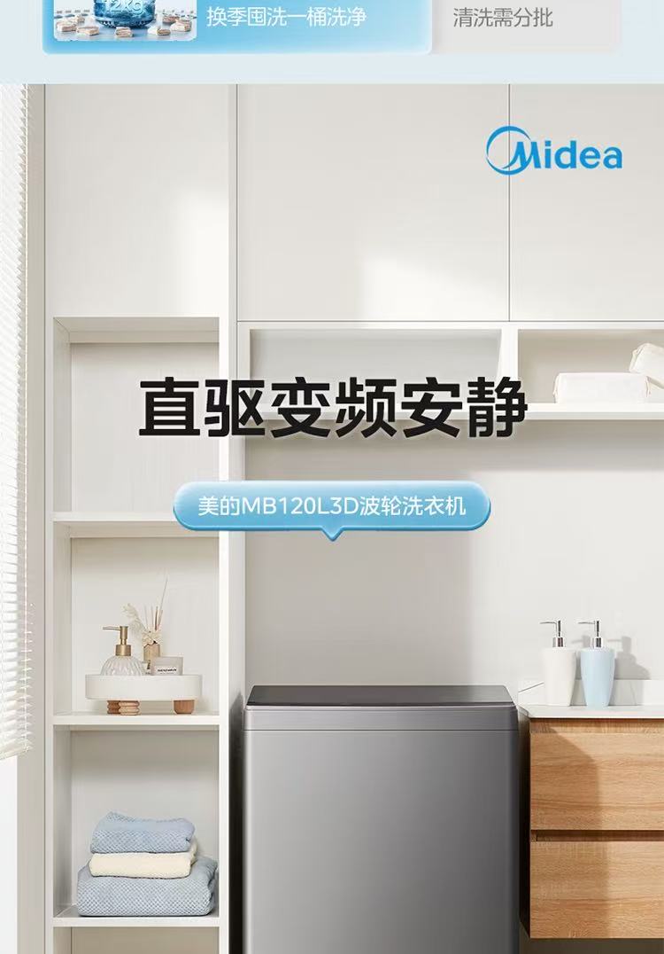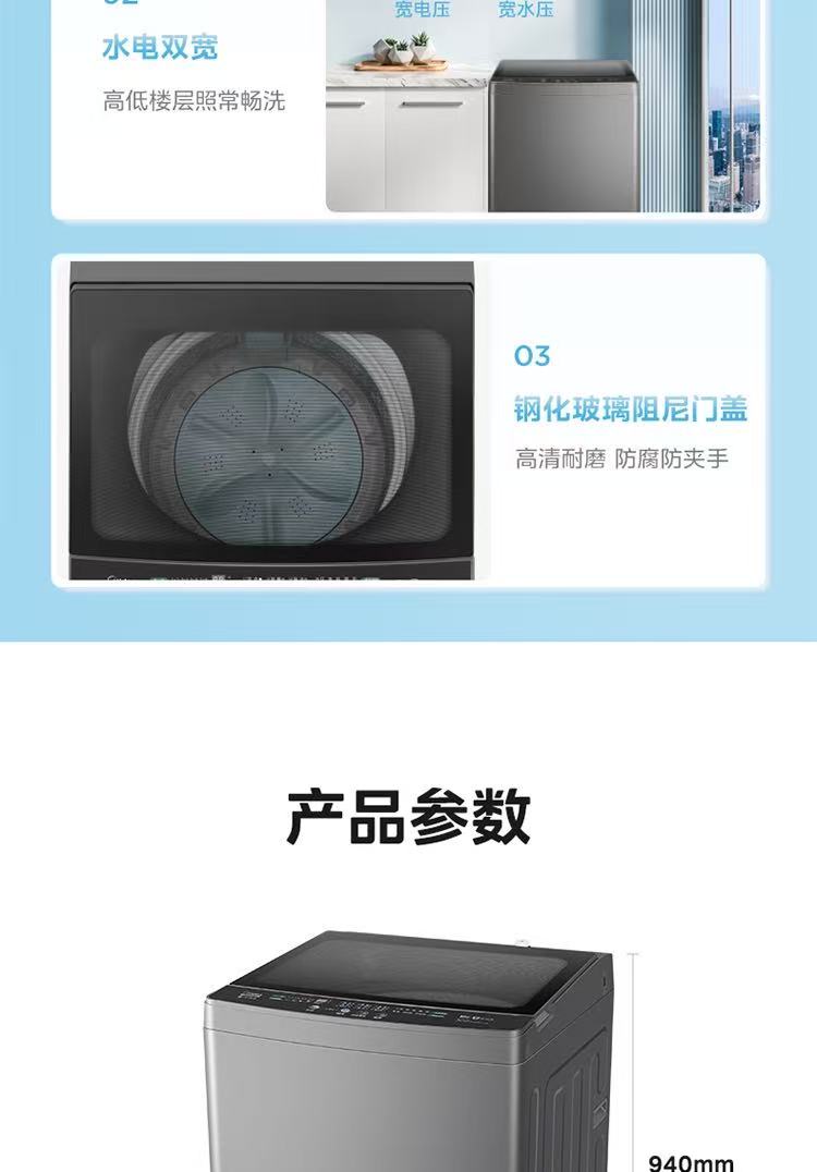 MB120L3D 美的波轮全自动洗衣机 玄武灰 门盖高光黑,白玻,普通银丝印 钢化玻璃 波轮式 220V,1Ph 50Hz
