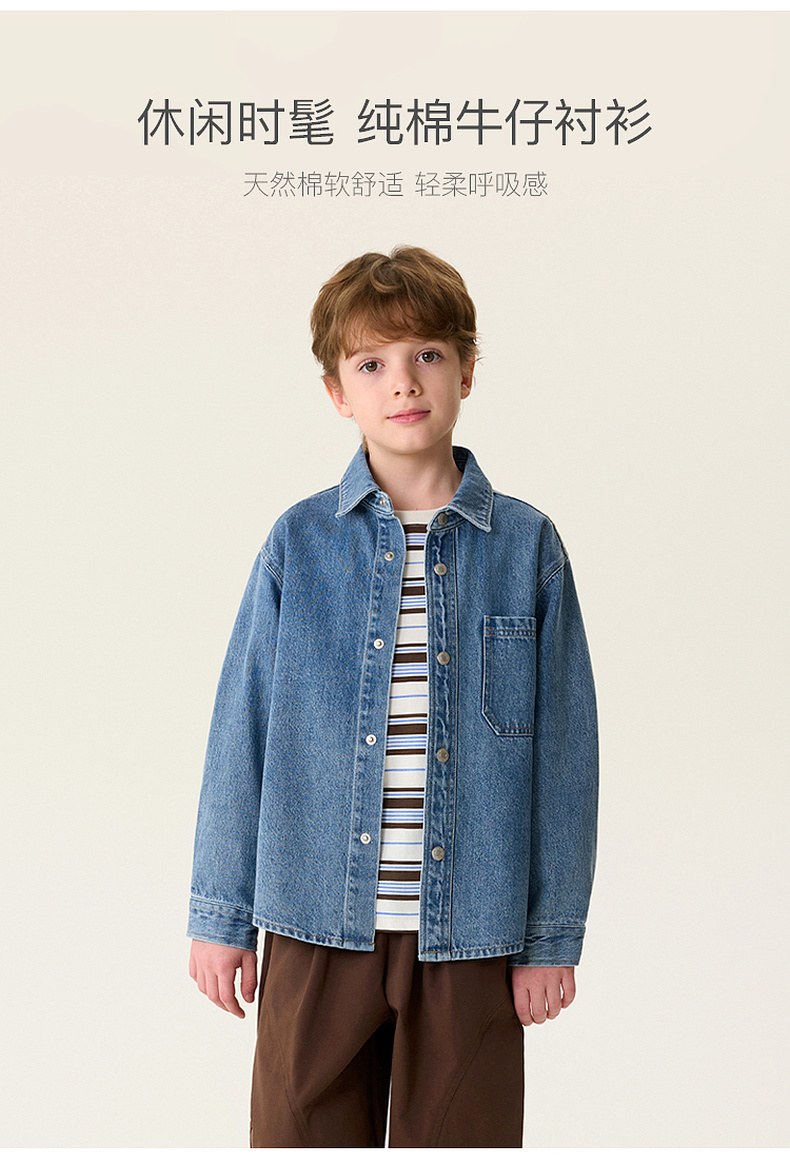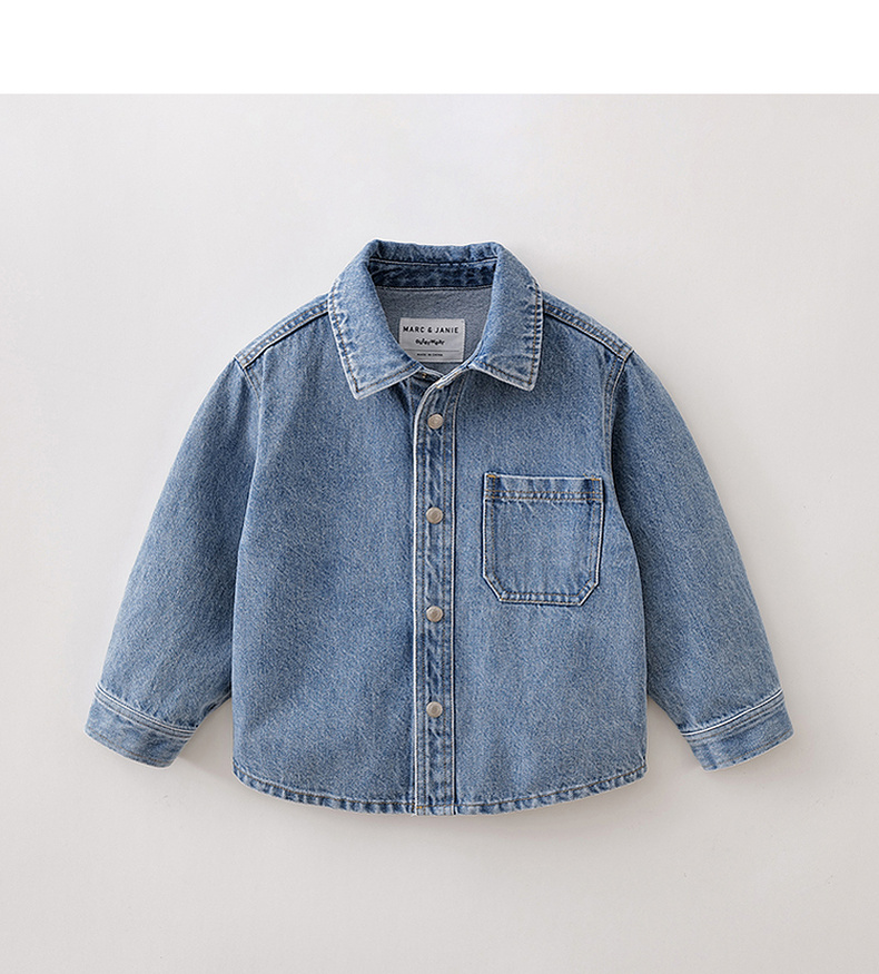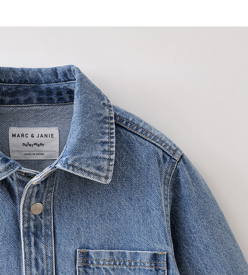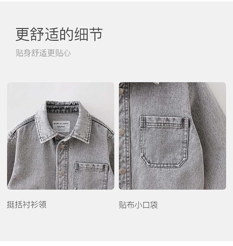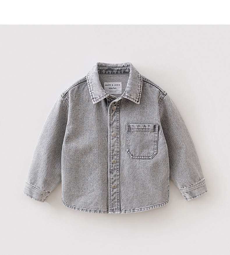 马克珍妮休闲时髦男童纯棉牛仔衬衫外套2026年春装新款560072