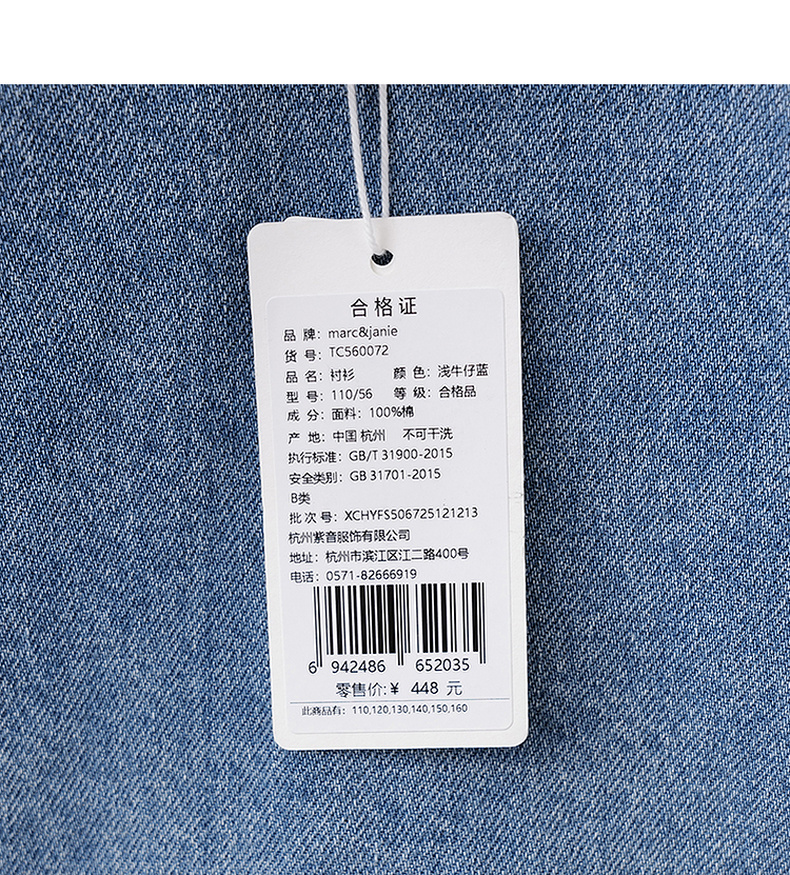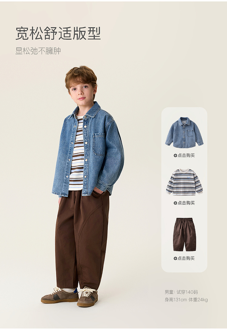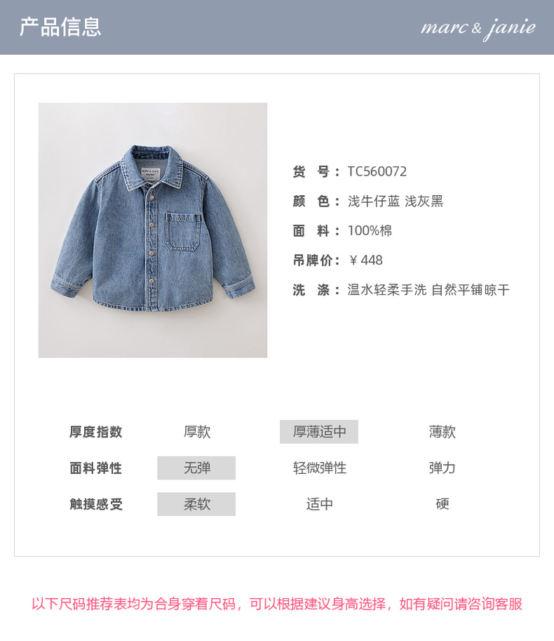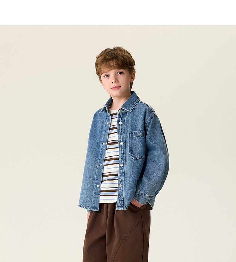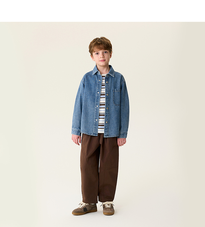 马克珍妮休闲时髦男童纯棉牛仔衬衫外套2026年春装新款560072