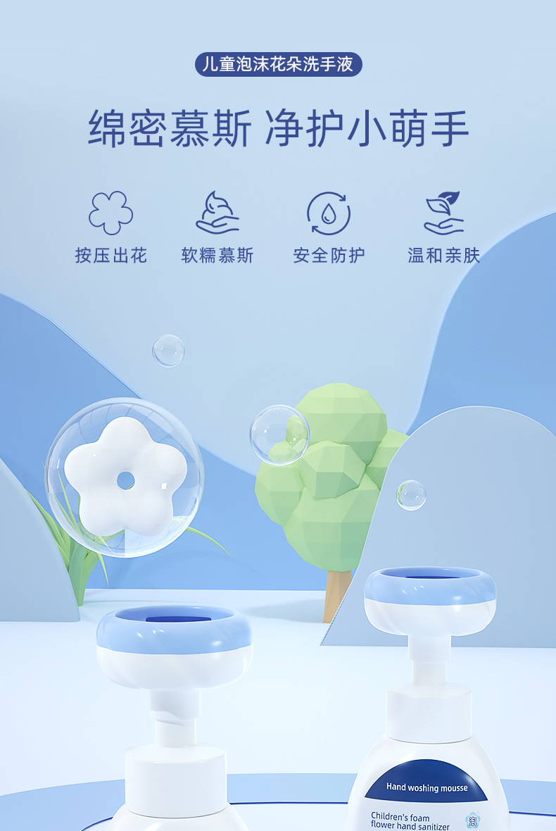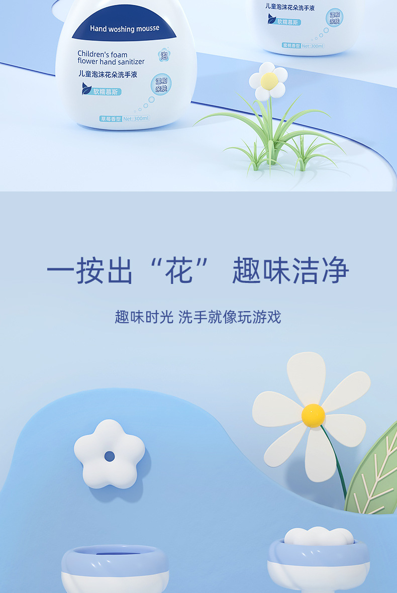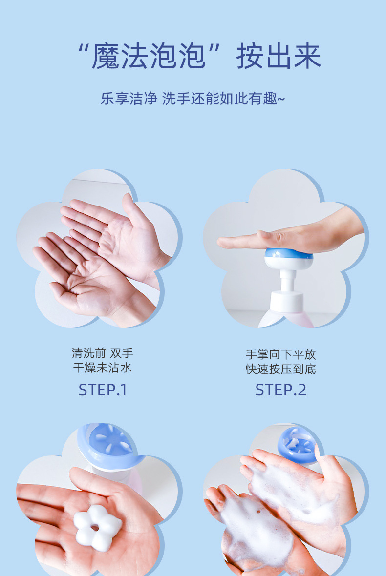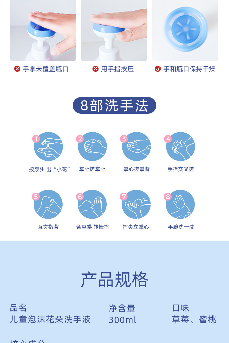 【29.9元到手4瓶儿童洗手液】儿童洗手液泡沫花朵按压瓶 小花家用宝宝 专用草莓味慕斯泡泡