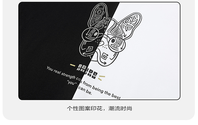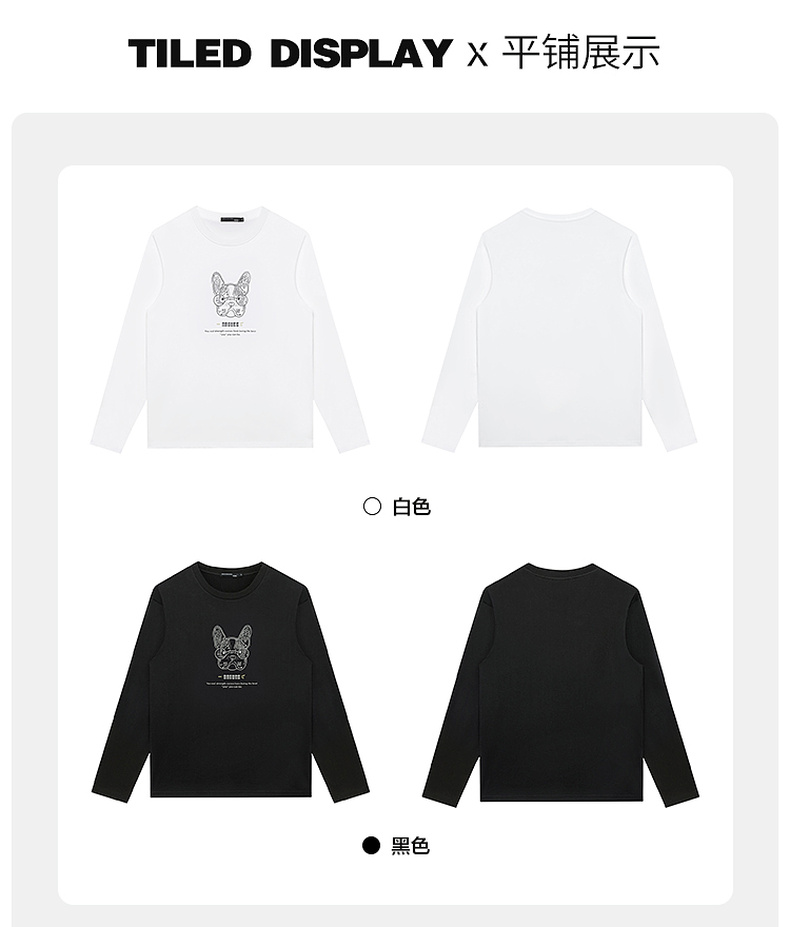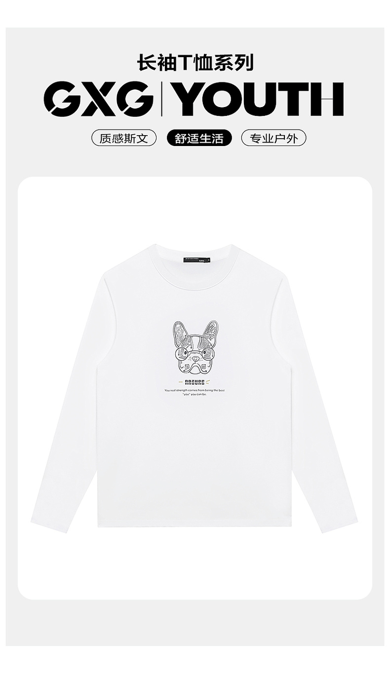 GXG男装【花纹小狗】春季时尚动物印花男士圆领百搭长袖纯棉t恤K&C