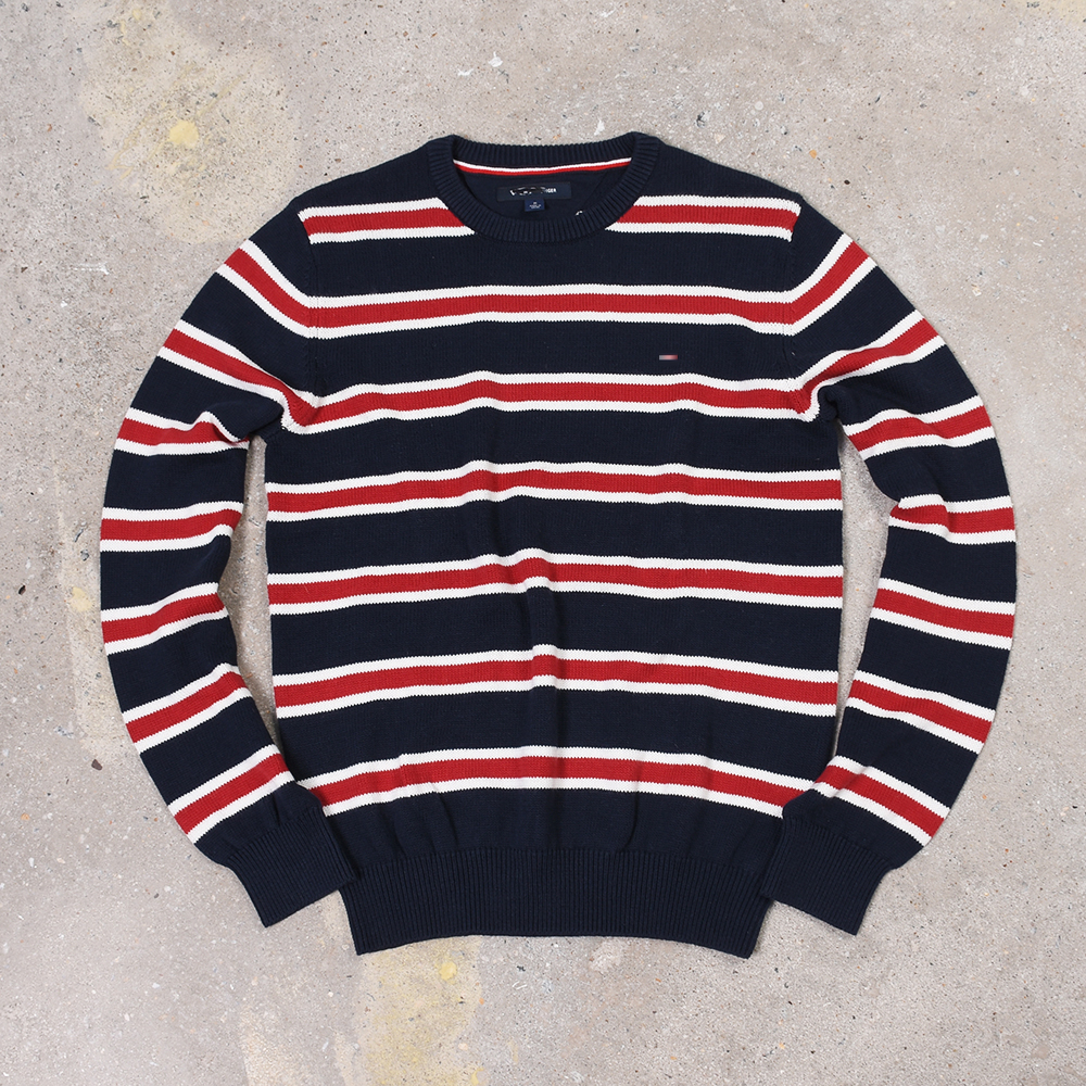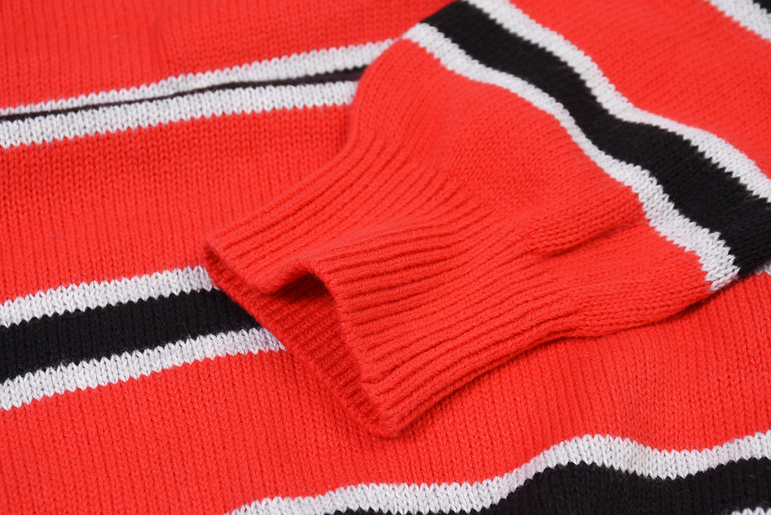 薄款 条纹拼色纯棉 胸前刺绣 圆领毛衣/针织衫 多色 T-1089