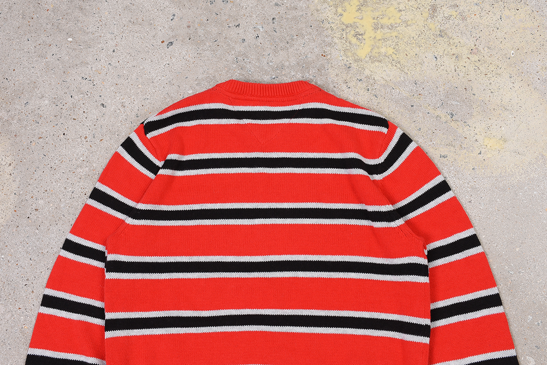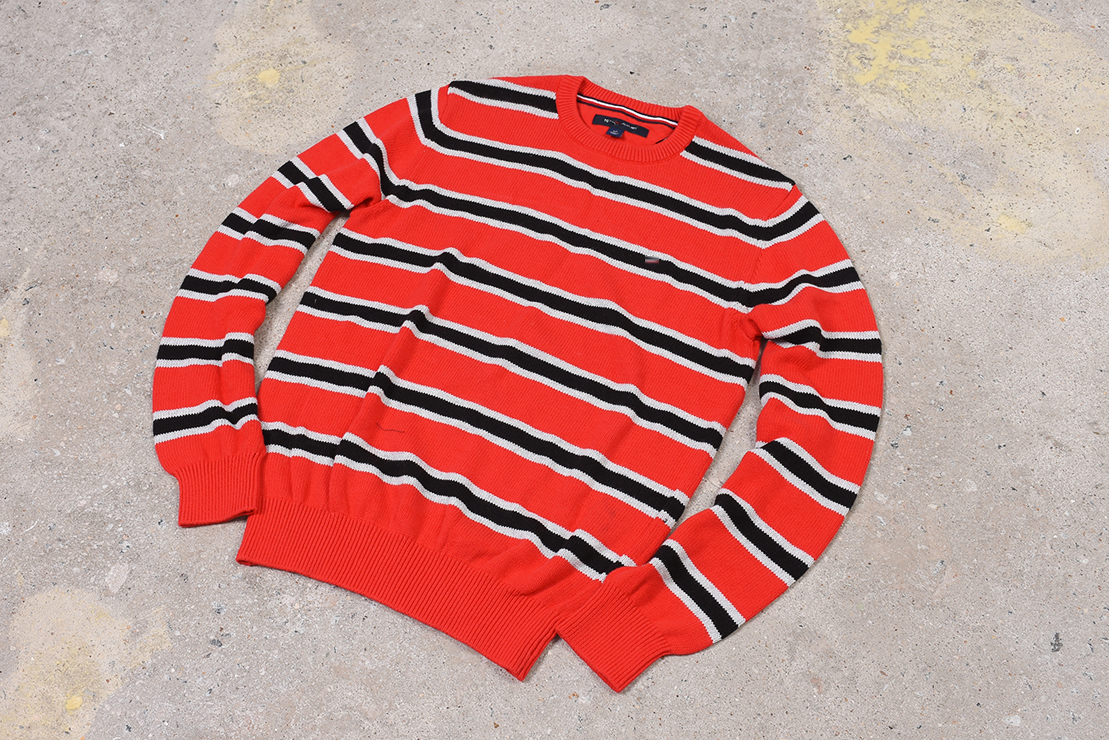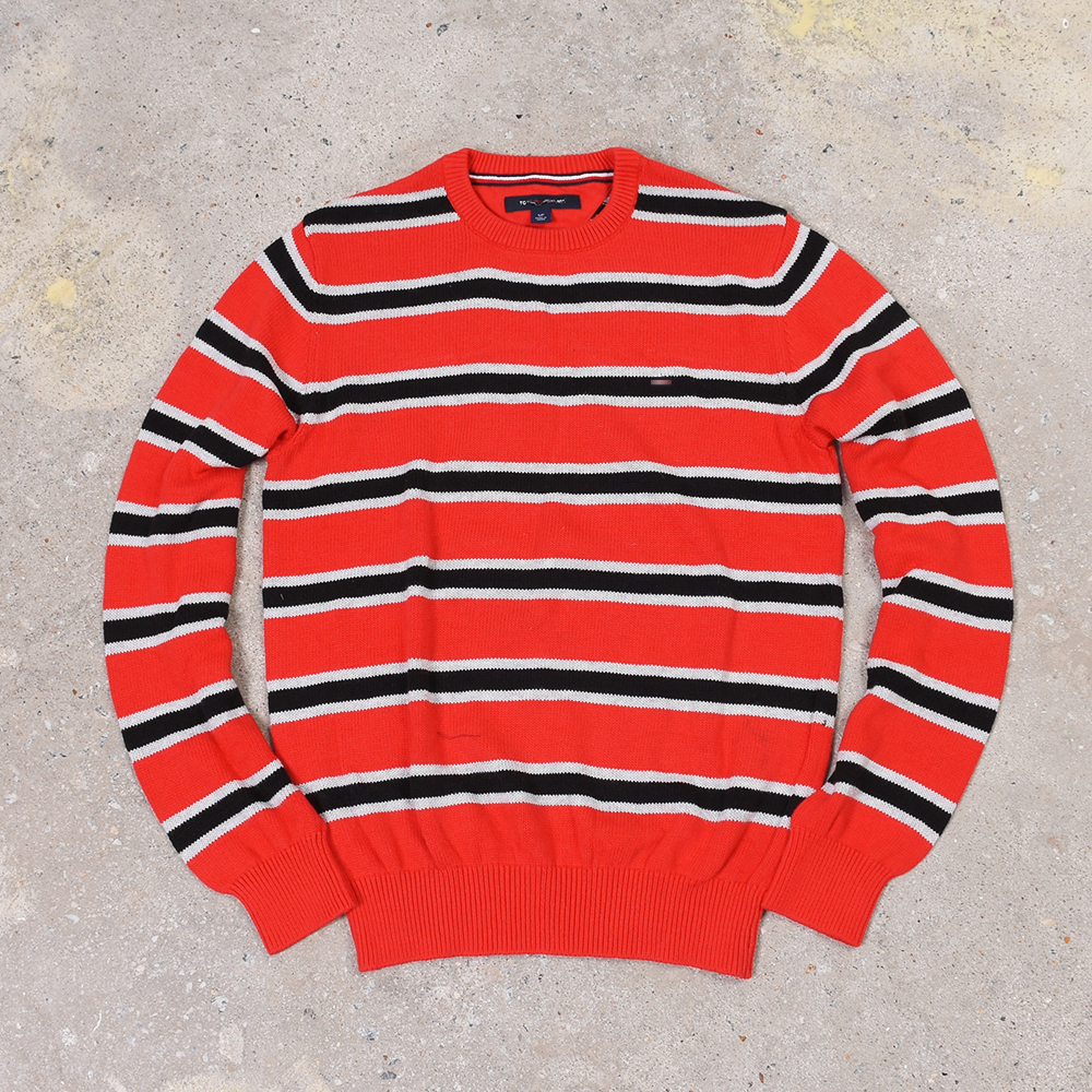 男款条纹拼色圆领毛衣!多色入!秋季薄款!部分领标不同,部分码数标错码(按实现尺寸发货),领标剪标或无领标,洗标剪标,棉质面料手感非常舒适!胸前精致刺绣。衬衫百搭!