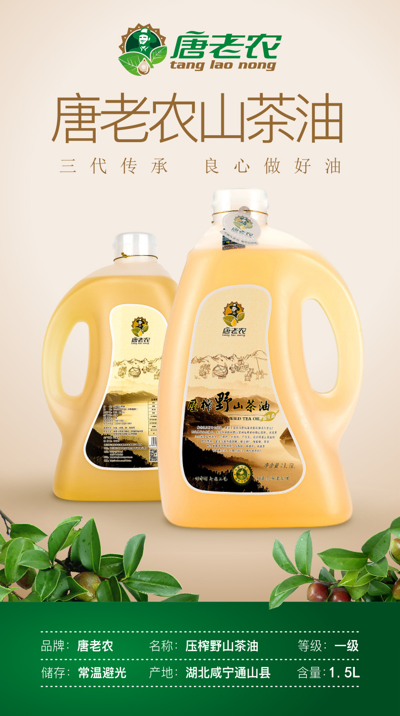 咸宁通山乡村振兴 唐老农野生压榨山茶油1.5L*1家庭实惠装