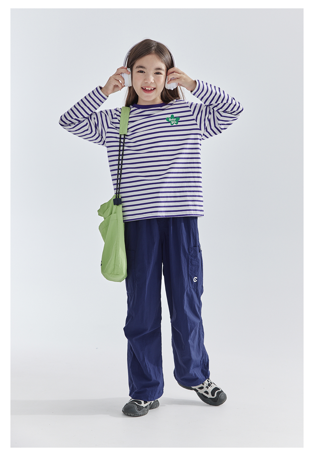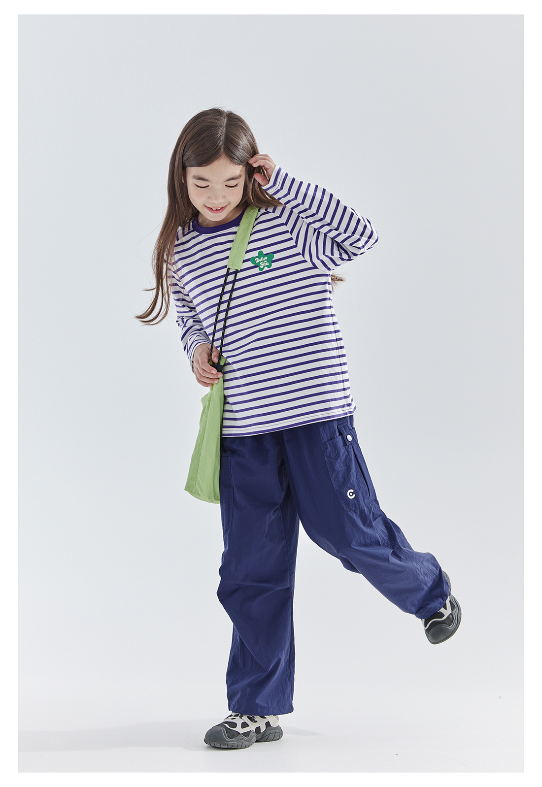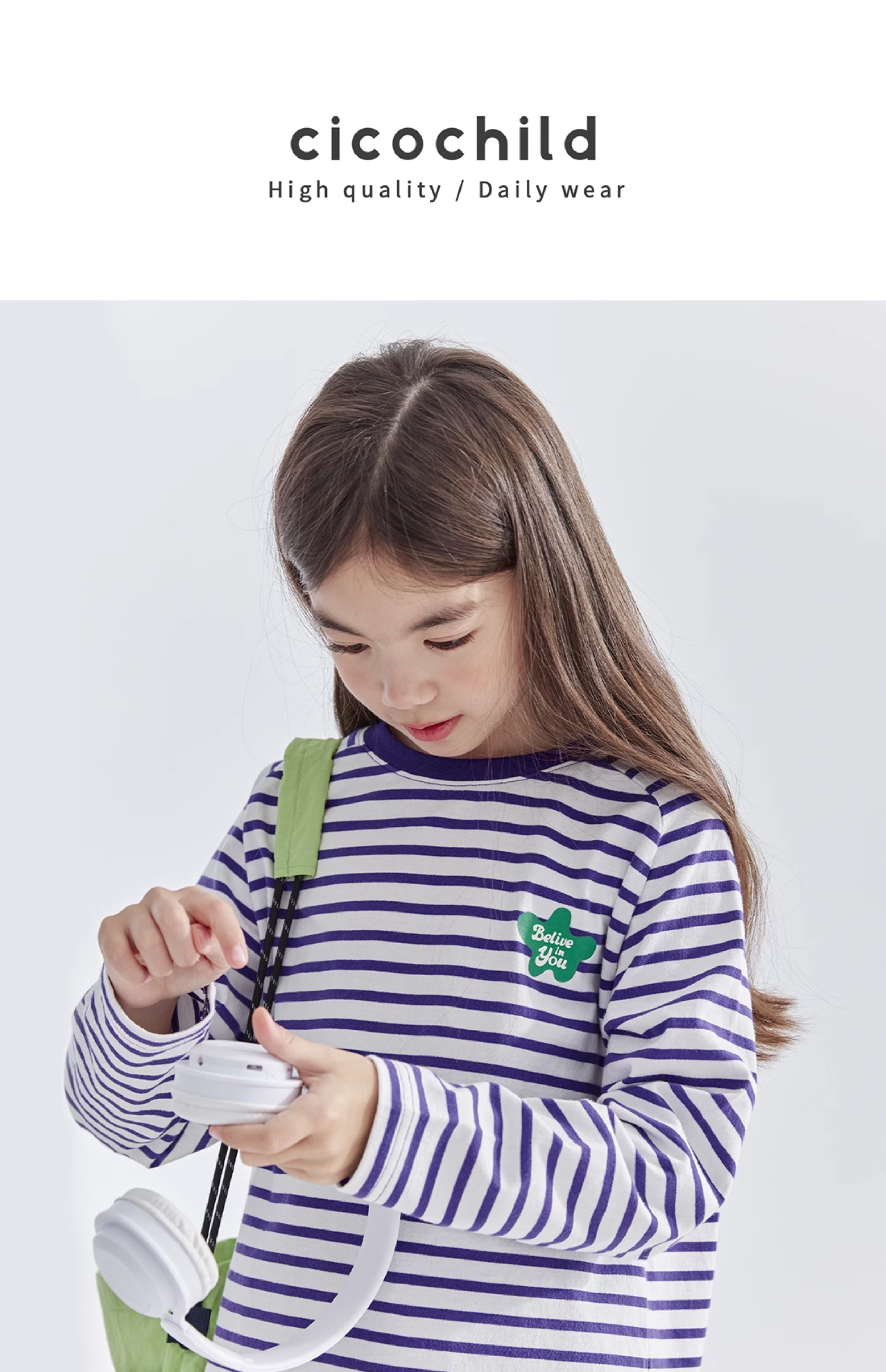 cicochild25年春季新款儿童百搭色彩条纹T恤长袖打底衫女童亲子款