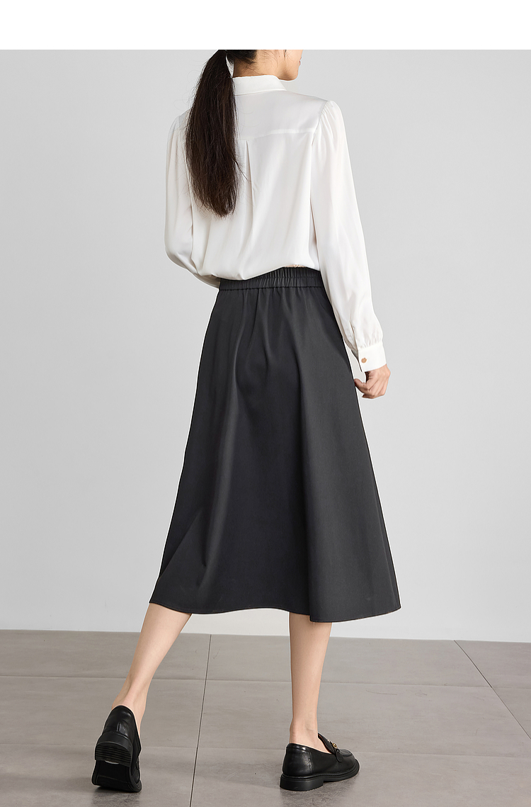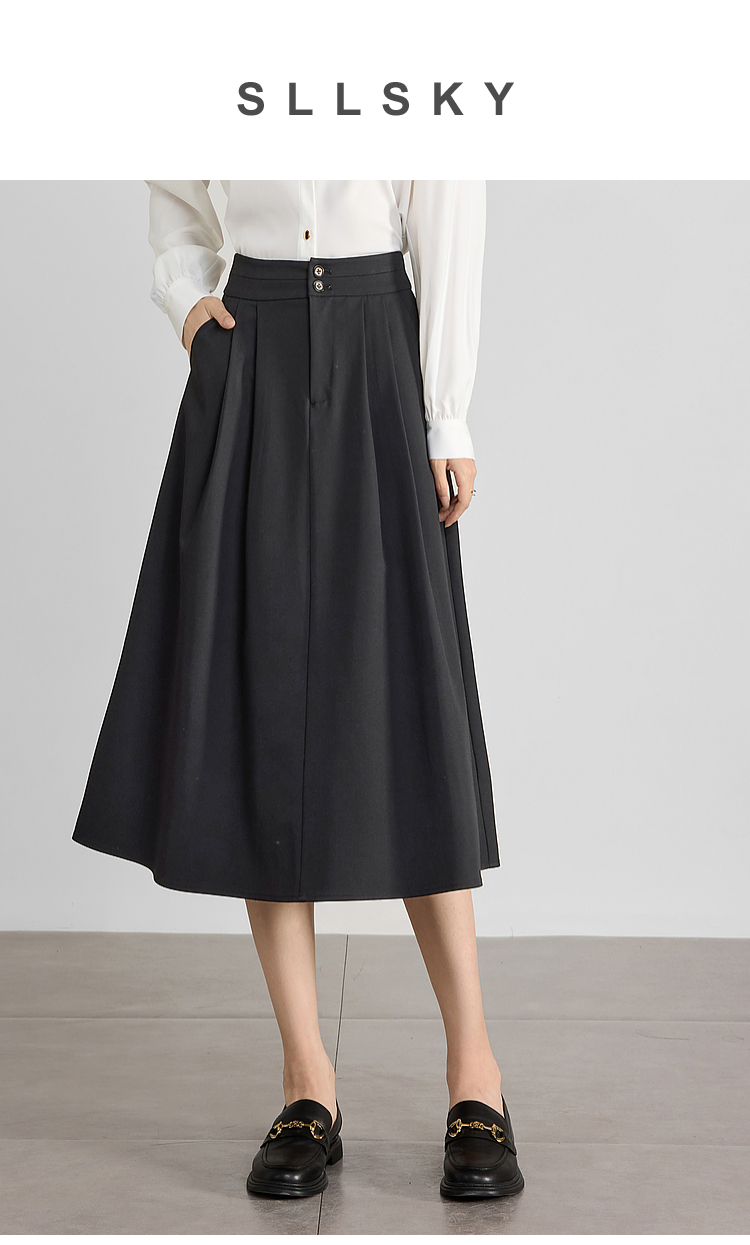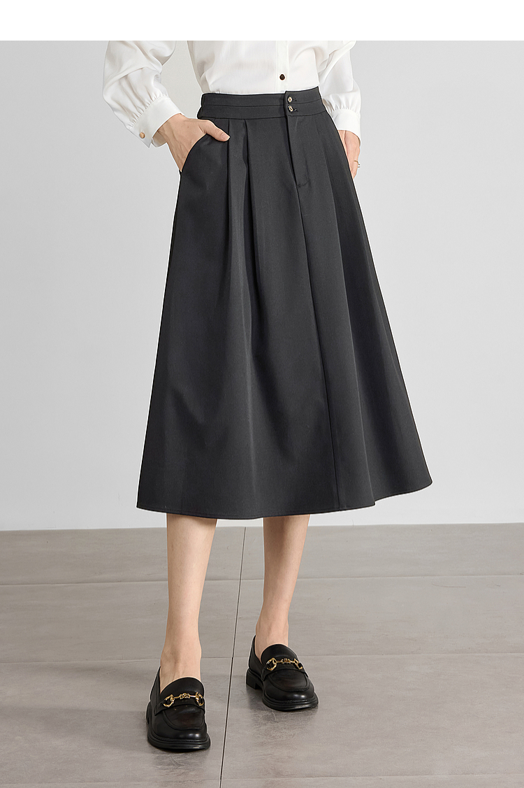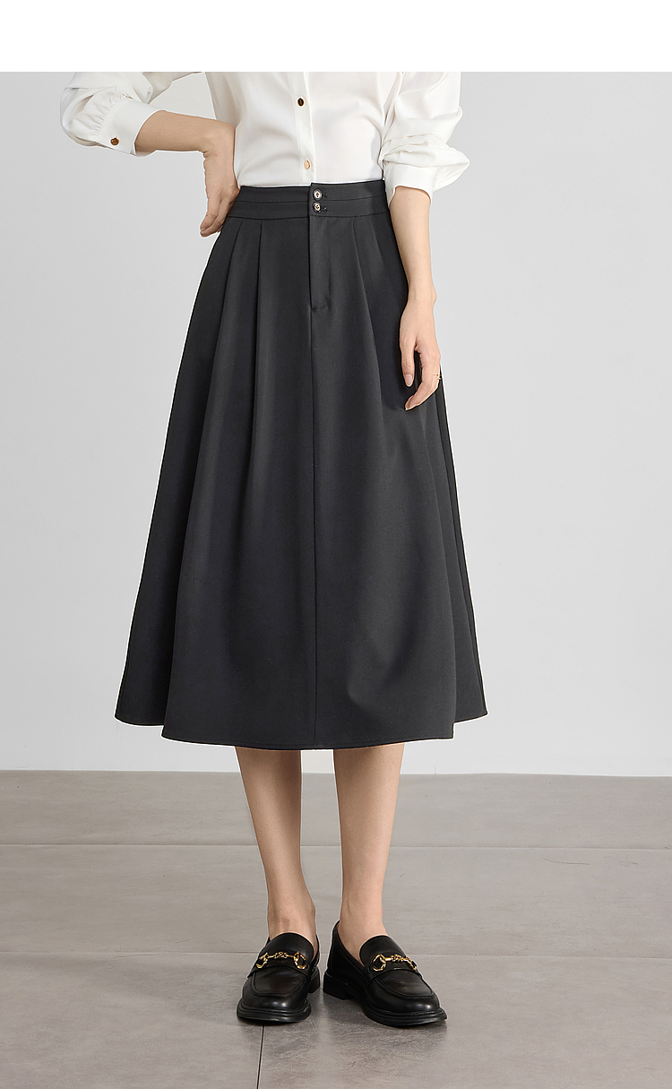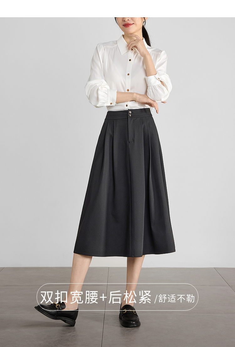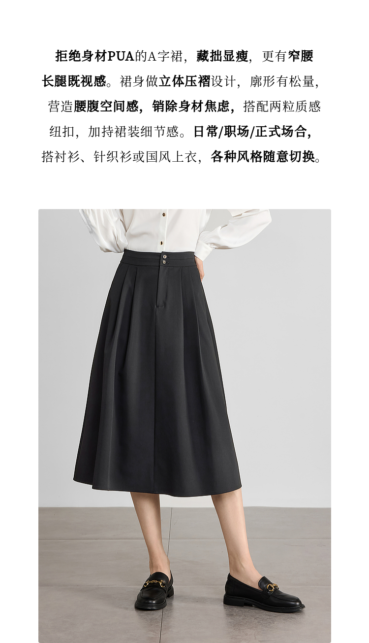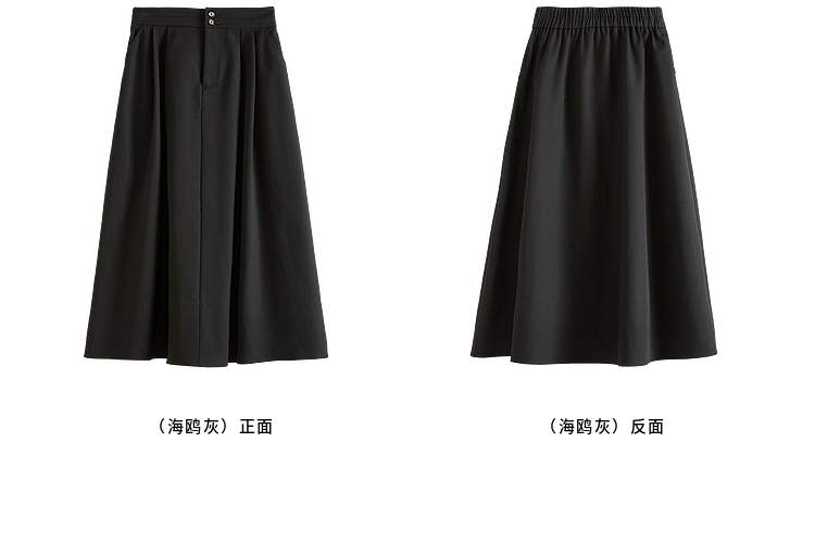 【专属特价】熙世界黑灰色半身裙女春季2025新款高腰显瘦赫本风中长a字裙子