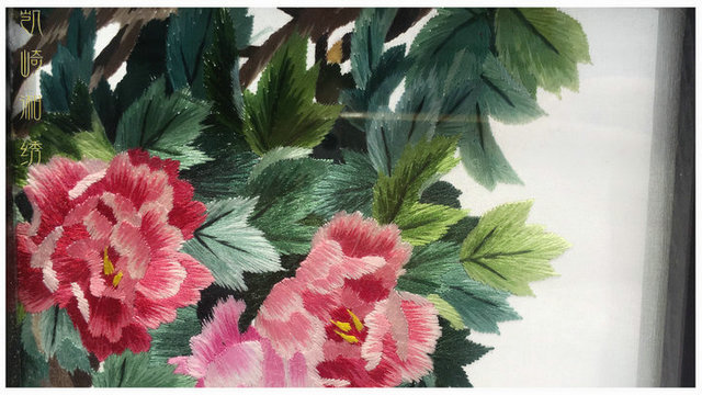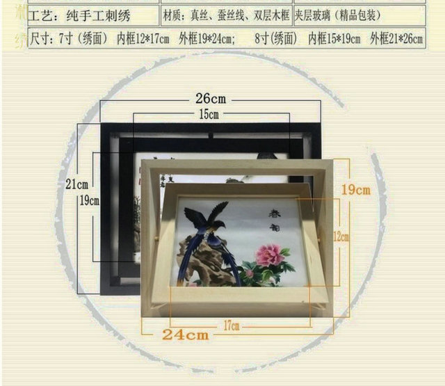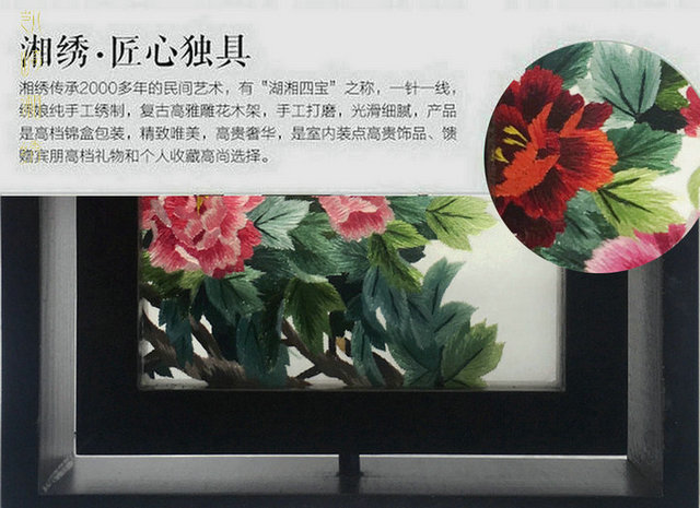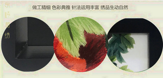 凯崎湘绣 双面绣 手工刺绣旋转相框摆件 客厅桌面装饰 送礼礼品 出国送老外 7寸原木富贵有鱼错针绣