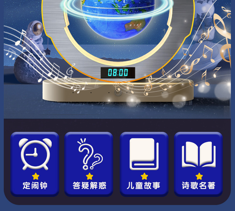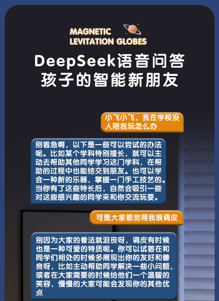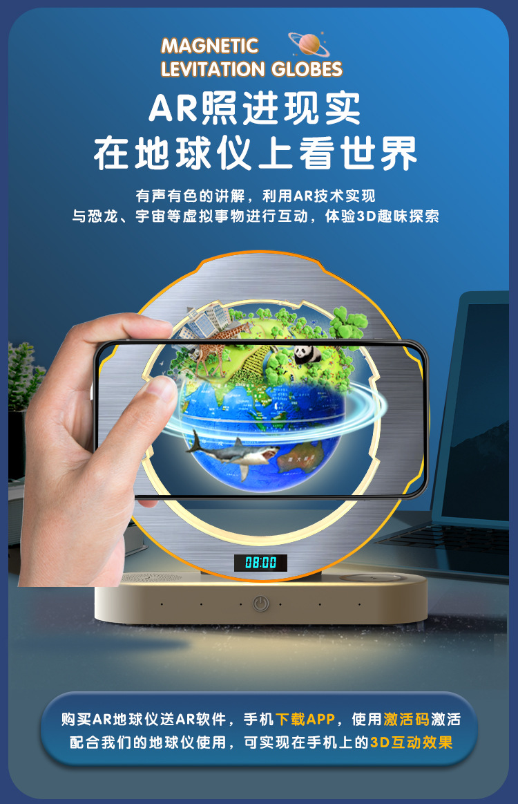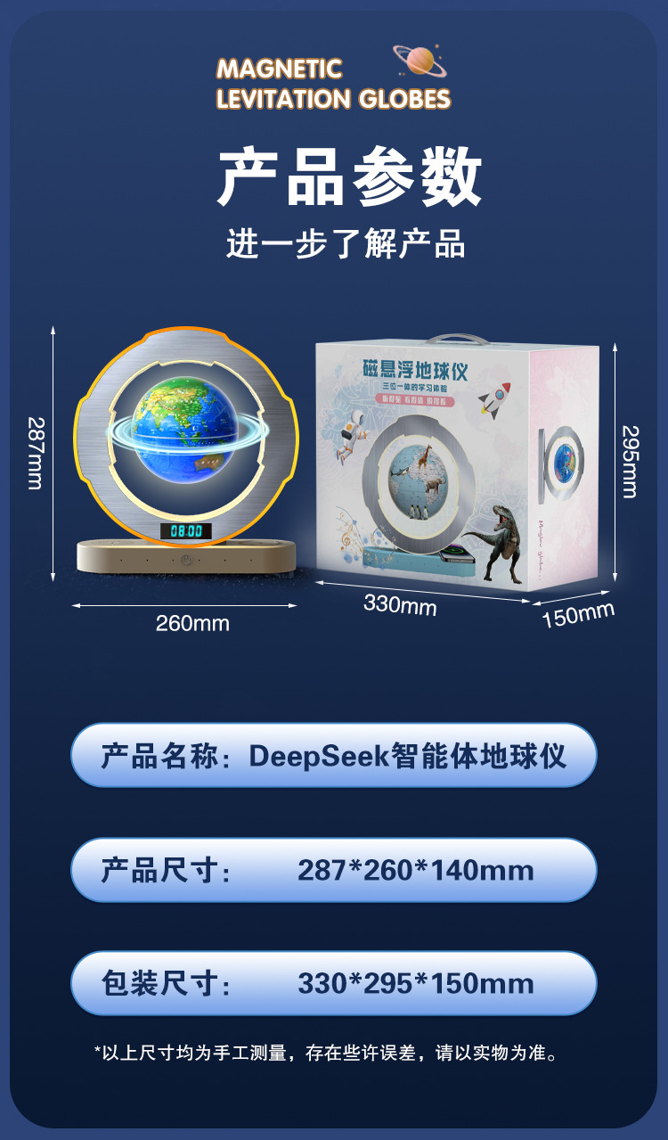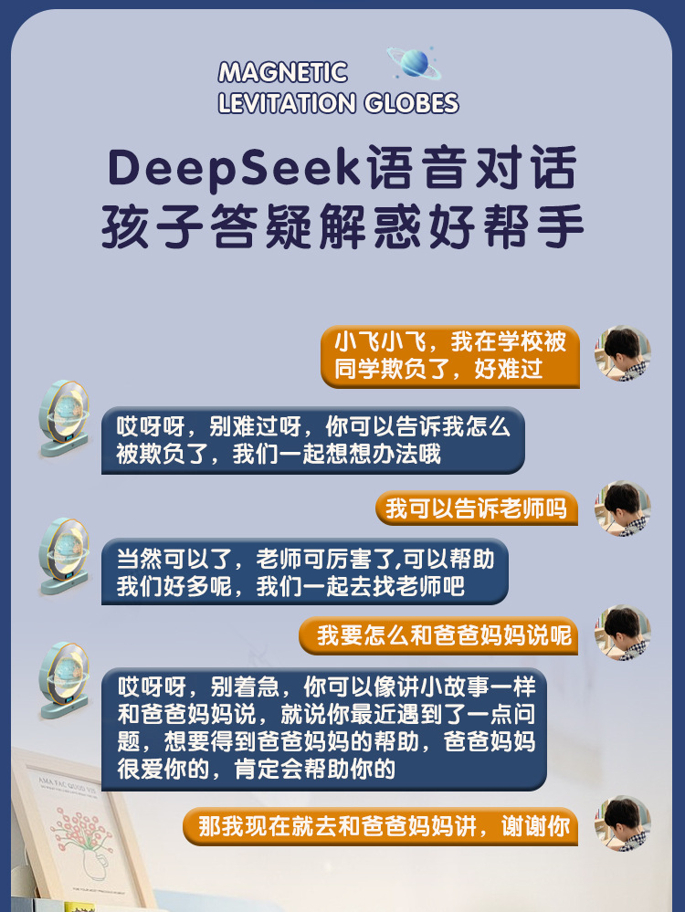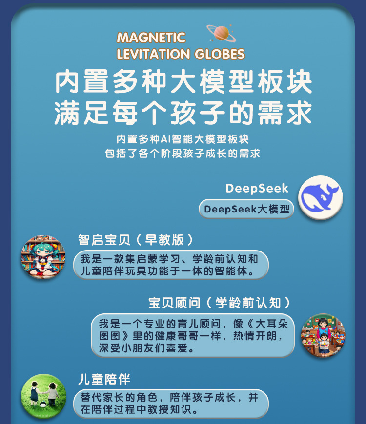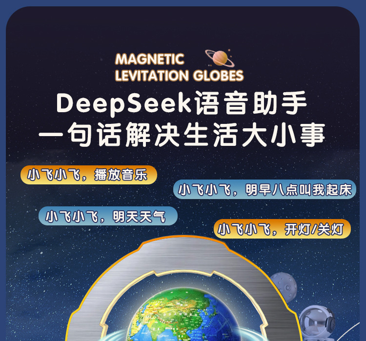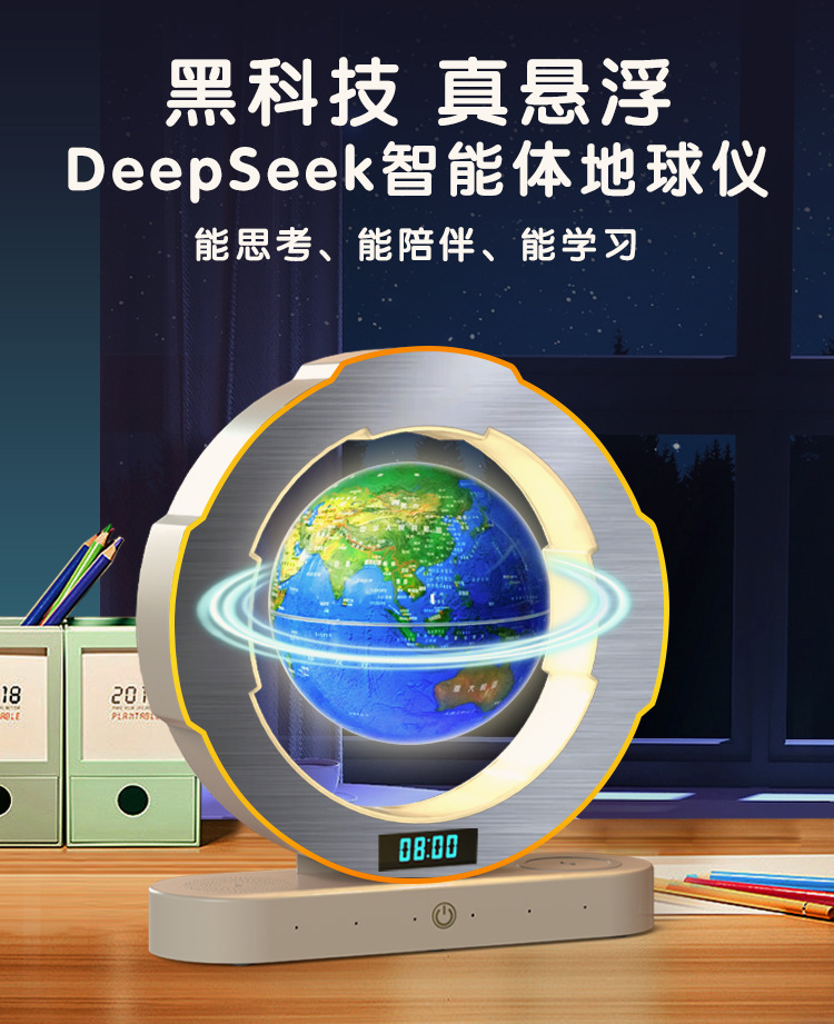 【支持免费刻字/写贺卡】DeepSeek磁悬浮地球仪6寸 5大AI语音大模型加持 6-15岁 AI玩具 儿童礼物闹钟、流畅连续对话、AI智能体、27大AR互动、免费正版音乐、翻译/英语/诗歌/故事