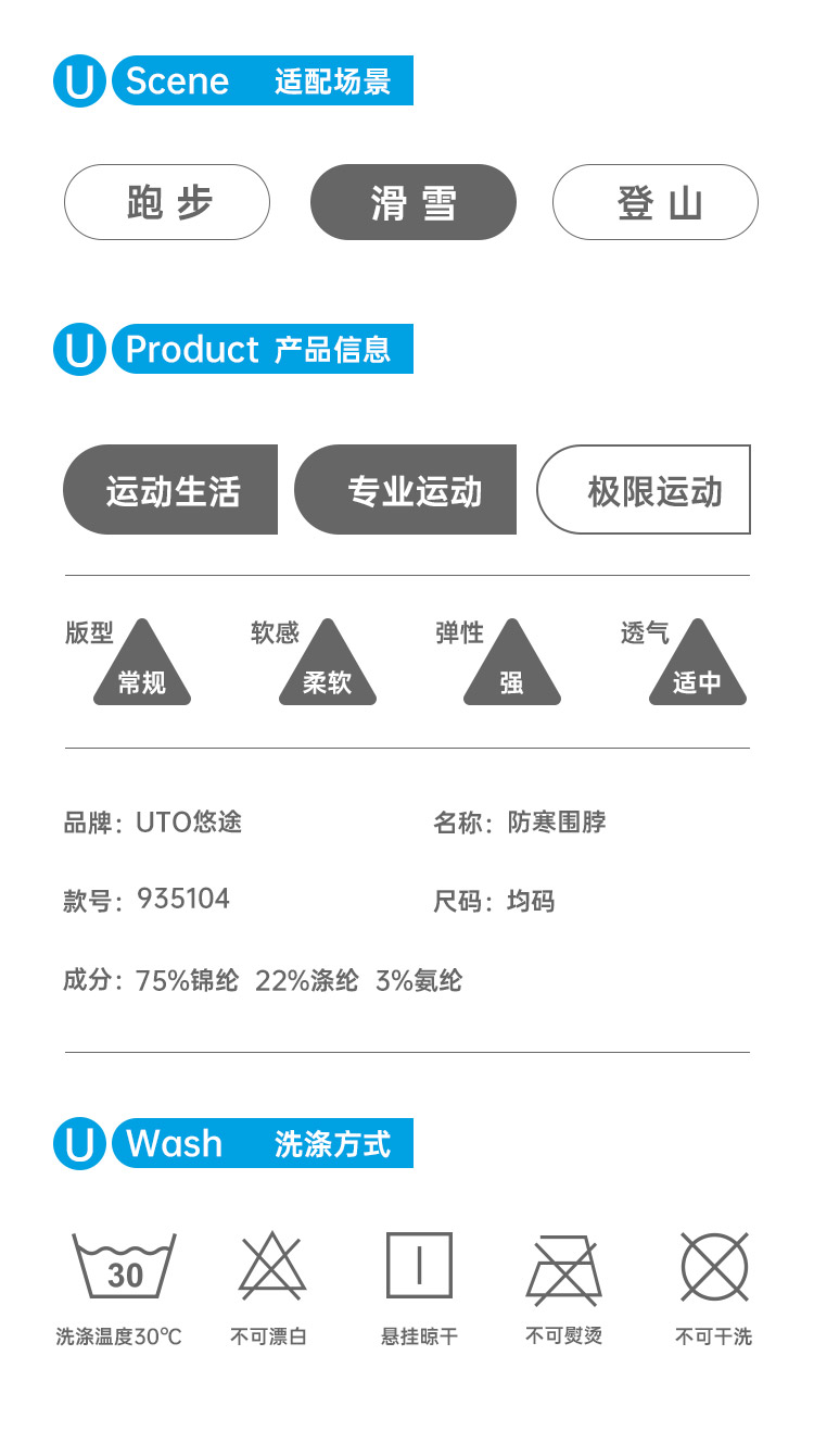 UTO/悠途户外运动骑行防寒保暖围脖套滑雪防风护脸套头面罩冬季