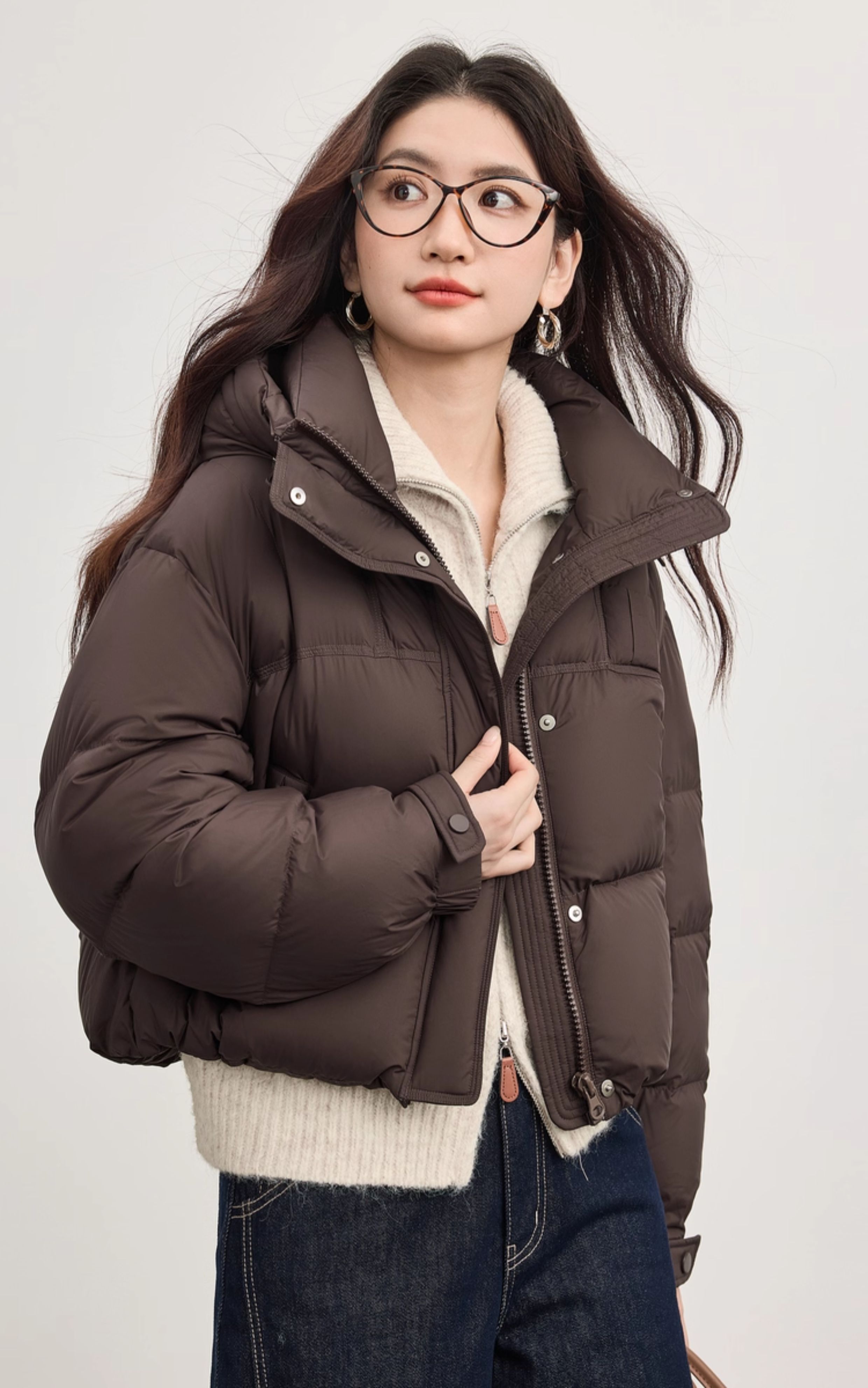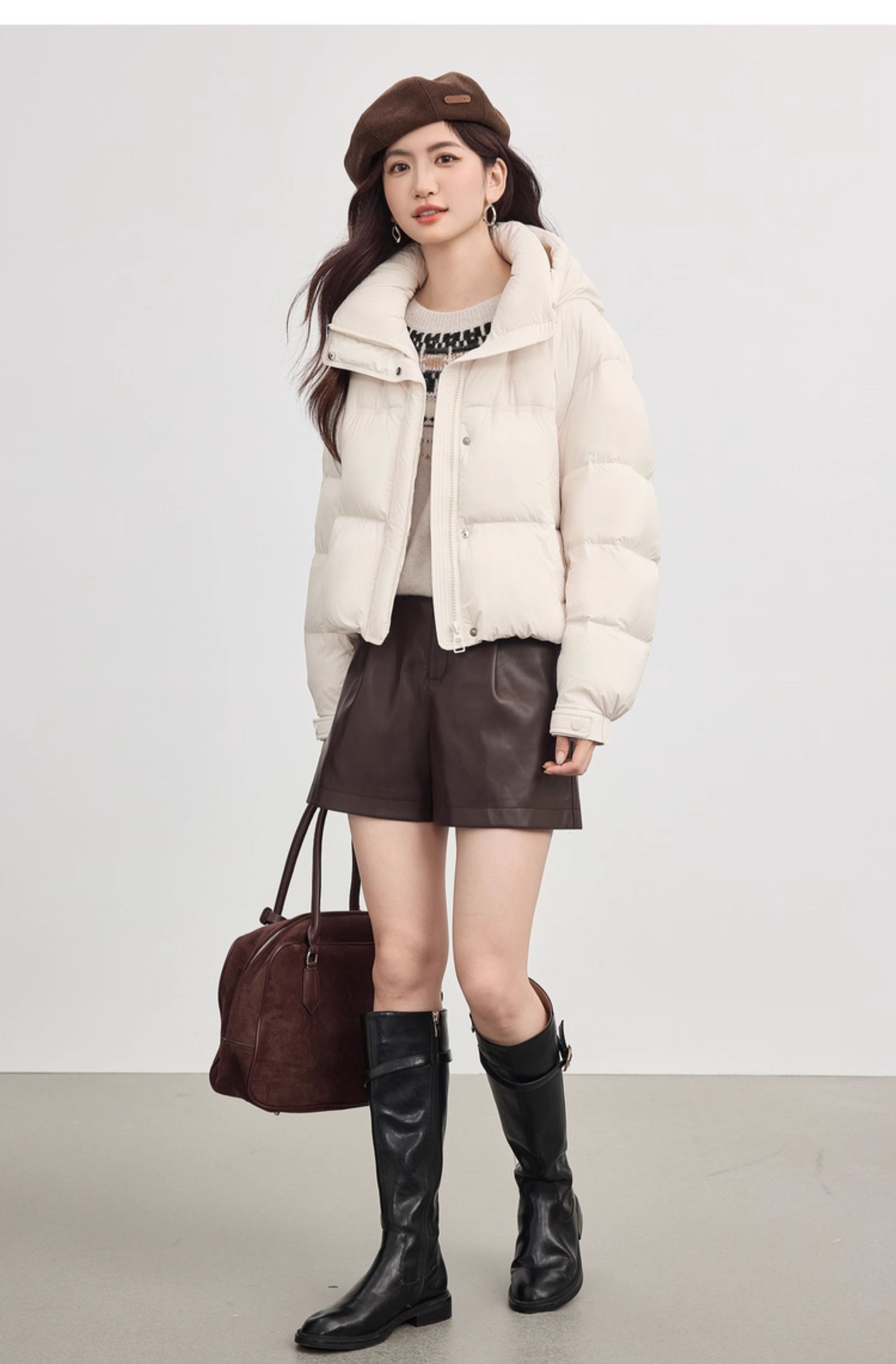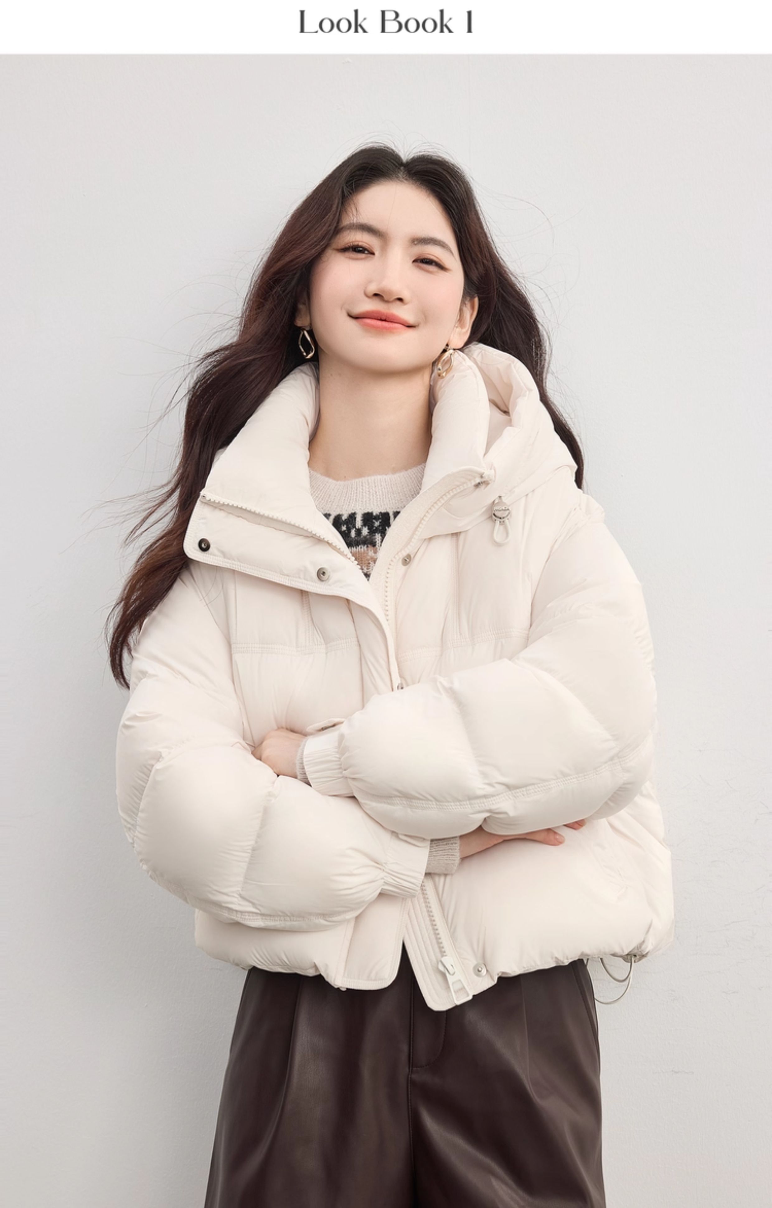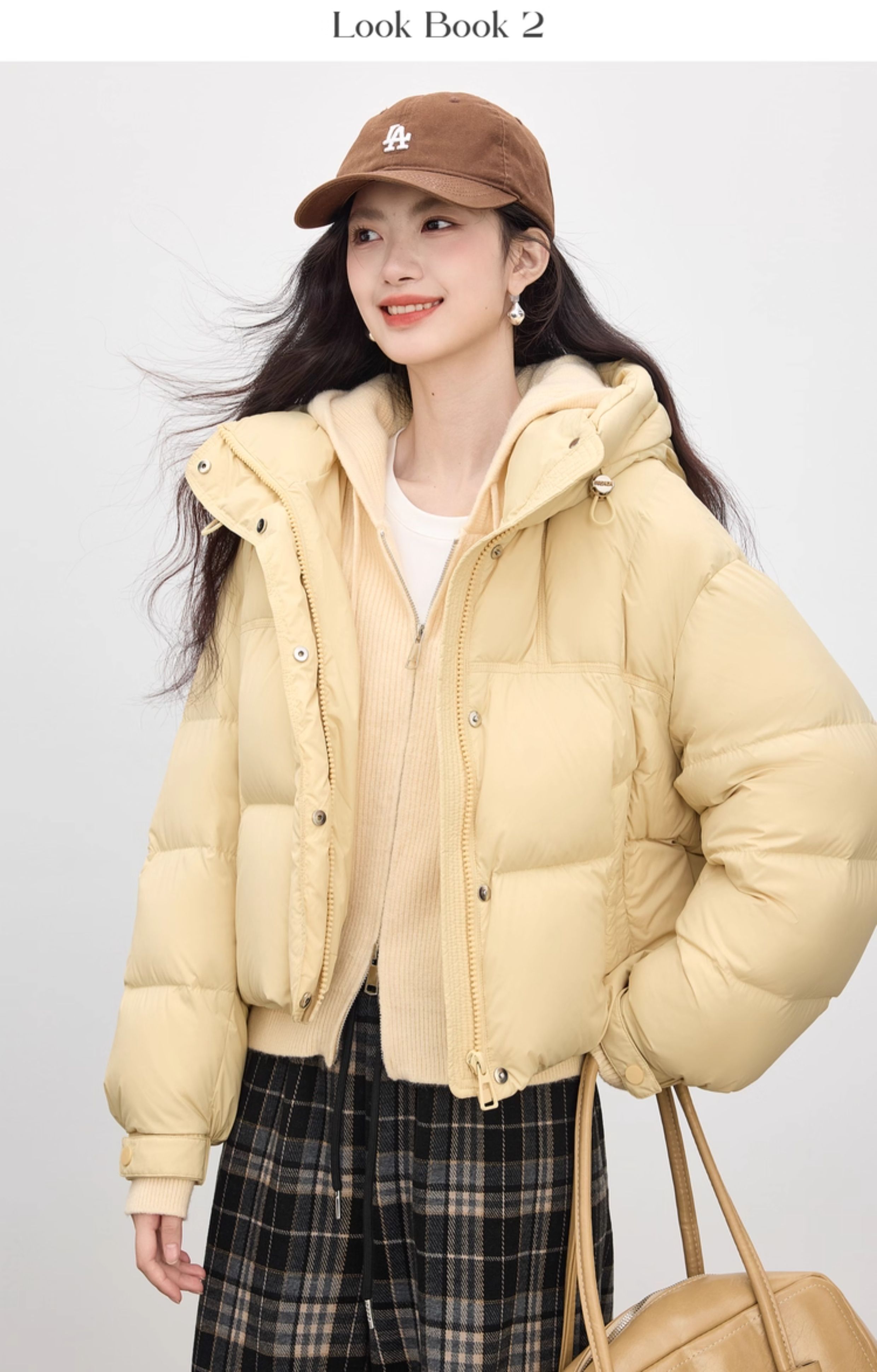 【10/15新品】熙世界暖炉冬日白鸭绒短款羽绒服女冬装厚款小个子面包服连帽外套