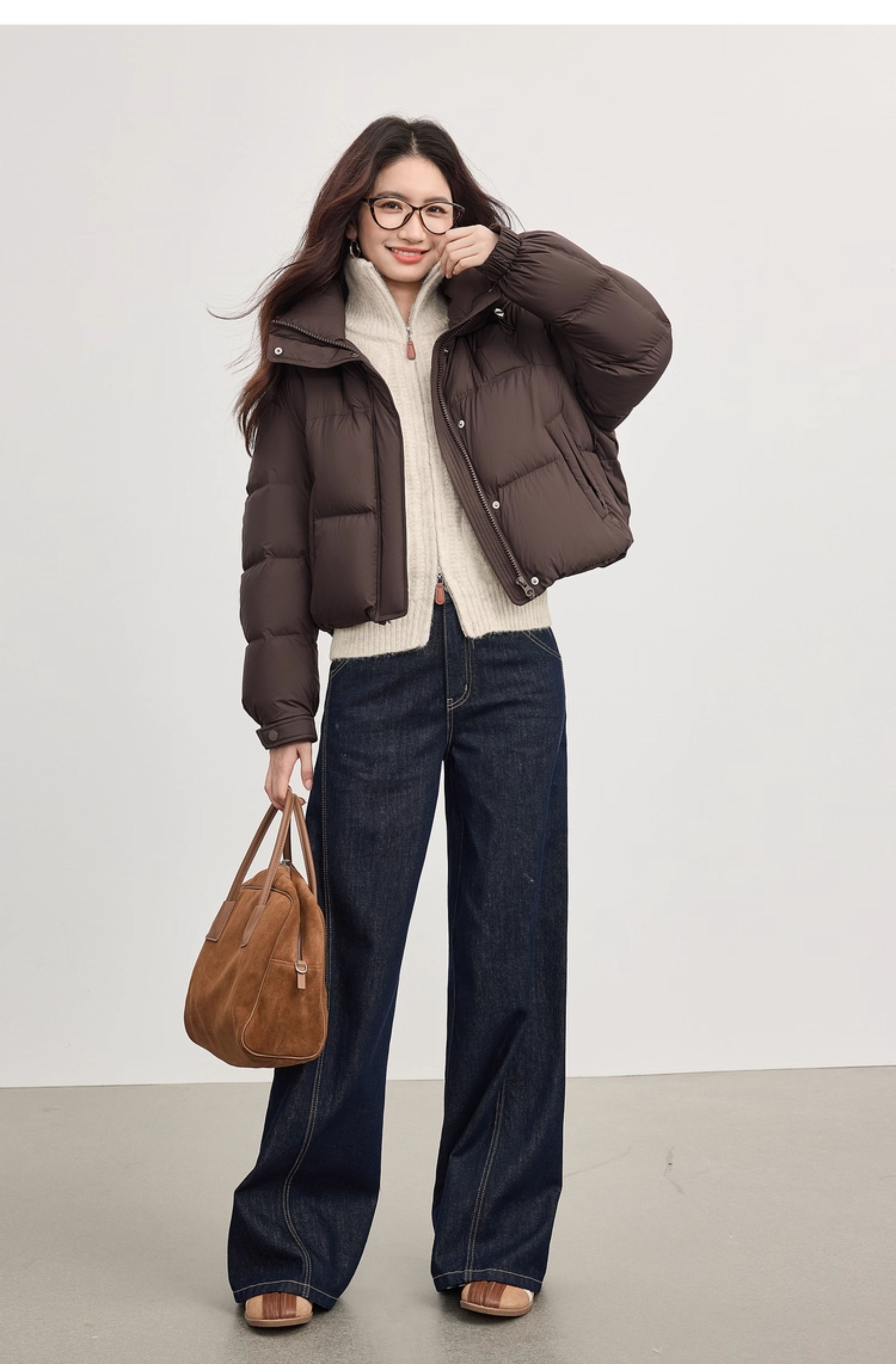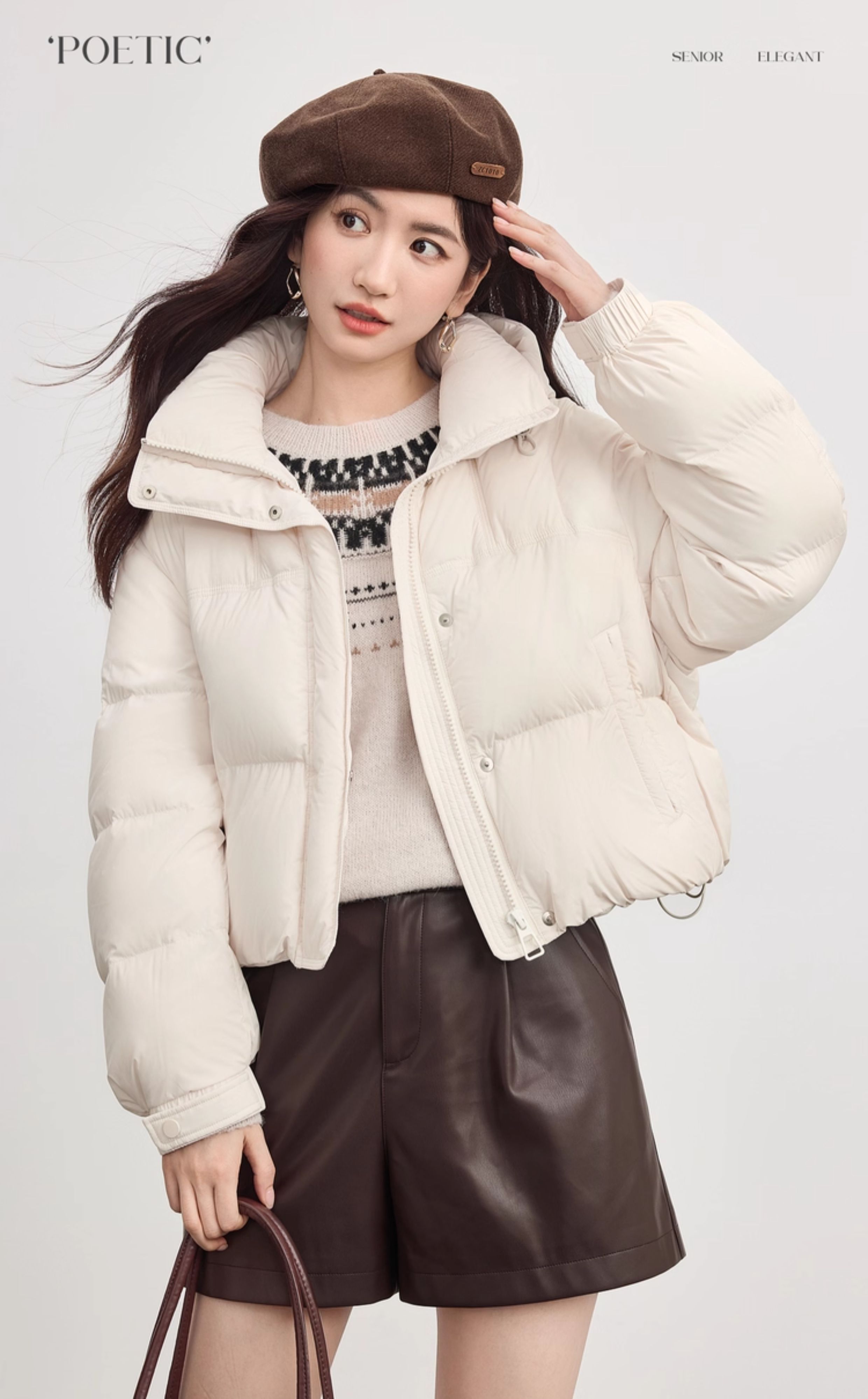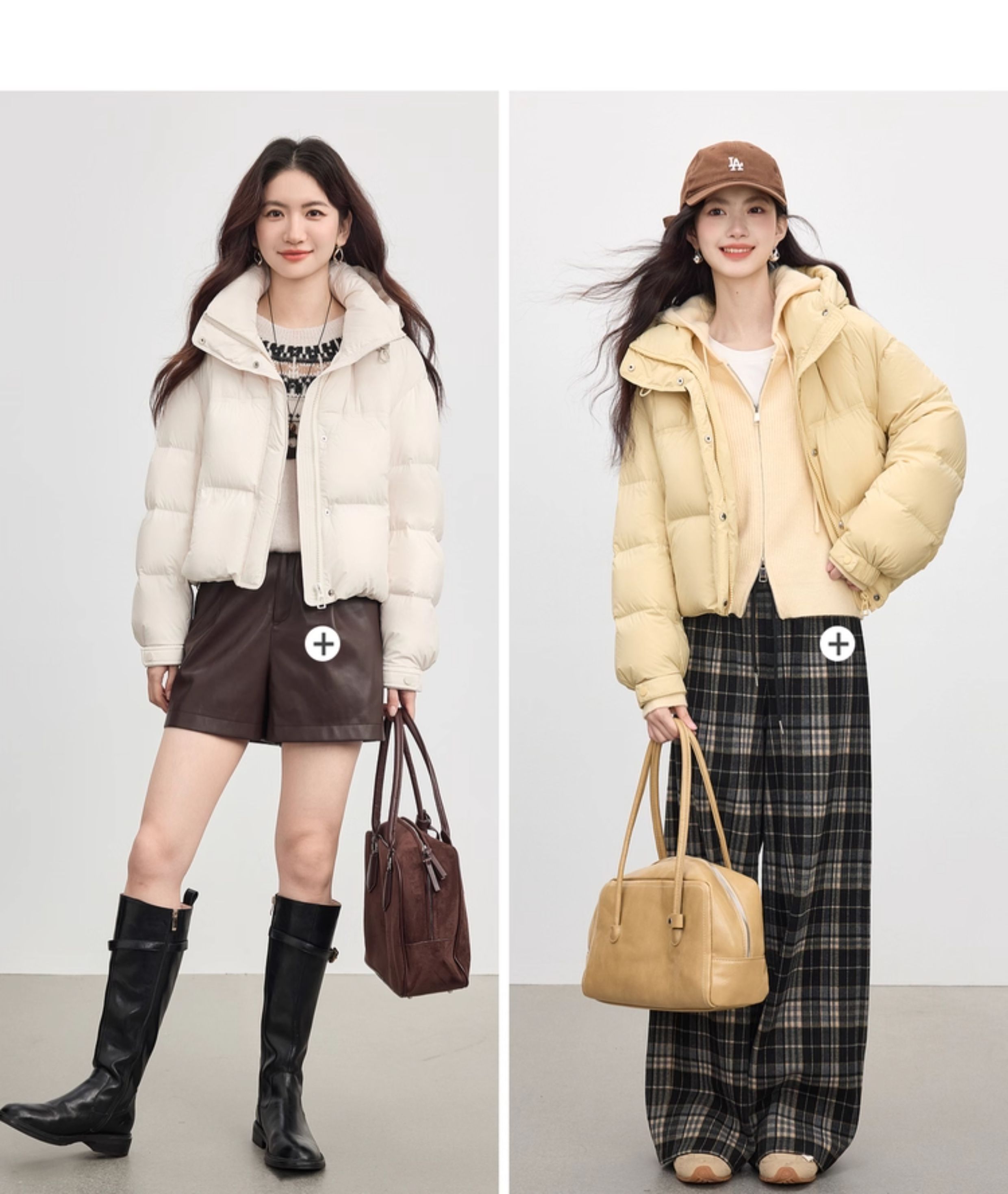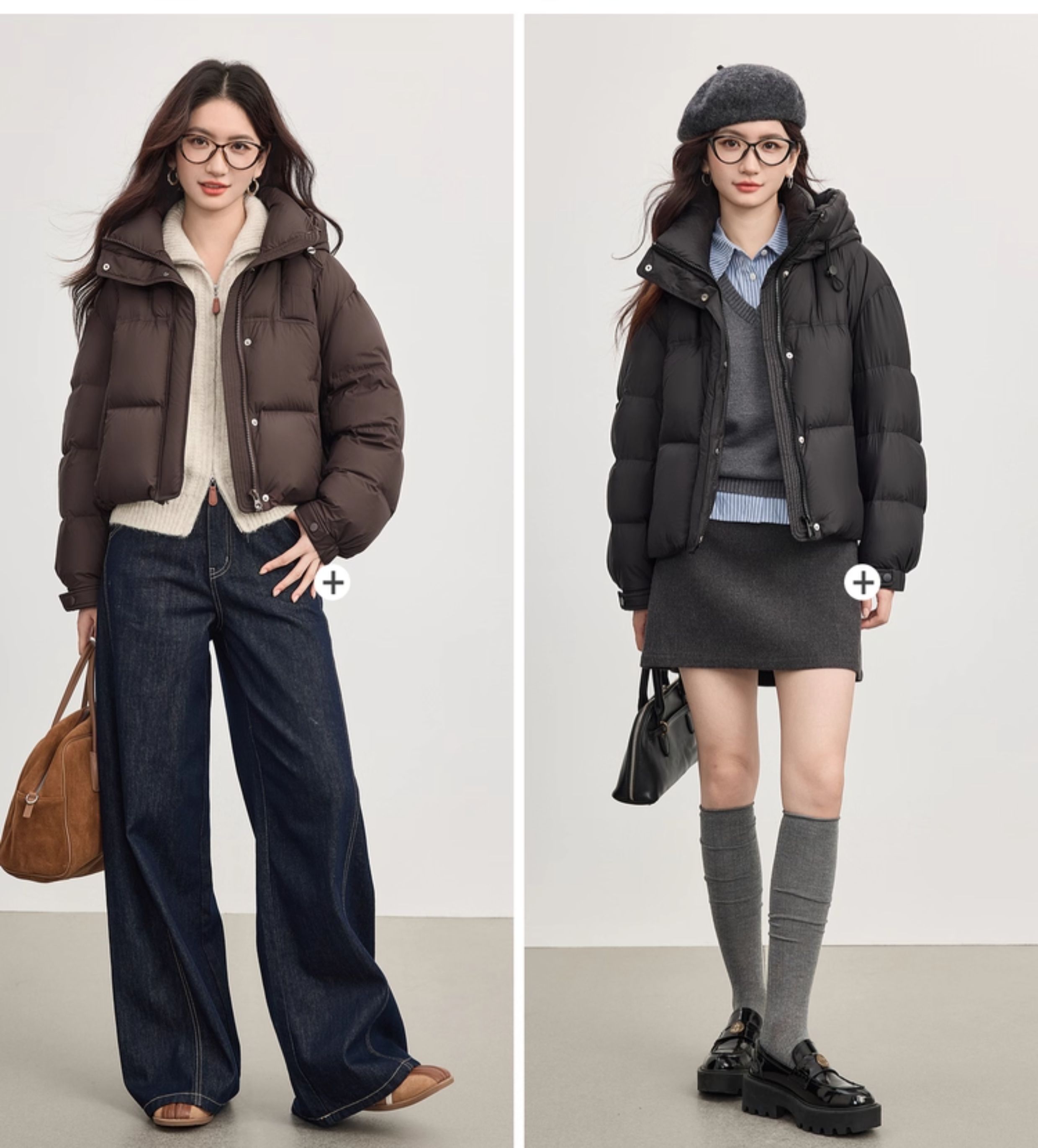 【10/15新品】熙世界暖炉冬日白鸭绒短款羽绒服女冬装厚款小个子面包服连帽外套
