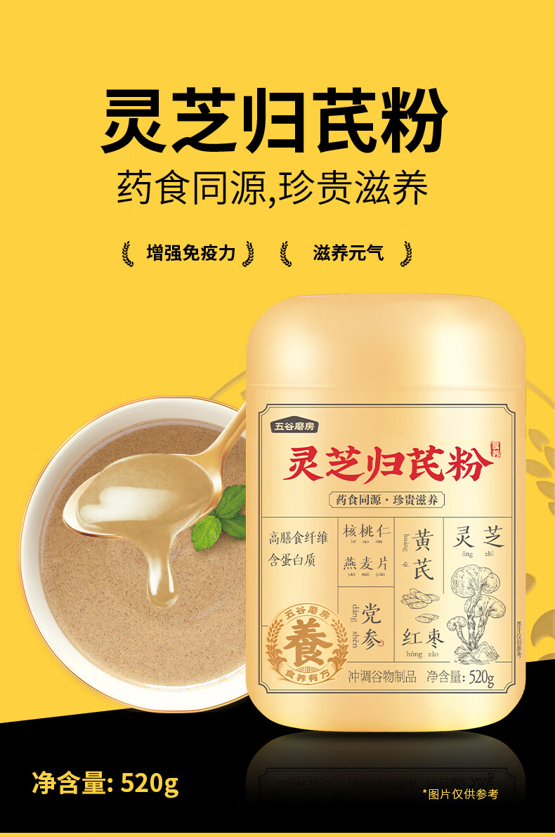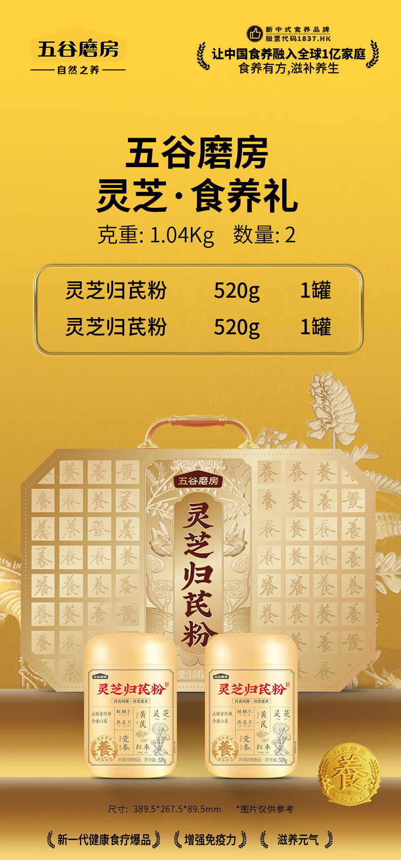 【分仓直发包邮】五谷磨房灵芝·食养礼1040g(灵芝归芪粉520g+灵芝归芪粉520g)