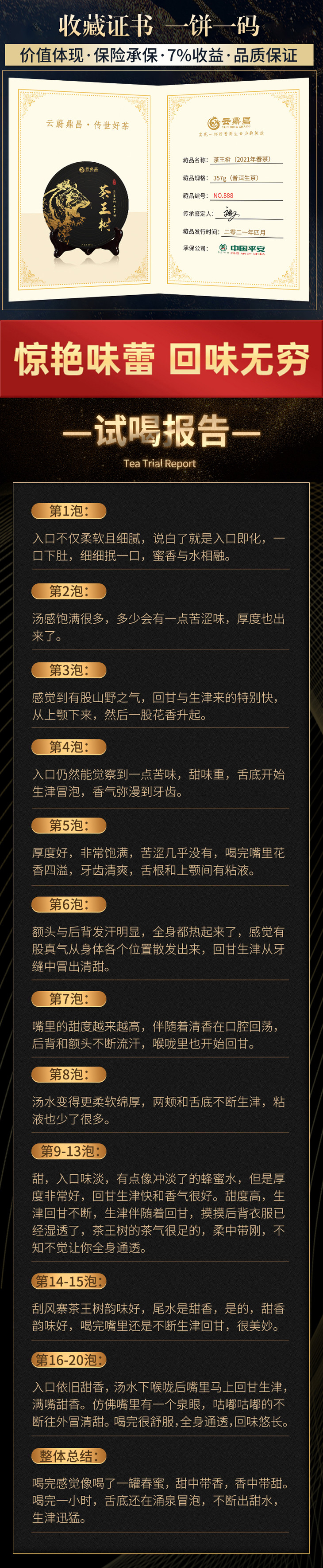 【21年茶王树】云南普洱生茶饼茶易武900年古树纯料357g