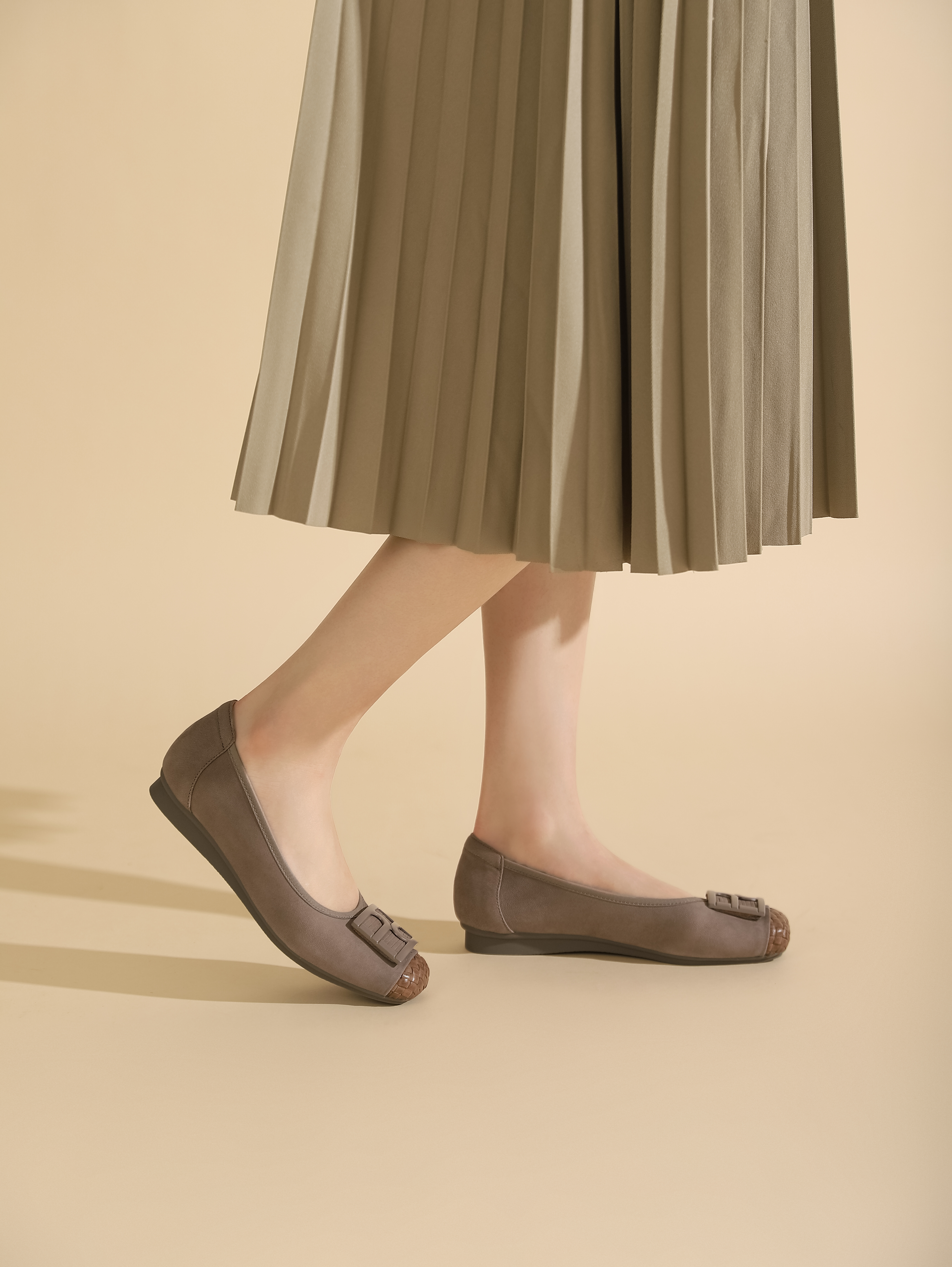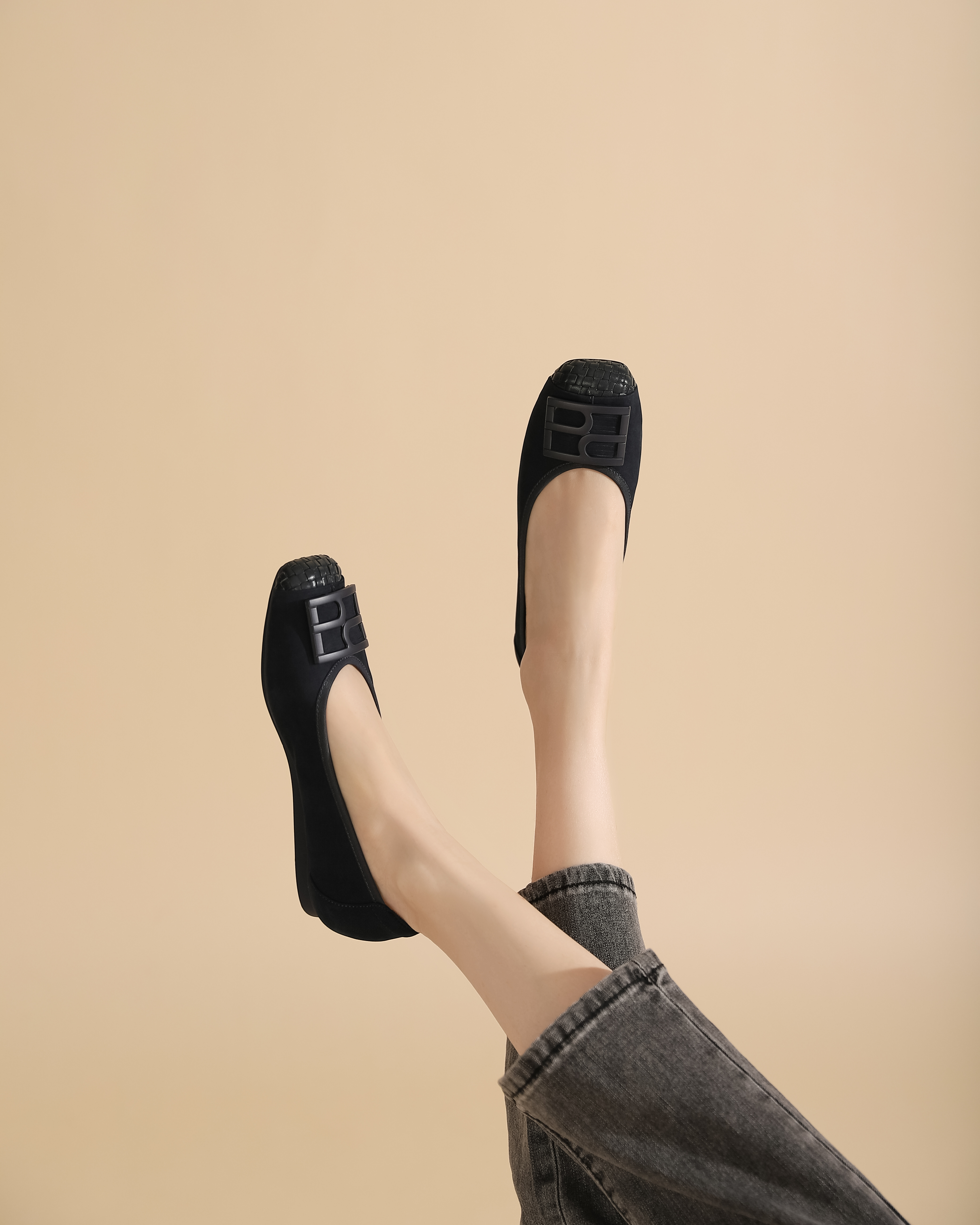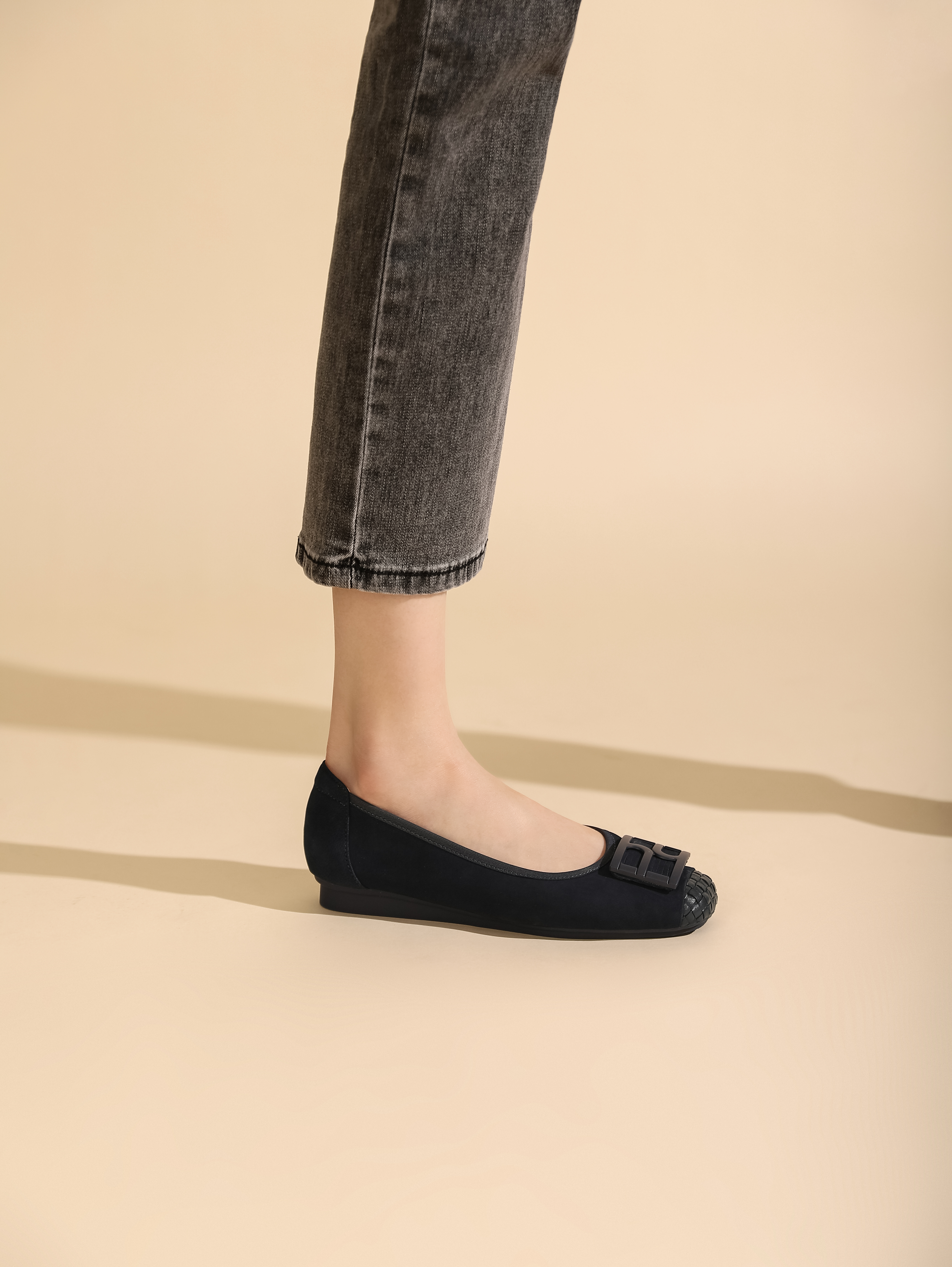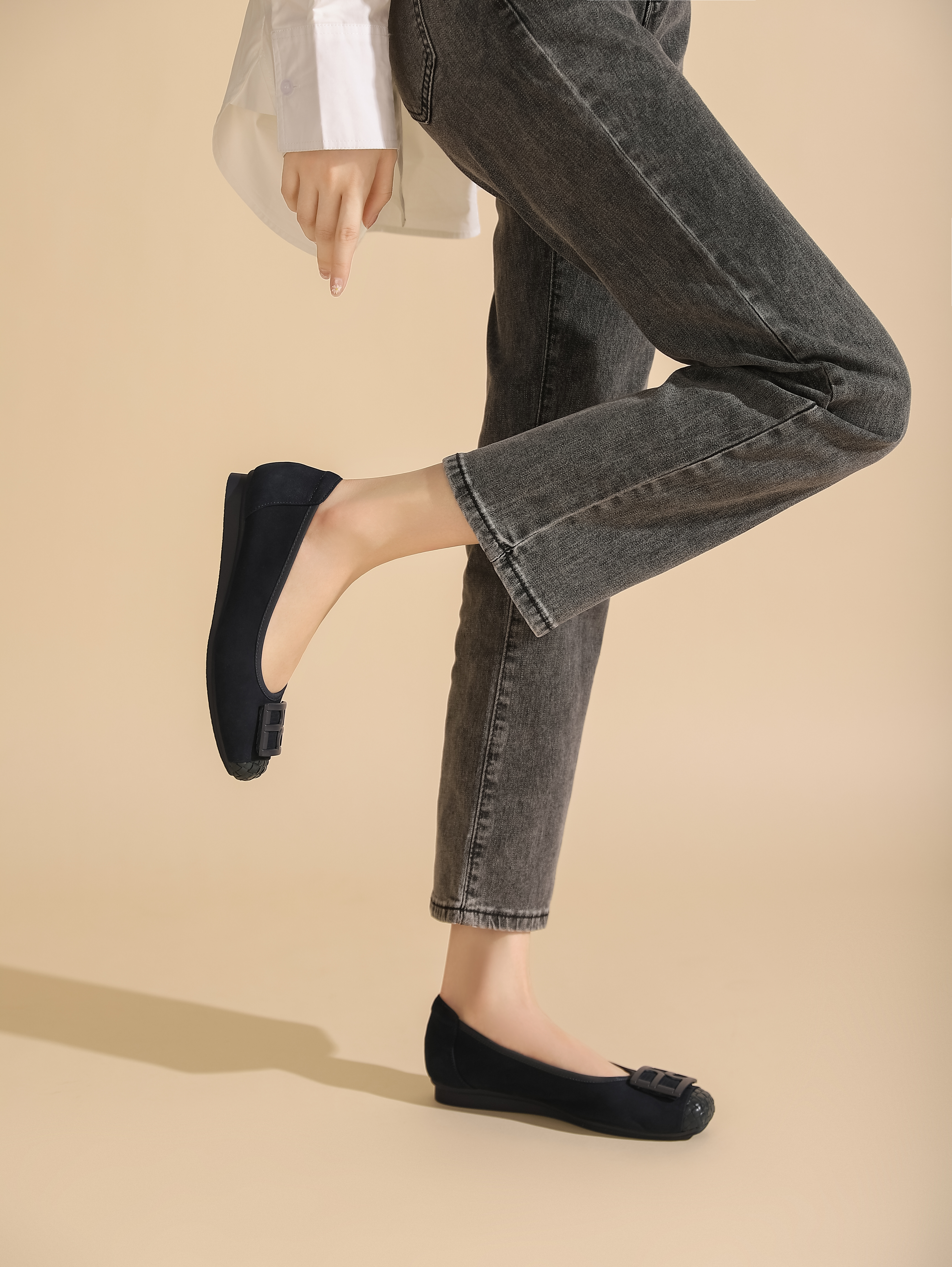 西村名物2023年秋季新款低跟圆头饰扣小香风法式单鞋X23CE33681