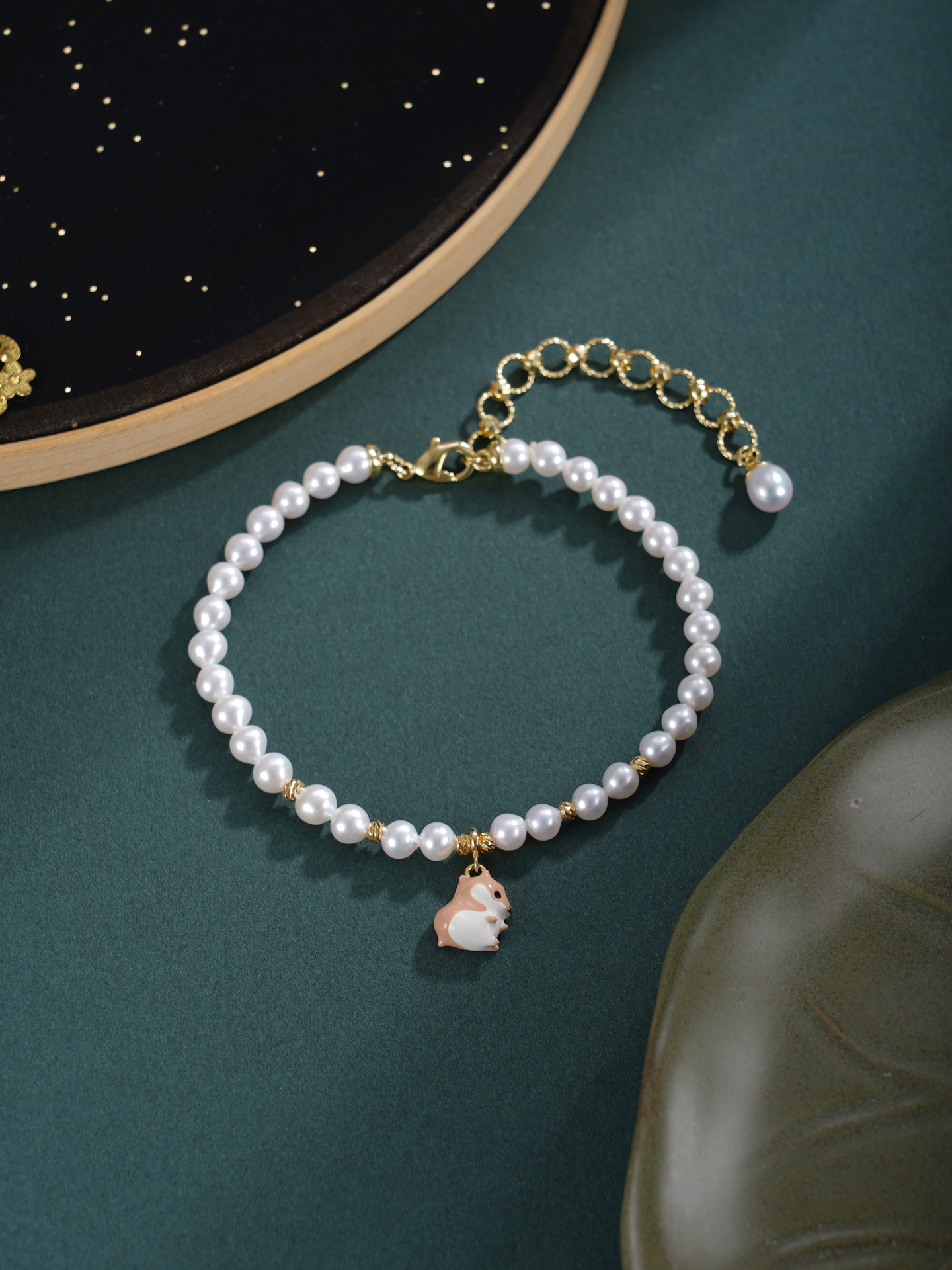 子佩集【鼠你最好】珍珠惜王妃手链【XXSL019】4mm珠镀金小鼠2601