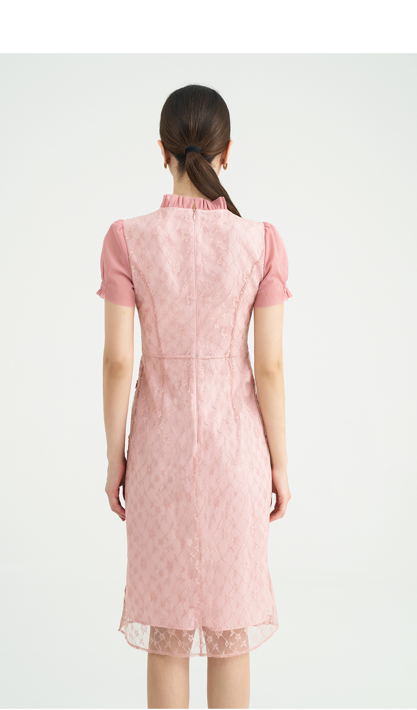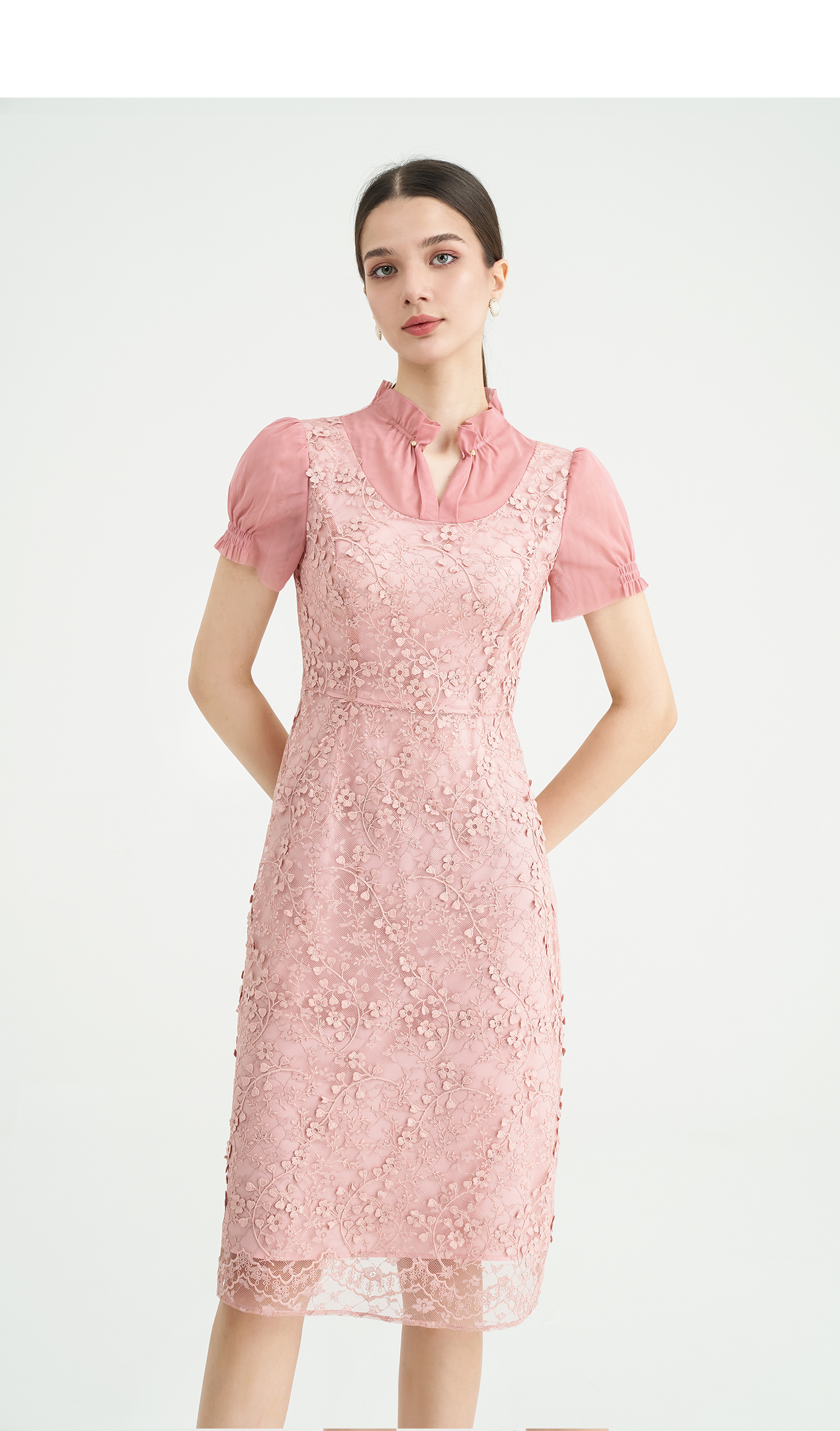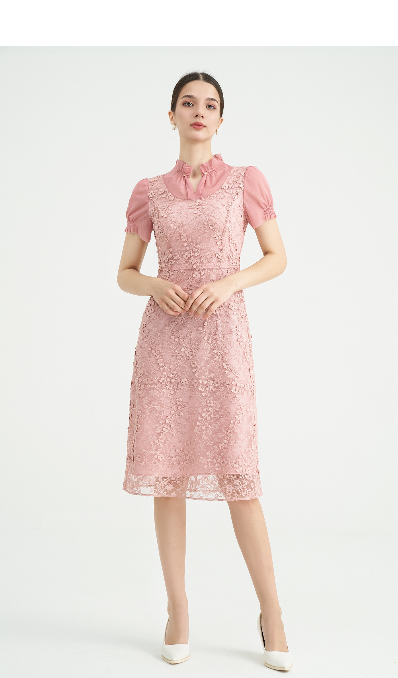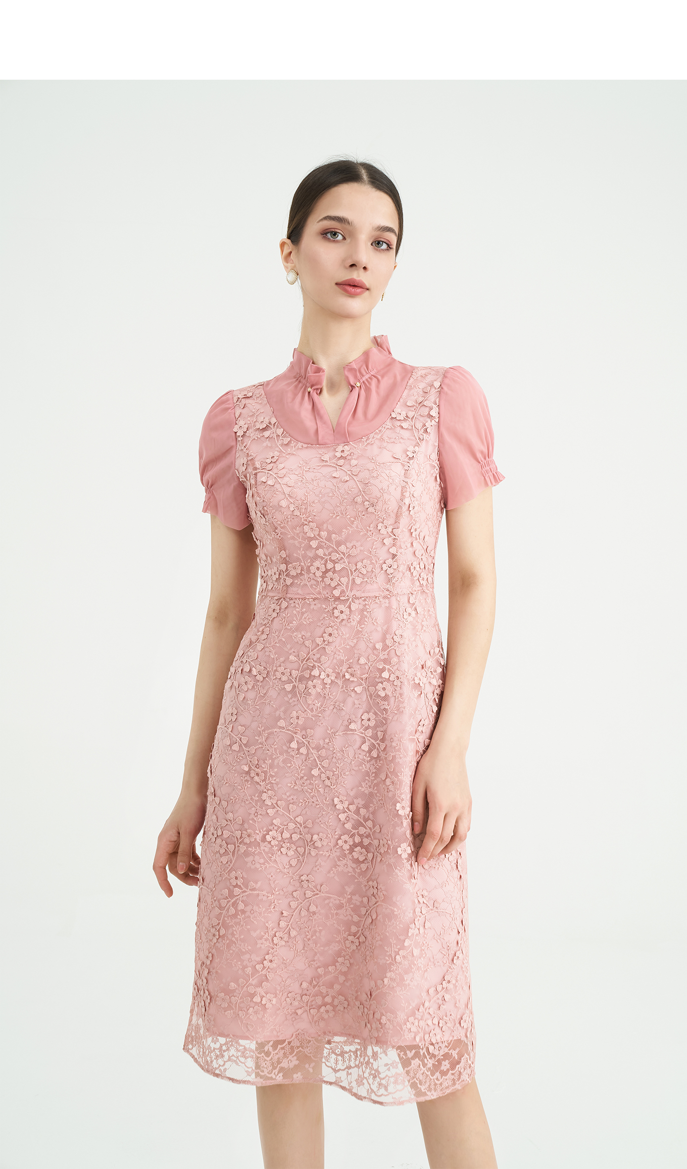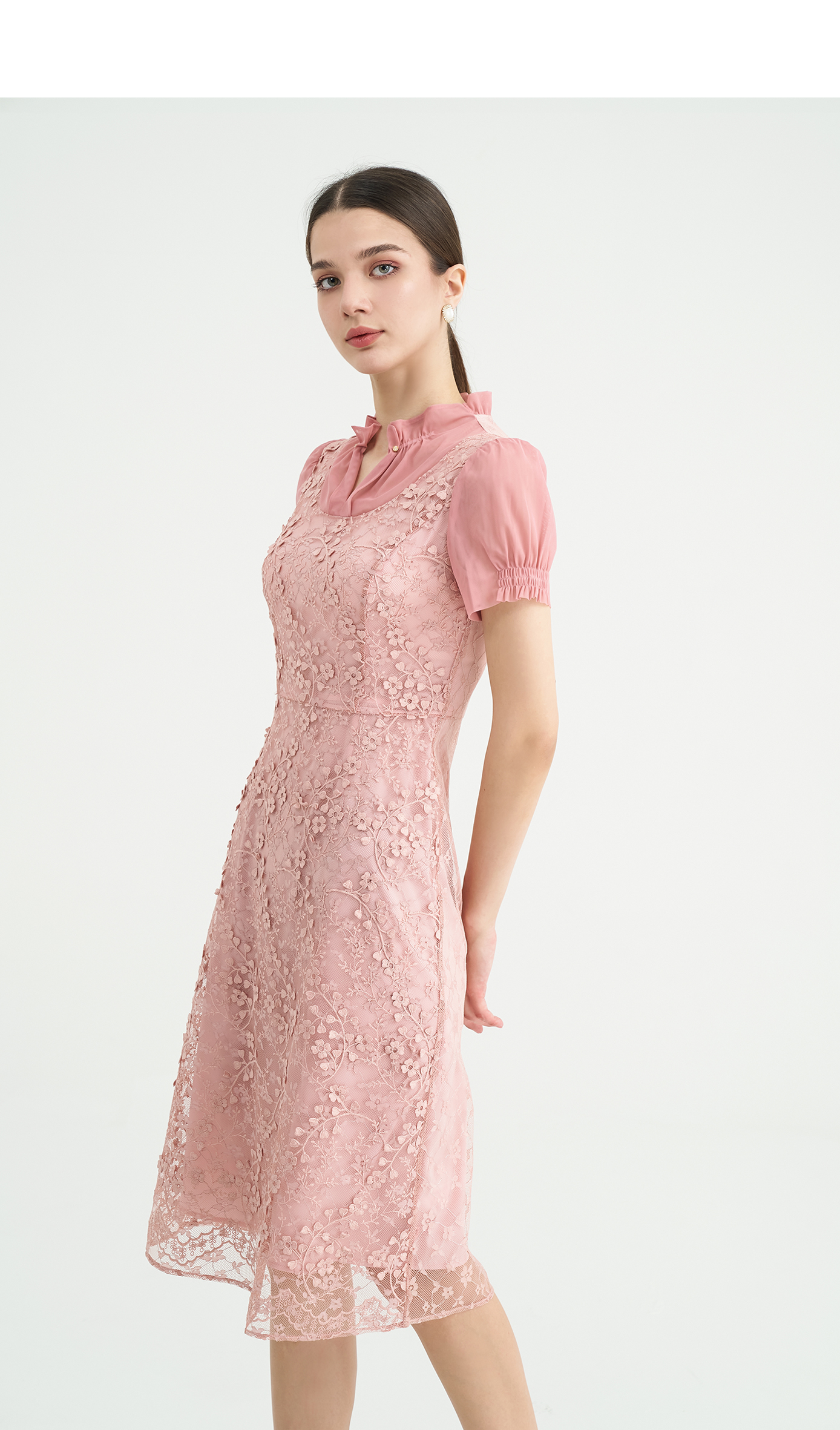 司歌显瘦蕾丝短袖收腰显瘦连衣裙A891443M