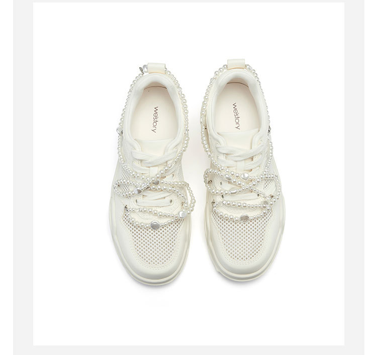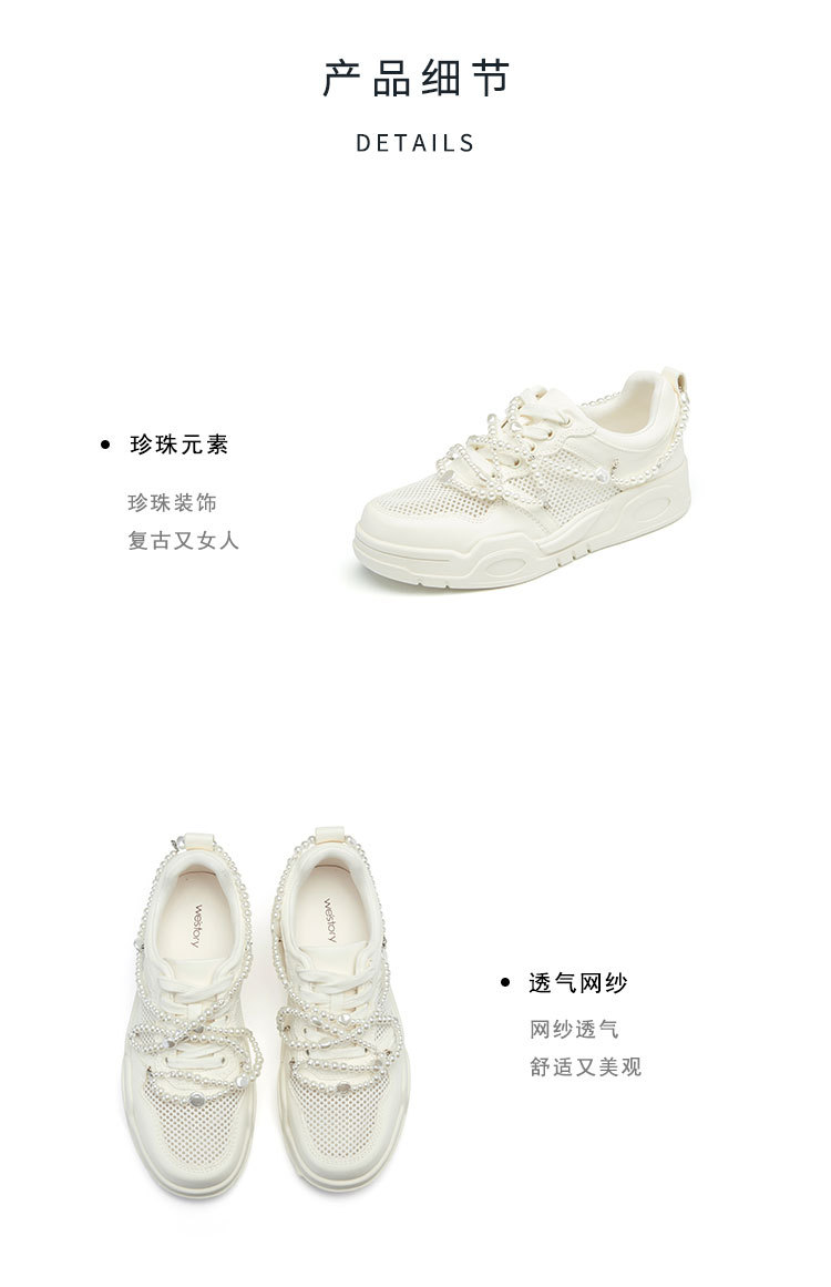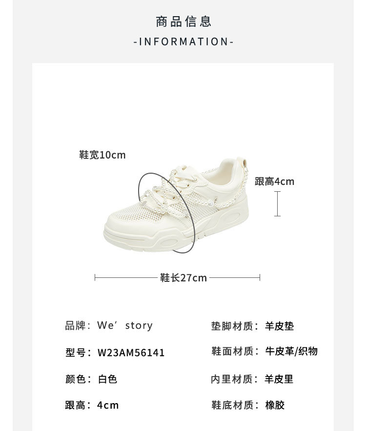 westory真皮厚底增高网面老爹鞋女款高级感圆头运动56141
