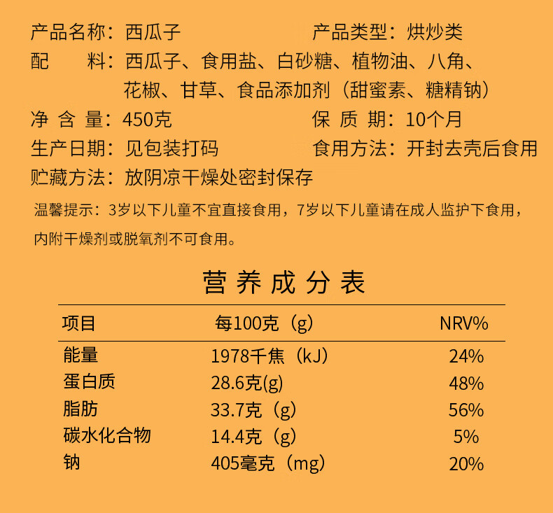 【分仓直发包邮】天生好果西瓜子450g(手持方罐)