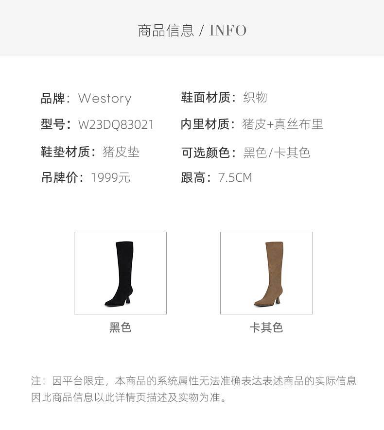 westory2023秋季新品复古做旧感气质高跟长筒长靴W23DQ83021