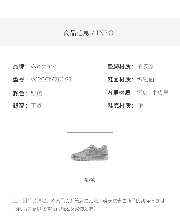 Westory新款优雅休闲镶钻运动平底W20CM70191