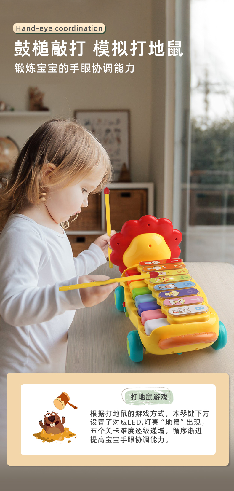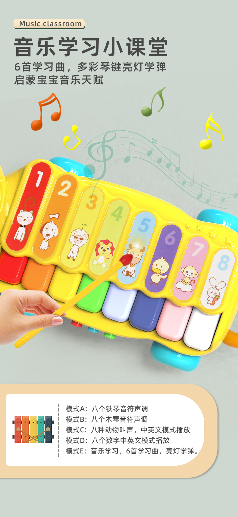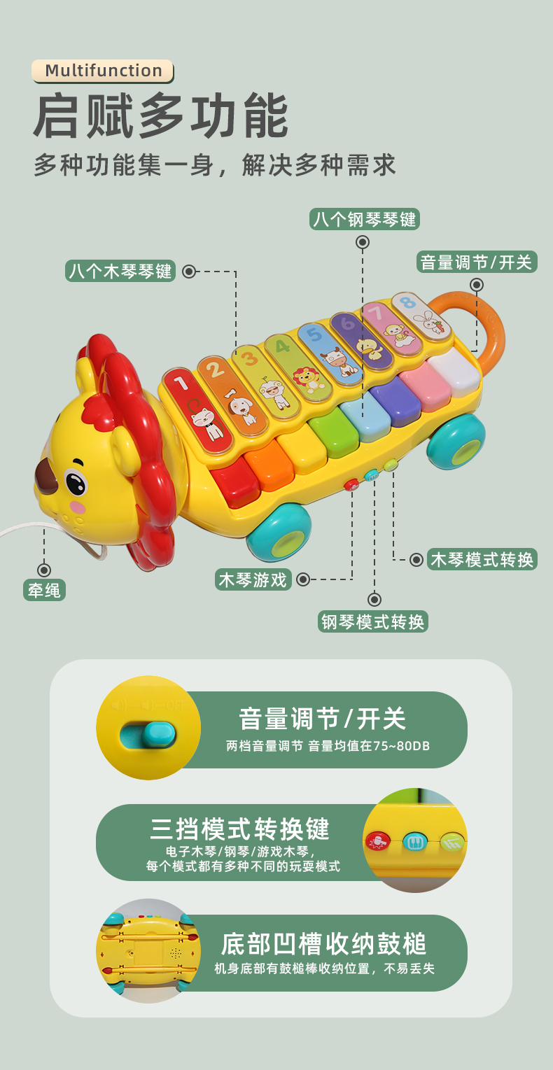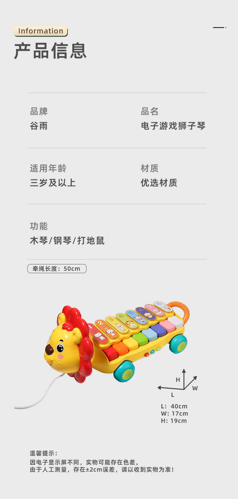 谷雨儿童电子琴宝宝玩具婴儿小孩专用可弹奏乐器狮子琴GY3503