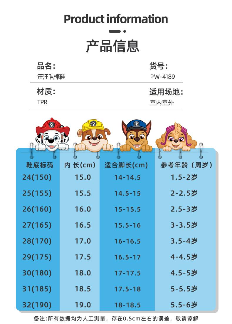 汪汪队立大功儿童棉鞋冬季卡通加绒雪地靴加厚女童棉靴中小童男孩XHR