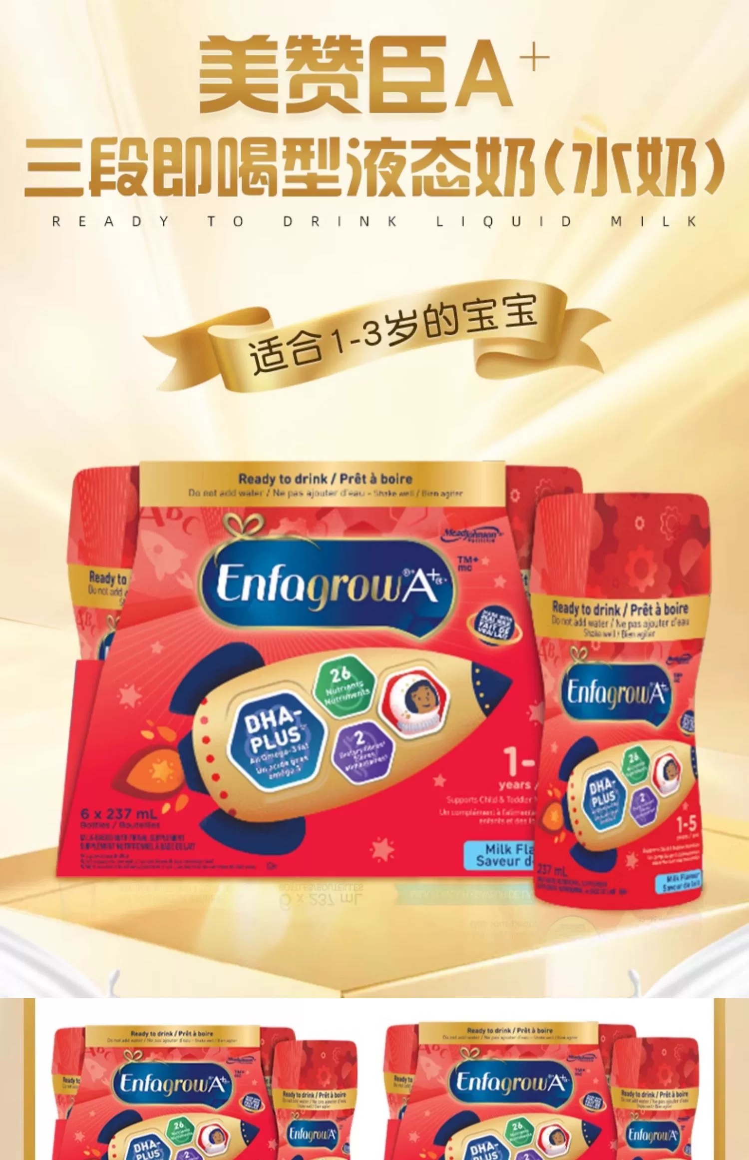 【跨境进口】常温无冰袋义乌仓发顺丰 | 加版美赞臣3段水奶1岁+ 237ml*6 4件起售,保质期至26.11 | 报关后不支持退换货,介意慎拍