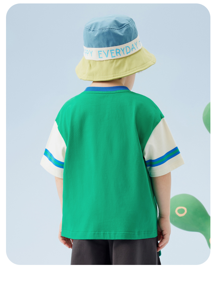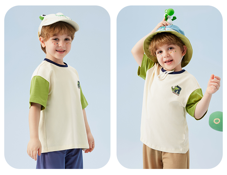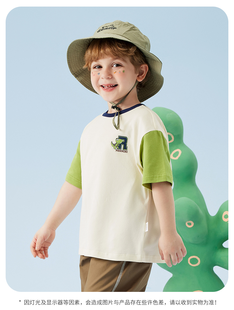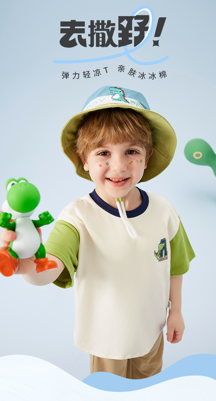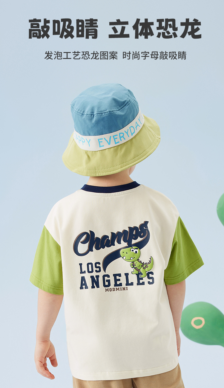 【冰冰棉】【80-140】【MQDmini】男童夏季短袖T恤同色落肩短袖上衣