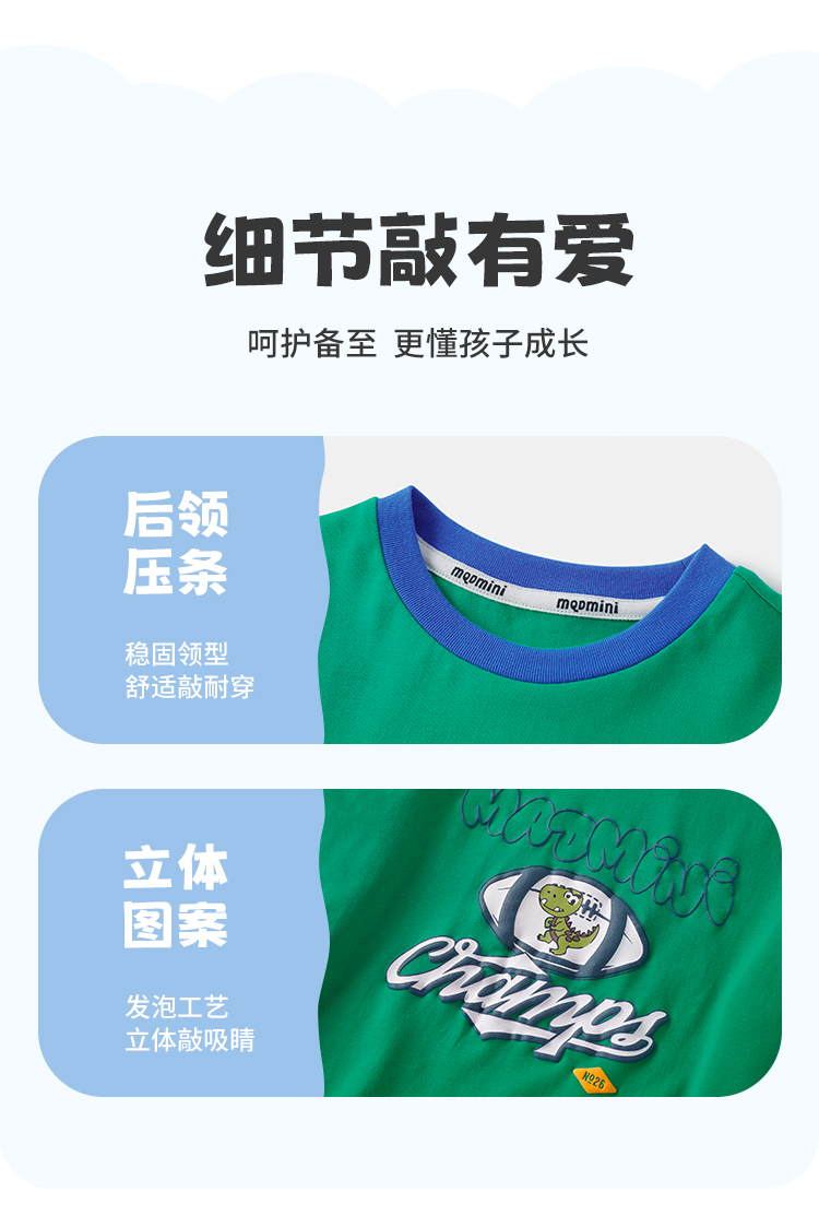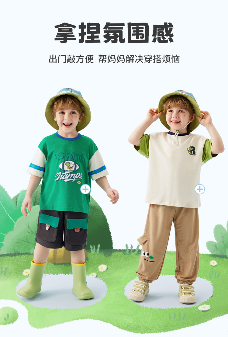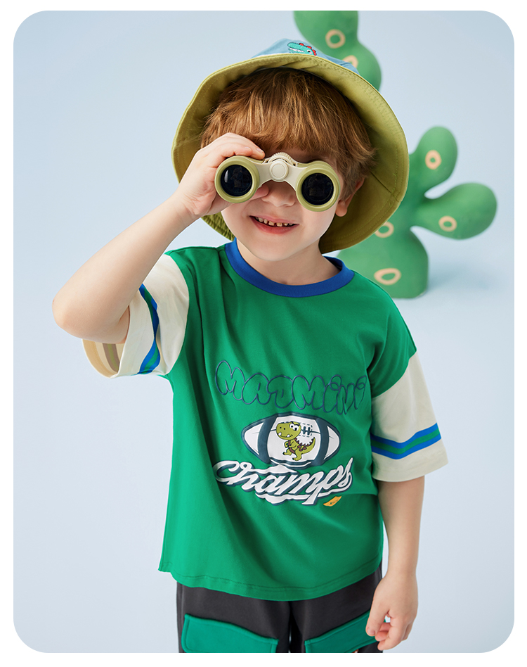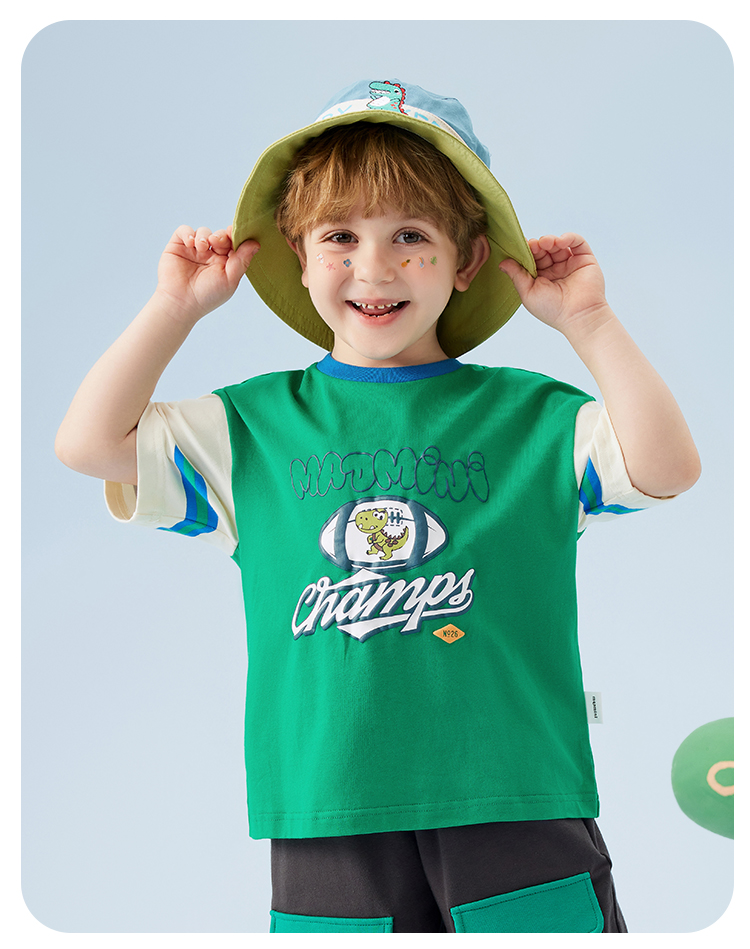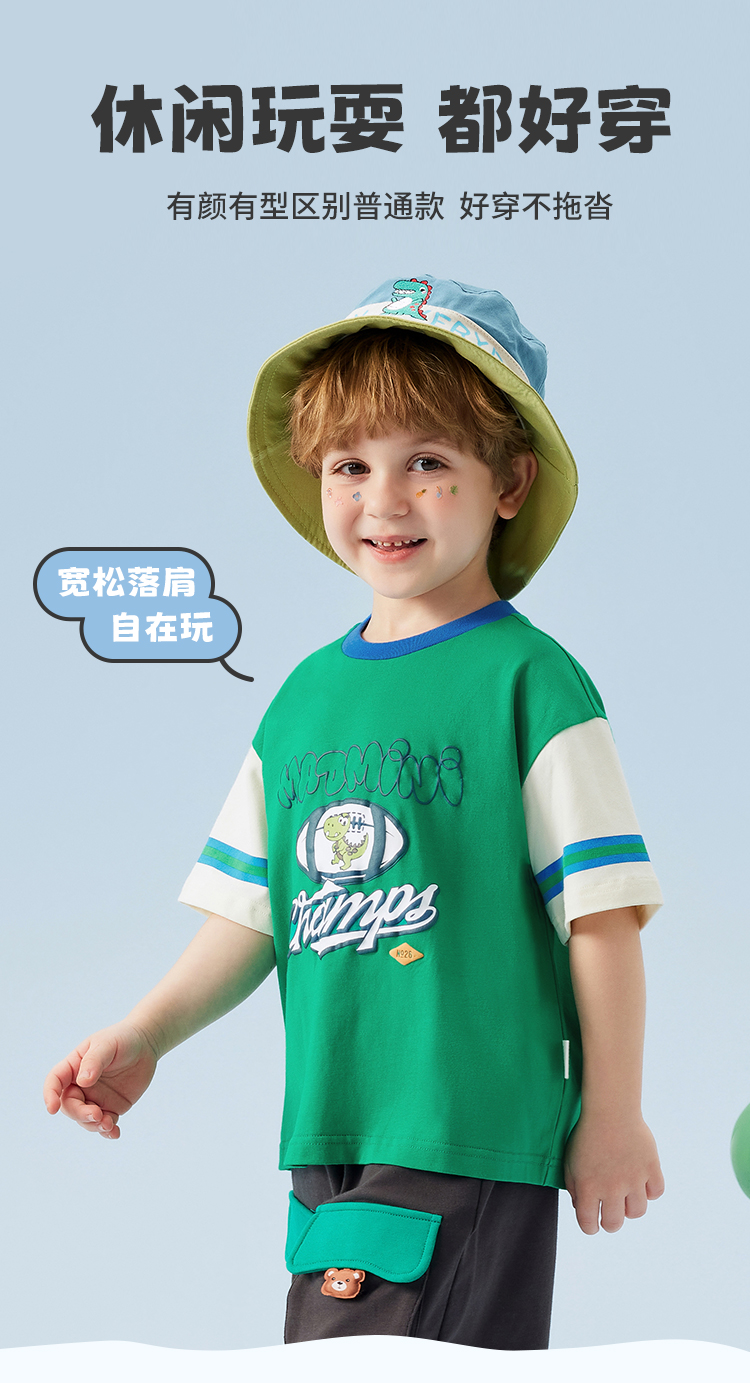 【冰冰棉】【80-140】【MQDmini】男童夏季短袖T恤同色落肩短袖上衣