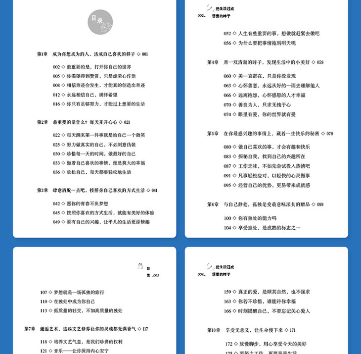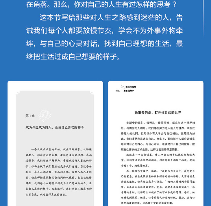 这本节写给那些对人生之路感到迷茫的人,告诫我们每个人都要放慢节奏,学会不为外事外物牵绊,与自己的心灵对话,找到自己理想的生活,把生活过成自己想要的样子。