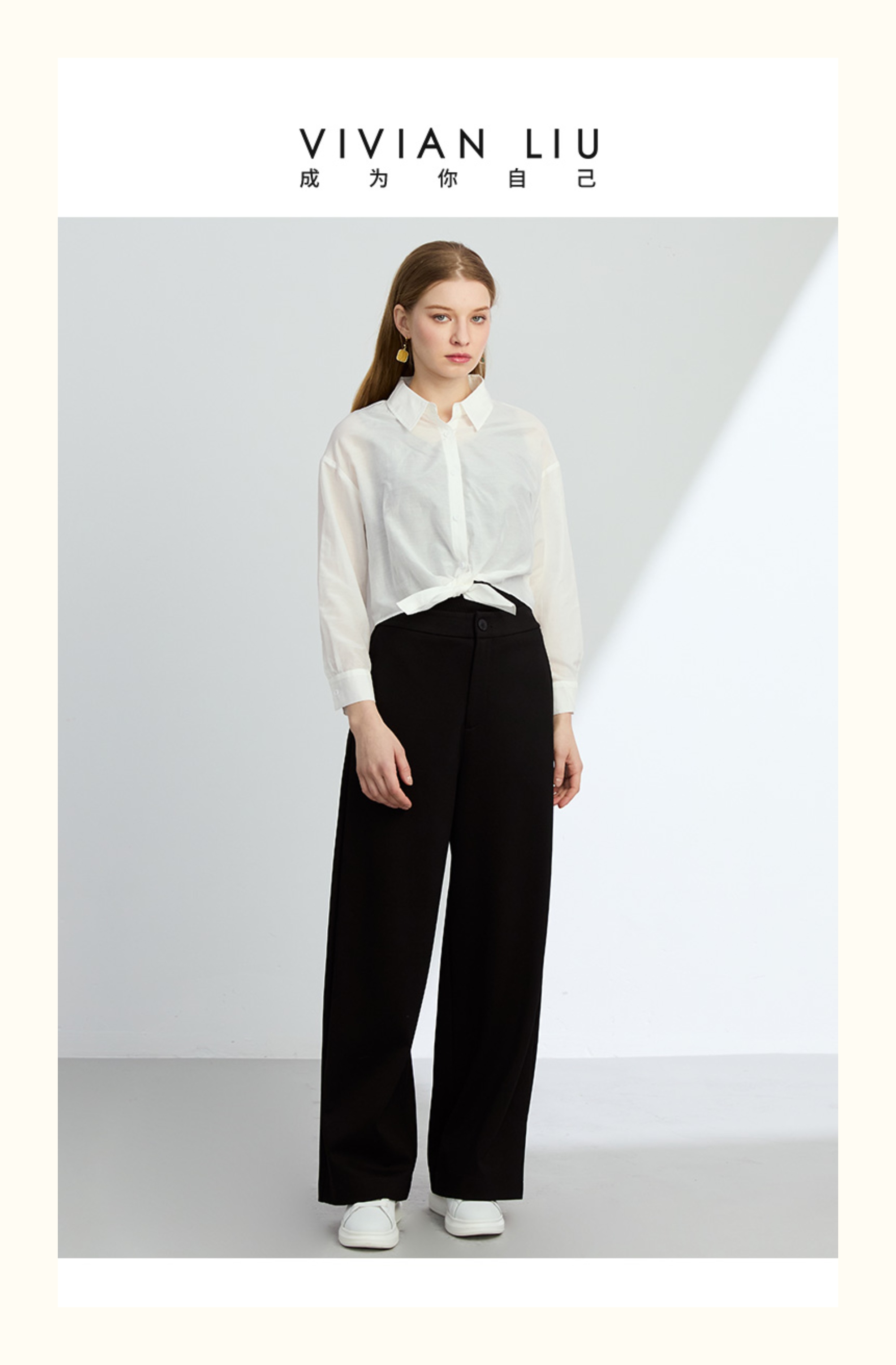 VIVIAN LIU薇薇安刘 R2325006春女装新款高腰斜插兜通勤阔腿裤