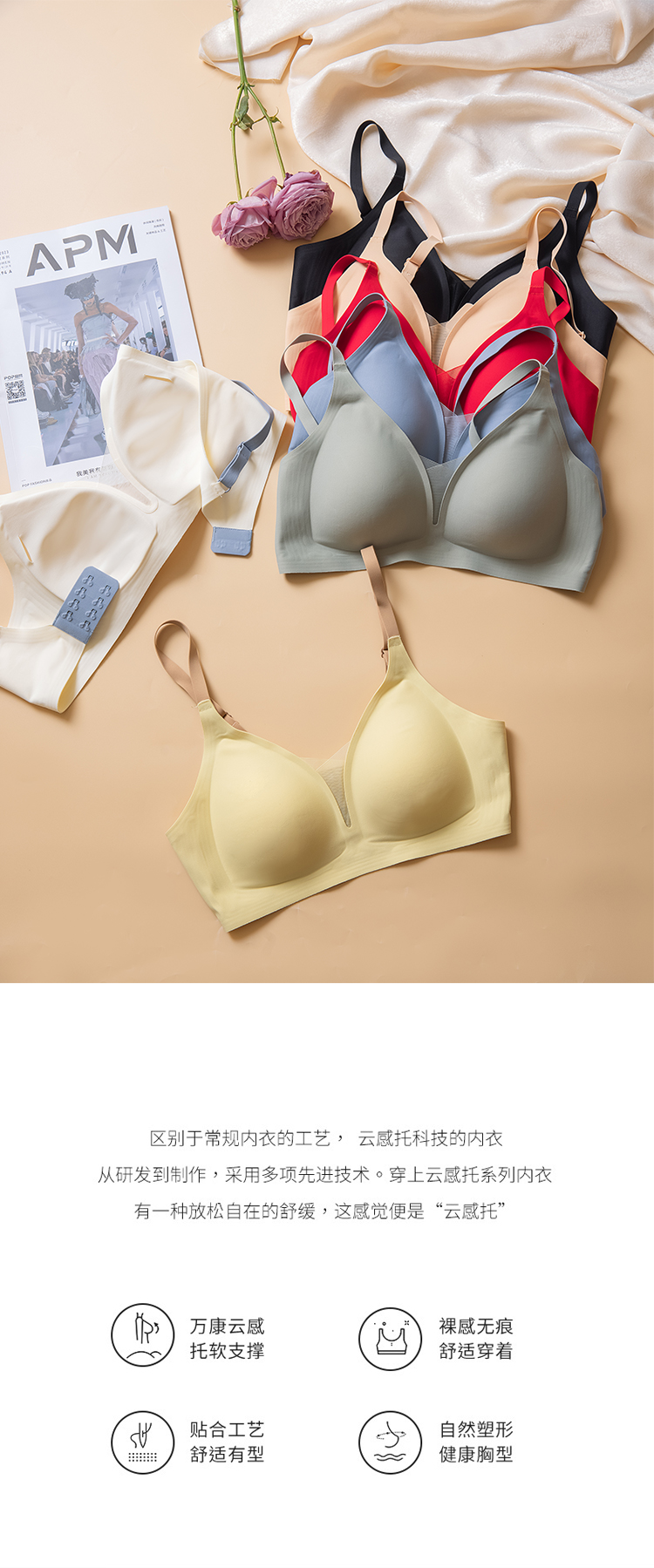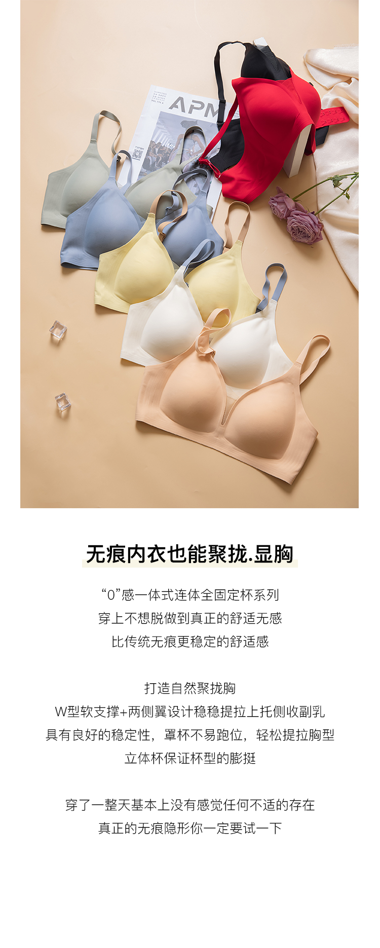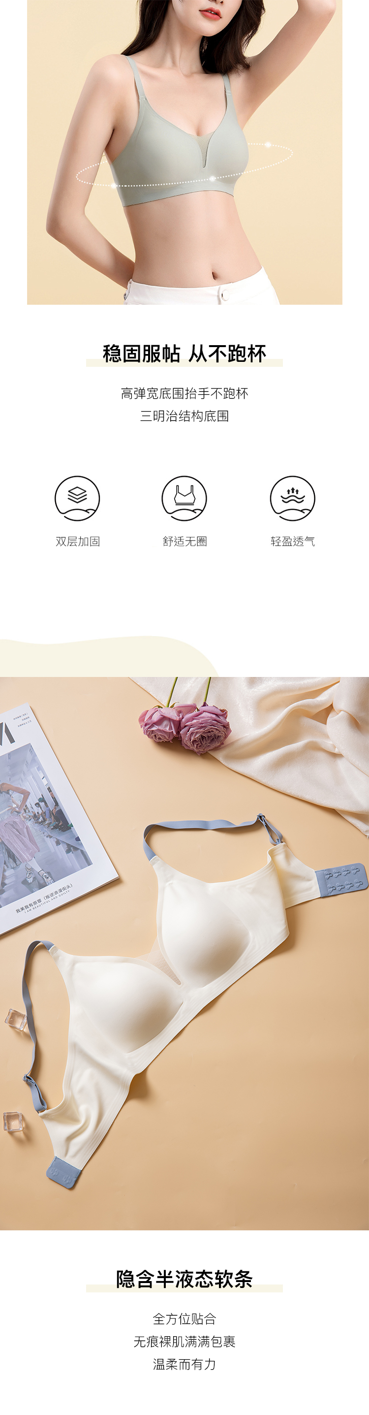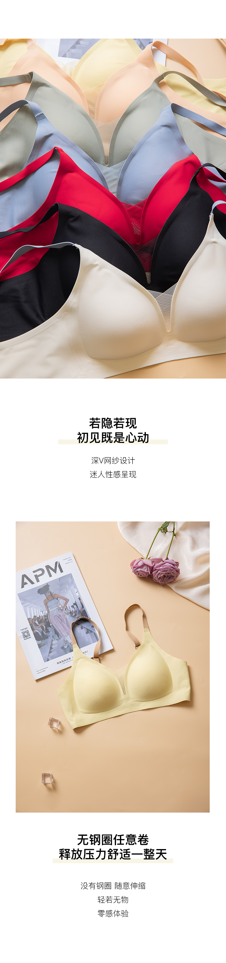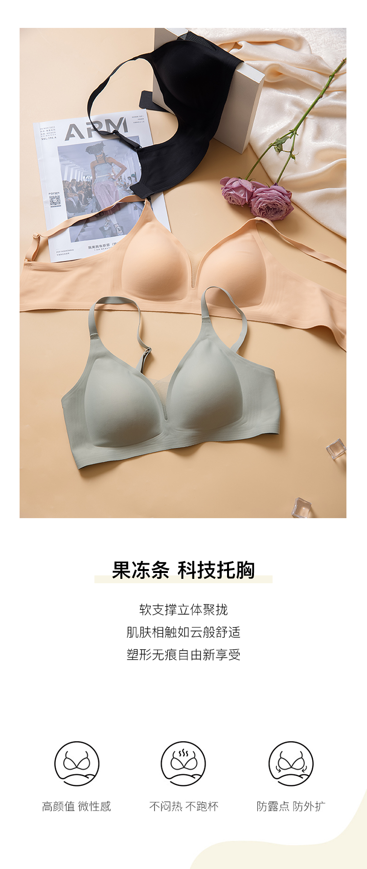 【不支持退换,介意慎拍】果冻条内衣女软支撑光面无痕小胸聚拢提拉文胸无钢圈舒适侧收胸罩