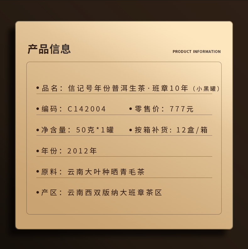 八马信记号| 普洱生茶 信记号年份普洱生茶·班章10年(小黑罐装) C142004