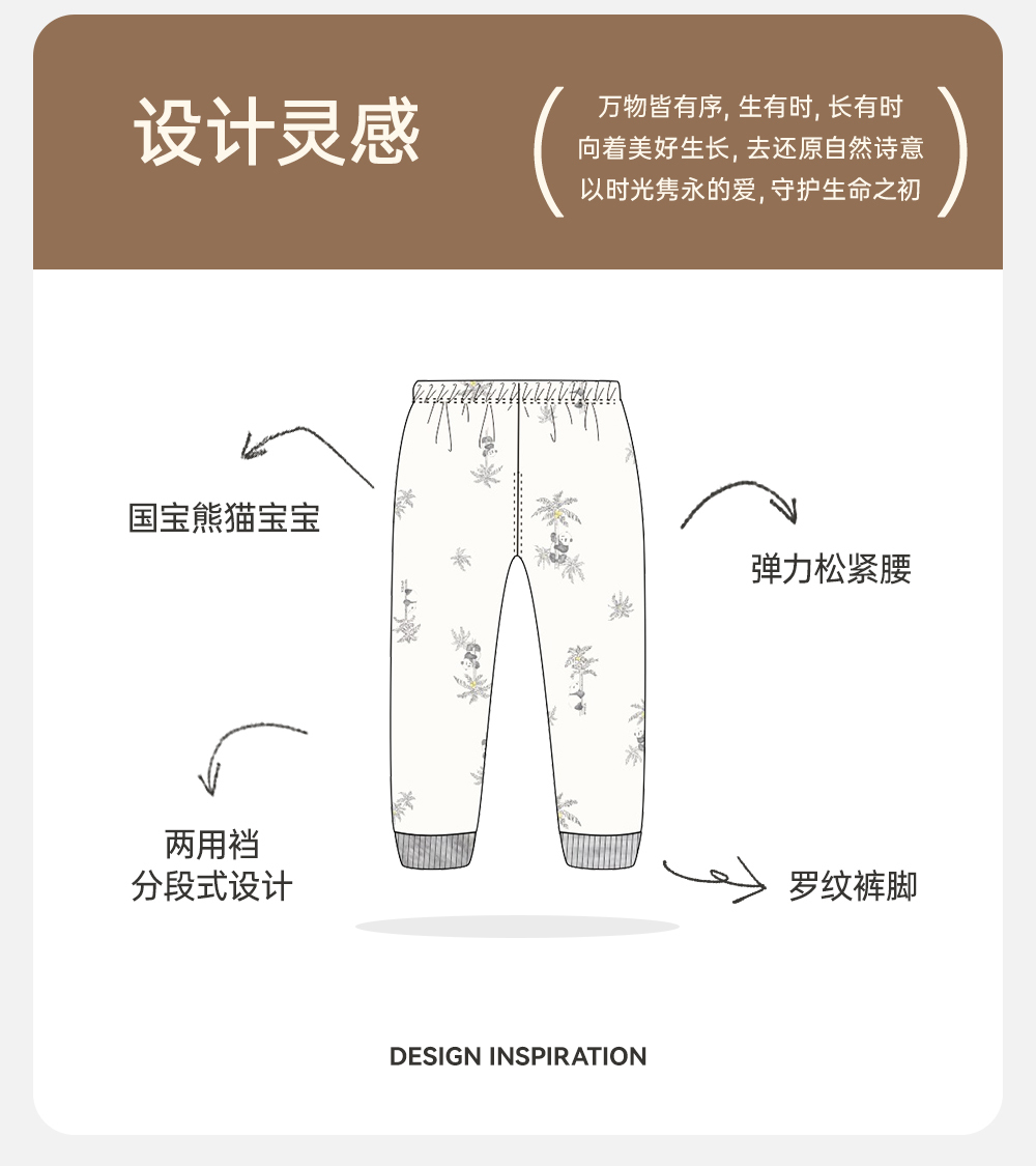 英氏熊猫氧感系列内衣家居裤男女宝保暖裤2024春新款YLCAJ0Q001A