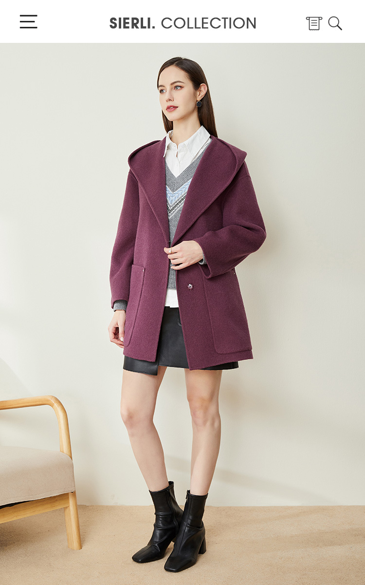 ND93Z斯尔丽[专柜同款]瑟俪2021冬新款时髦连帽款休闲气质女式大衣