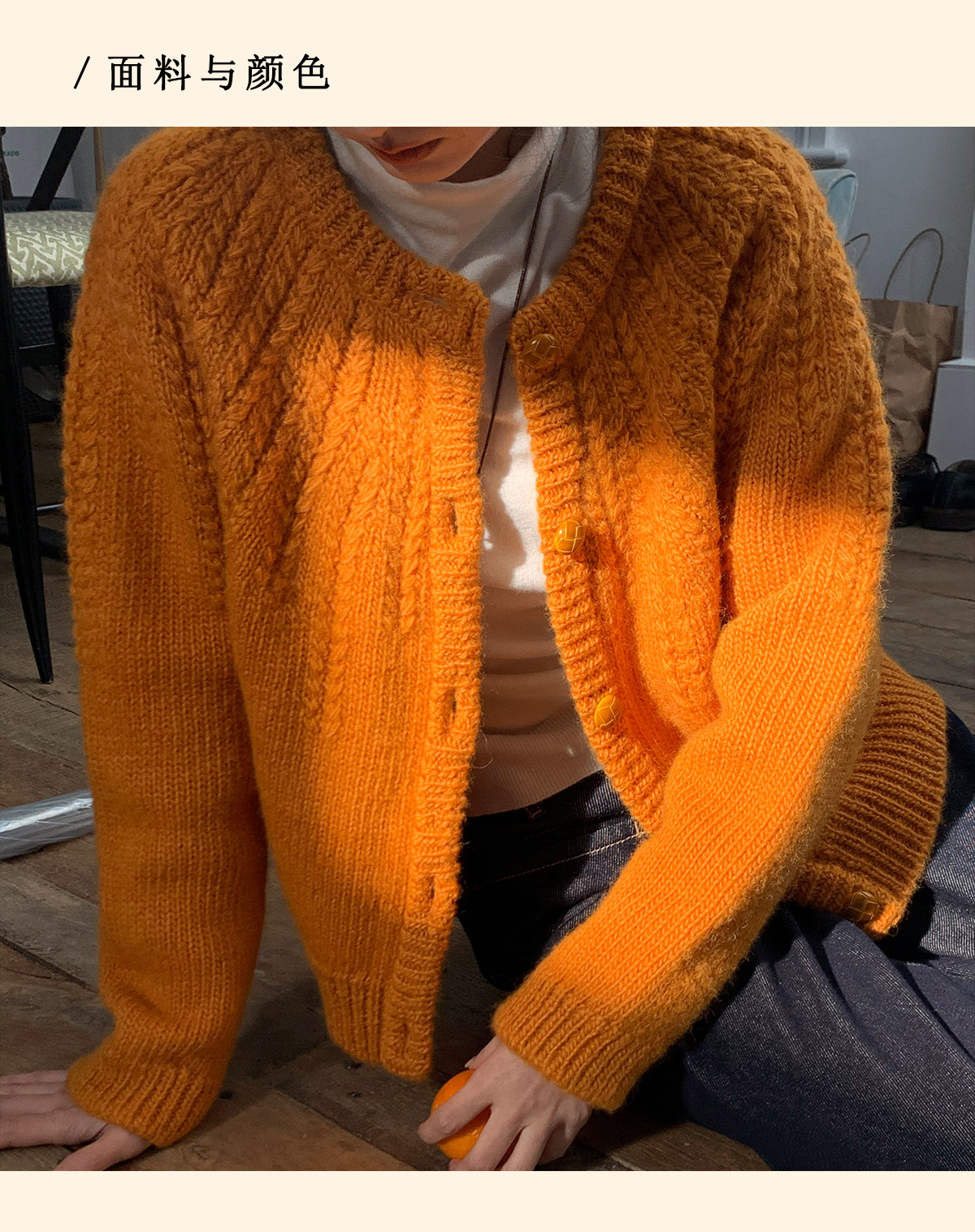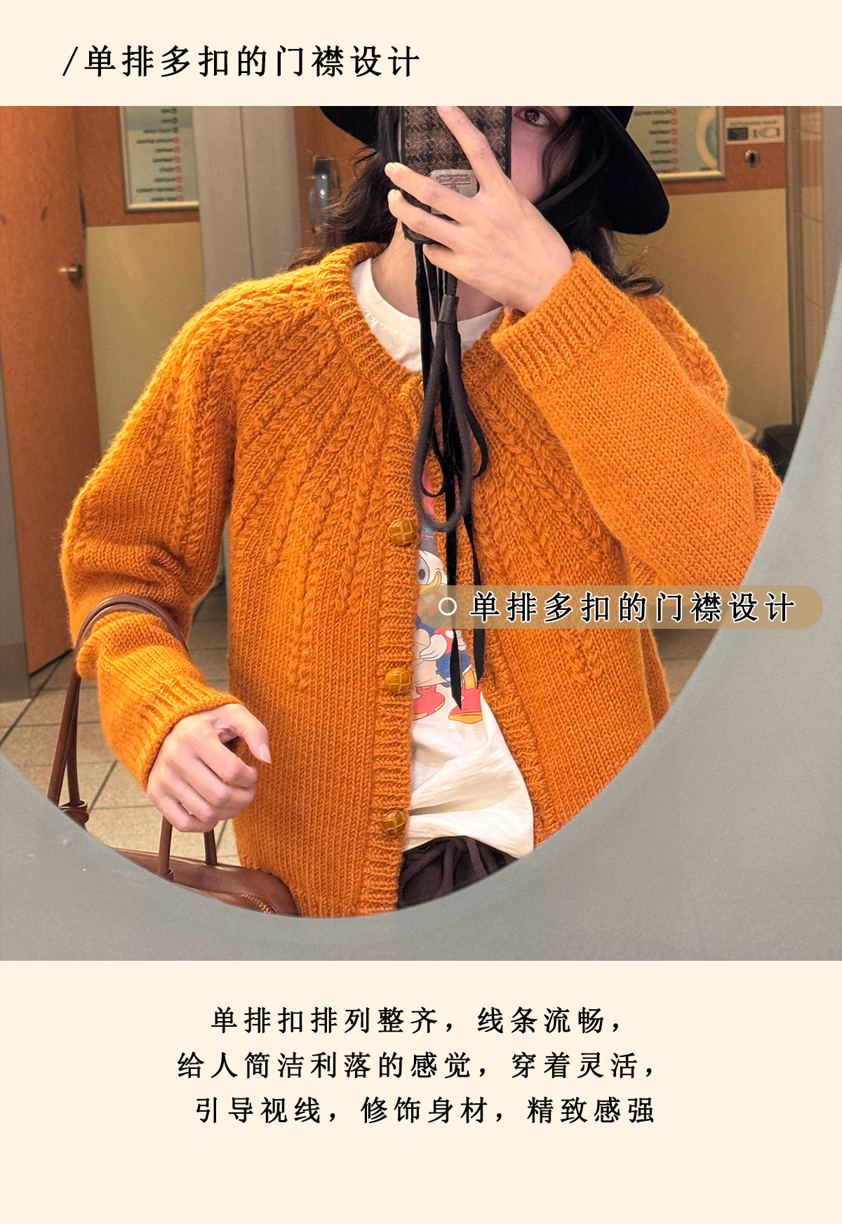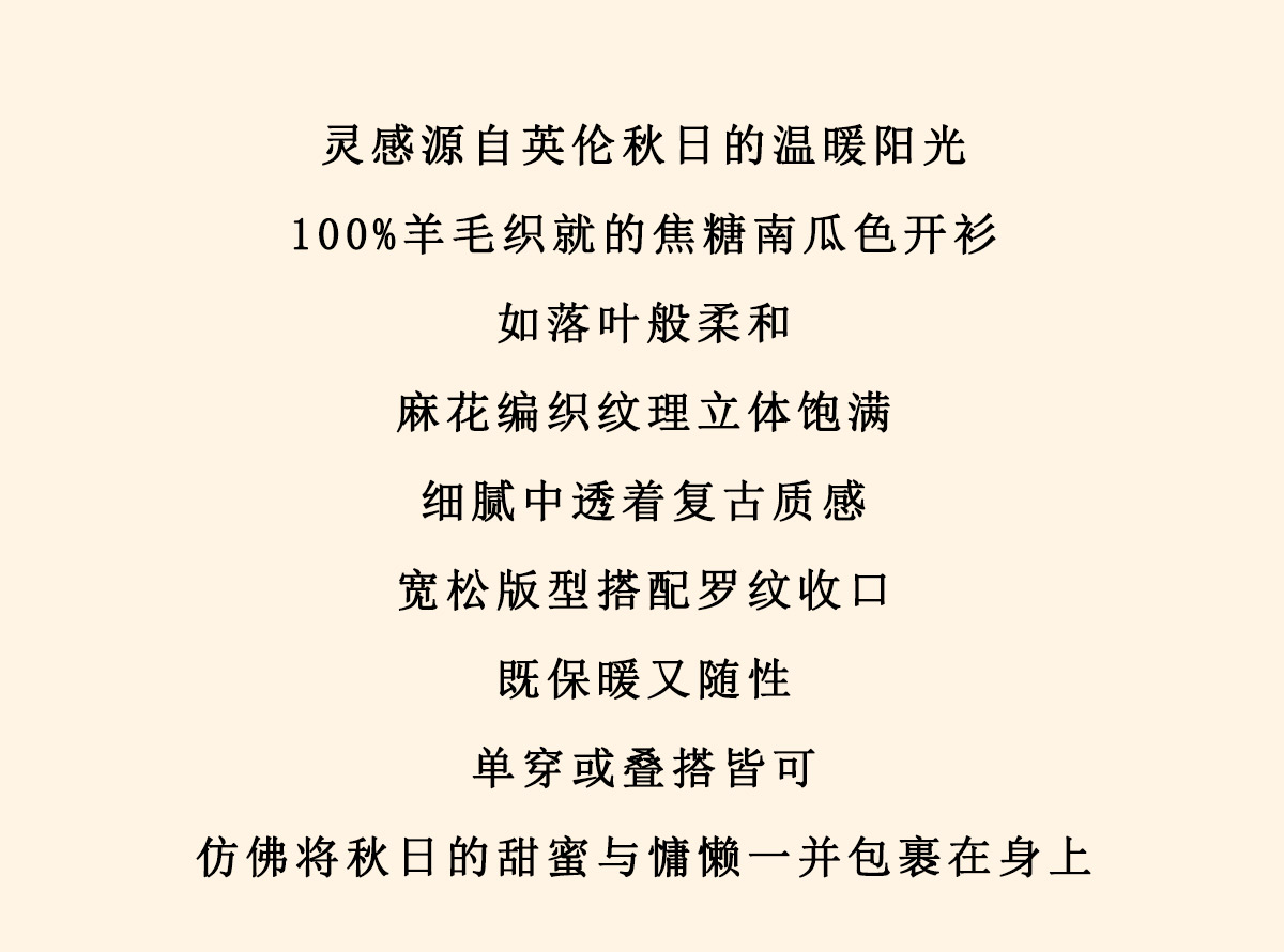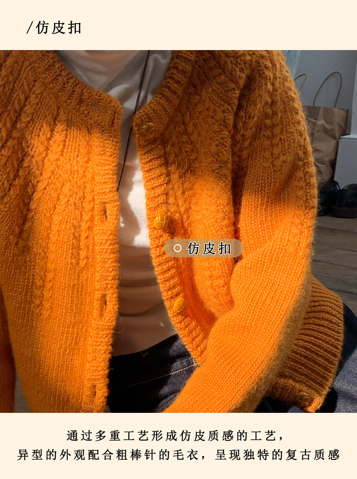 浮生八记/25C198/1OO羊毛南瓜色麻花开衫毛衣