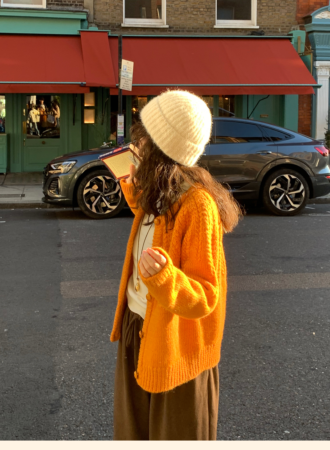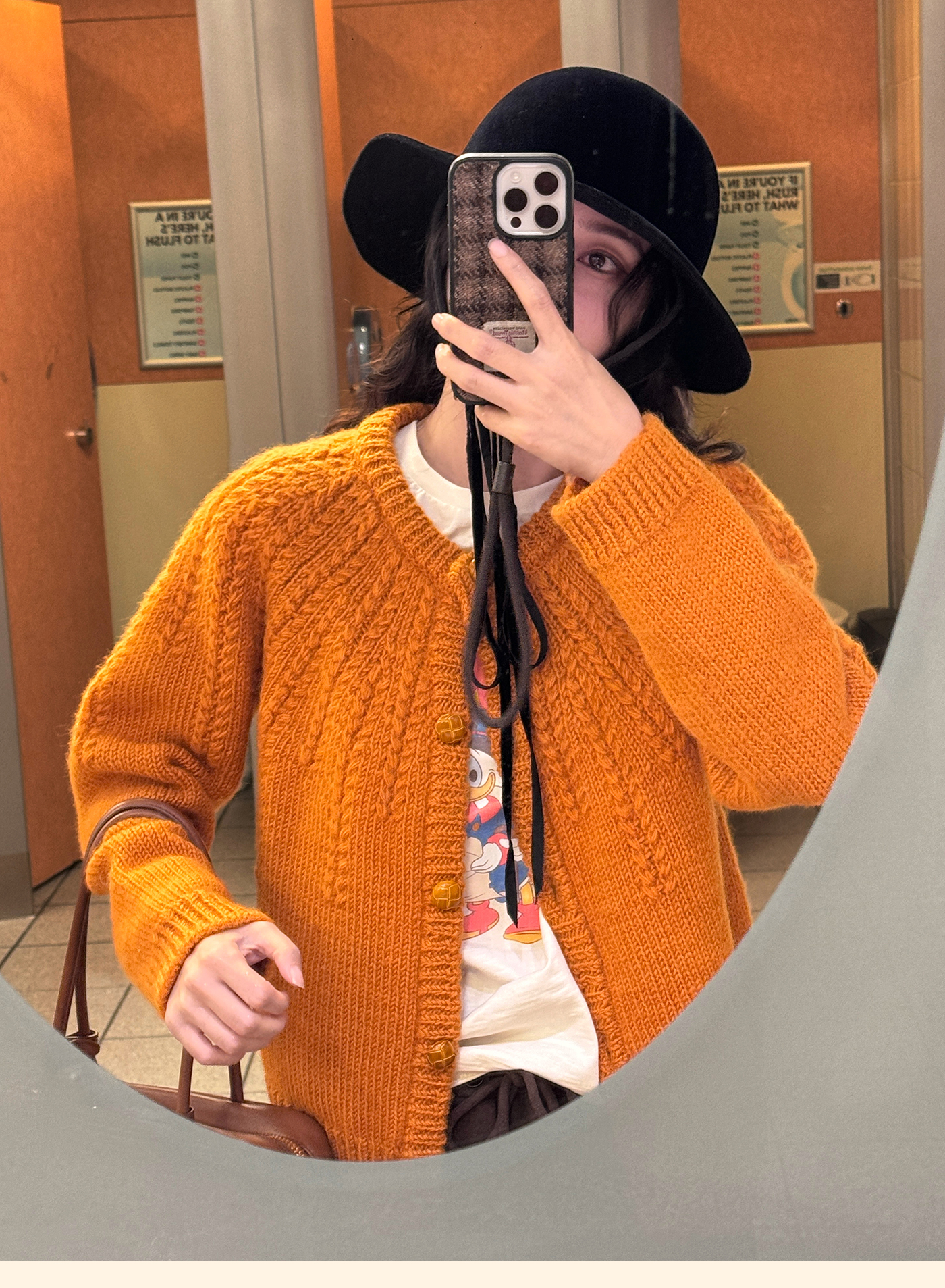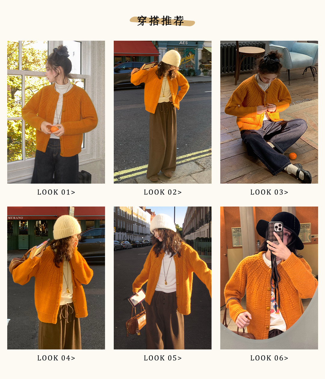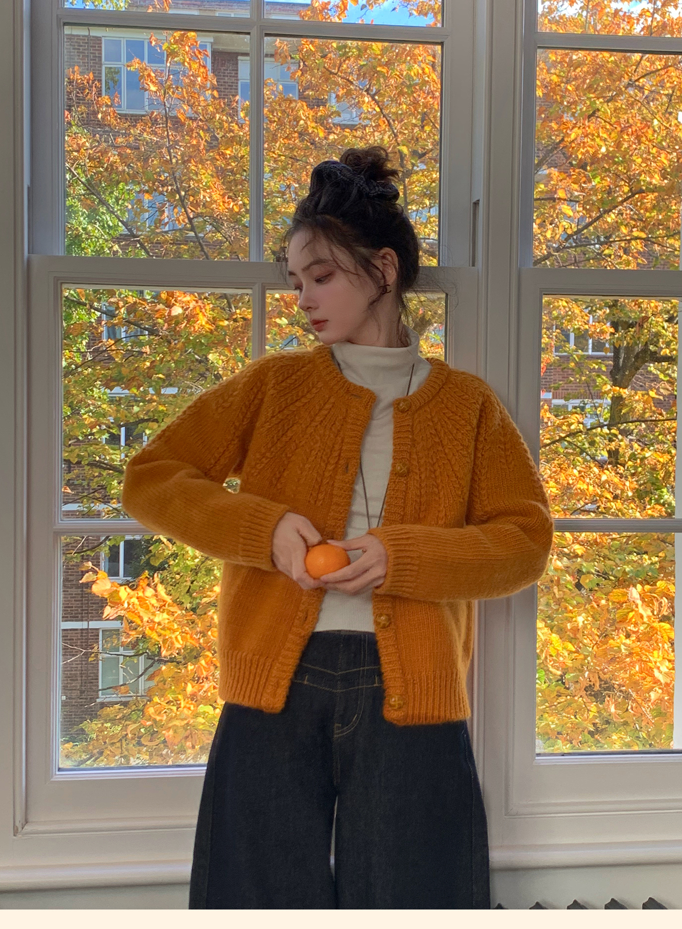 浮生八记/25C198/1OO羊毛南瓜色麻花开衫毛衣